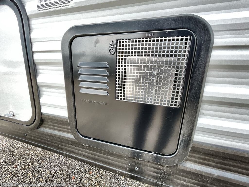 Camping trips to the lake have never been easier than with this travel trailer! The 28" x 67" bunks are right next to the private bath for easy nighttime use, and the front queen bed includes hidden storage for your things. There is also a 66" Jack knife sofa that provides a little more sleeping space for guests. A full kitchen lets you cook meals each day and there is an exterior LP quick connect if you want to fire up your own propane grill.