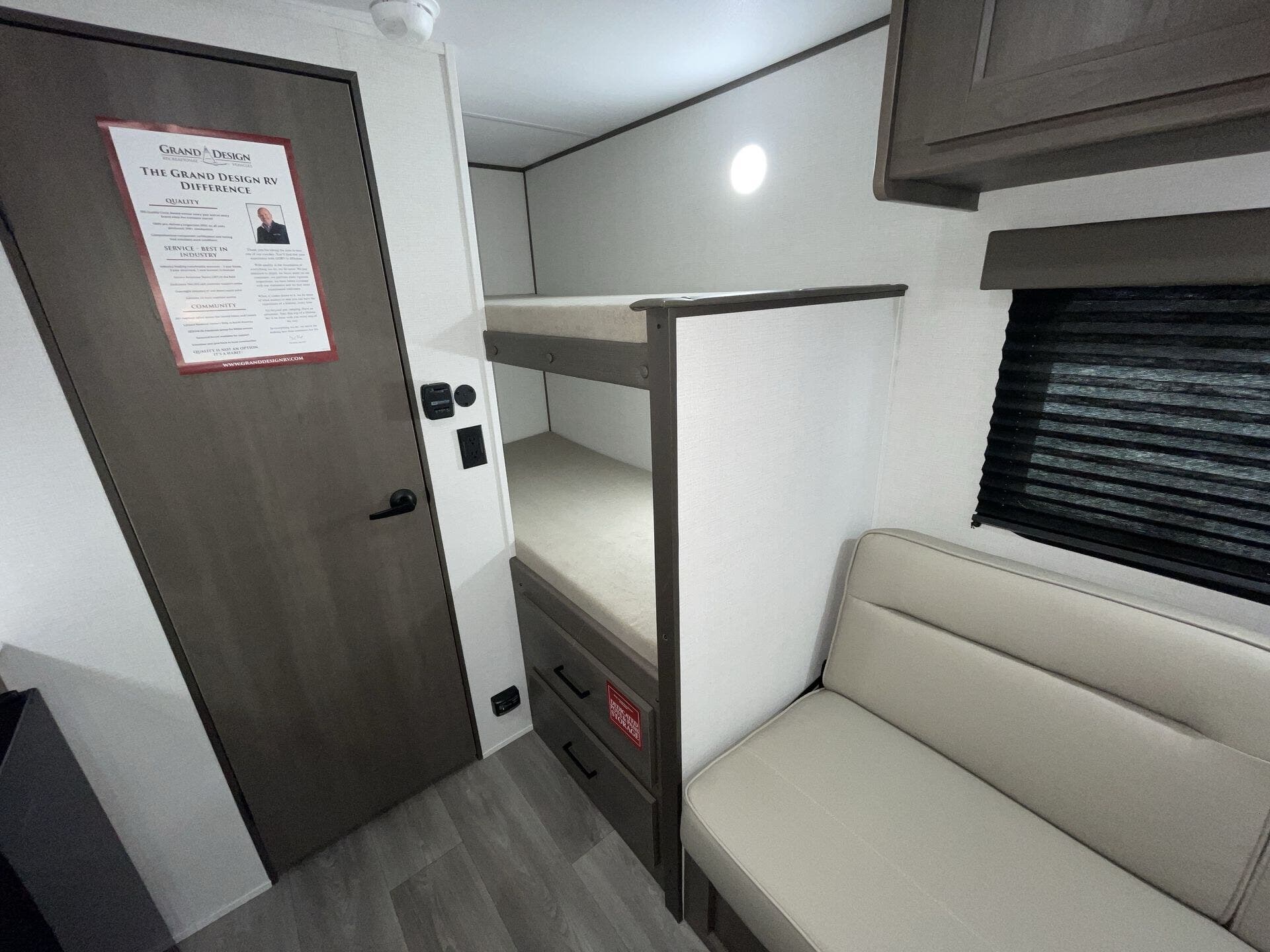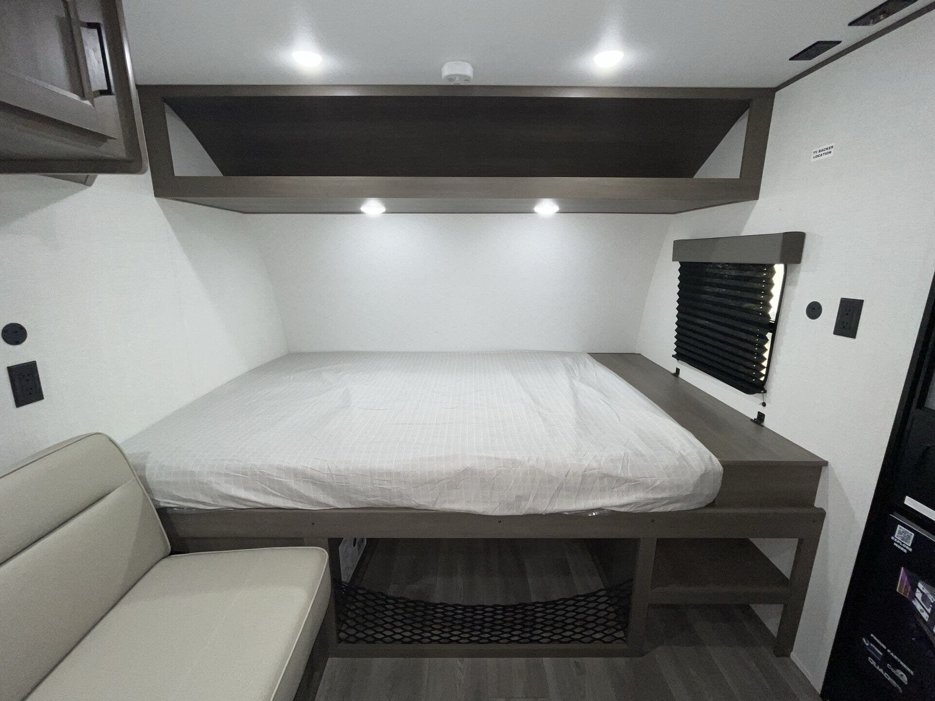- Floorplan: 151BH bunkhouse with front bedroom and rear bath