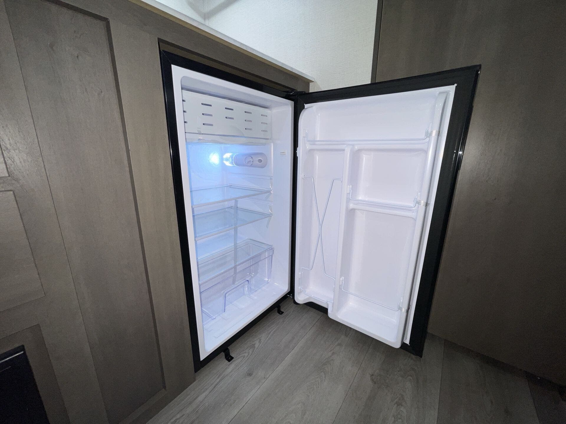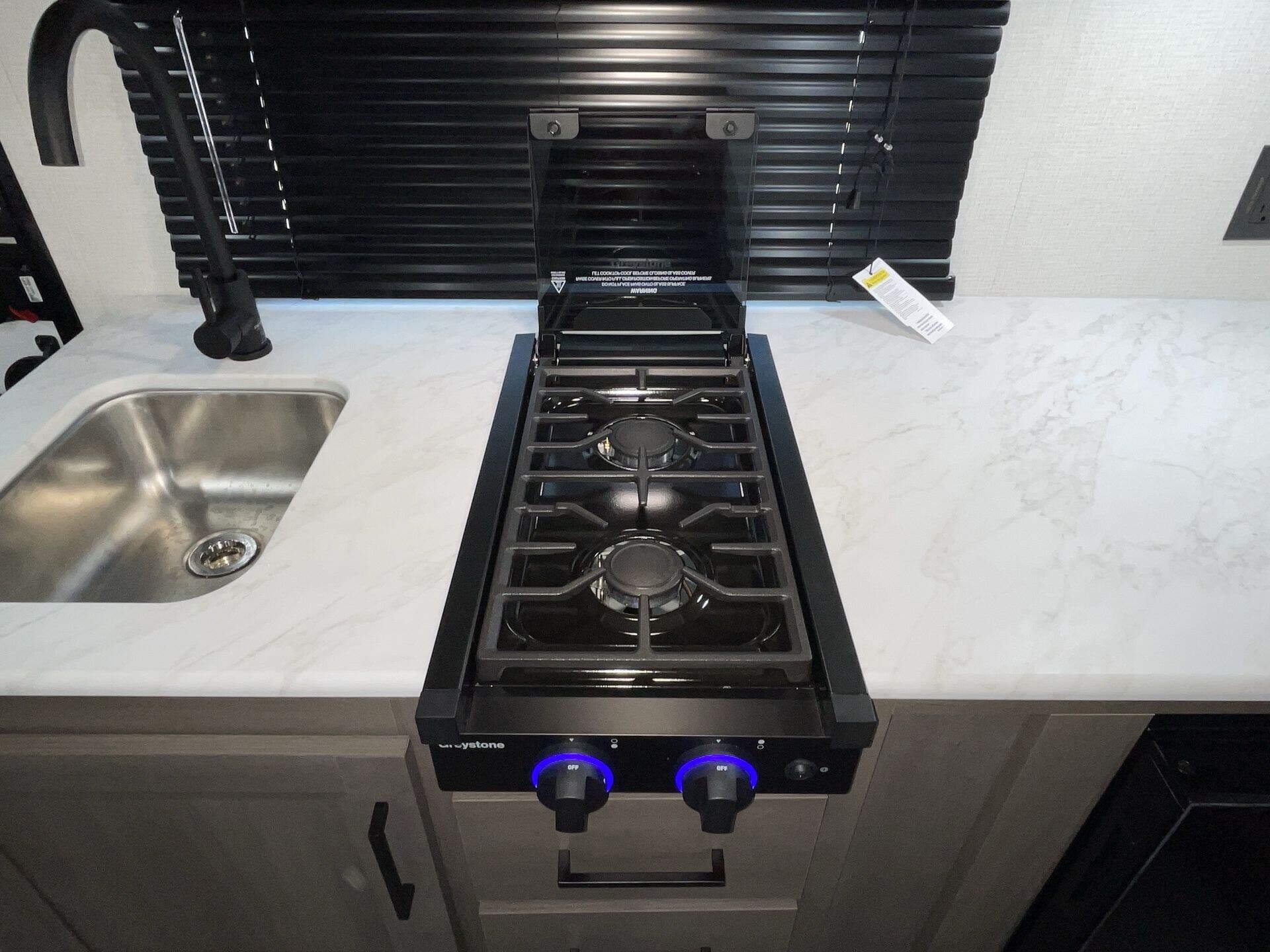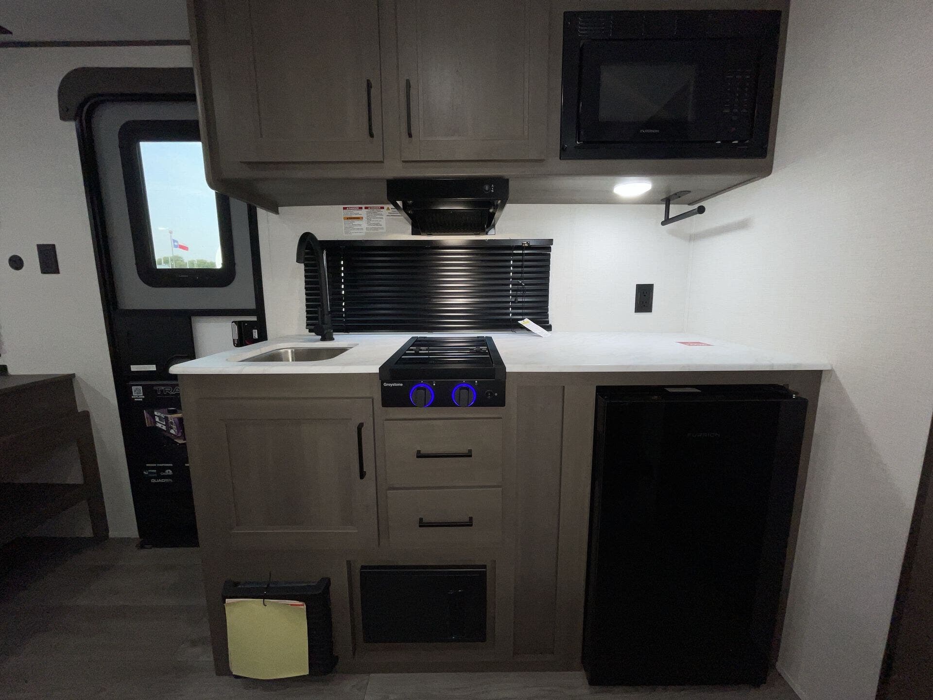 The 151BH bunkhouse layout is designed to maximize living space without sacrificing towability. A dedicated bunk area keeps kids close, while a private front bedroom with a queen bed offers a tranquil retreat after a day of exploring. The living area features a sofa bed and a removable table, providing flexible daytime lounging and easy dinner setup. Ample overhead cabinetry, a fully equipped kitchen with a sink, stove top burner, microwave, and refrigerator, and a well-appointed bath complete the home-away-from-home experience on the road.