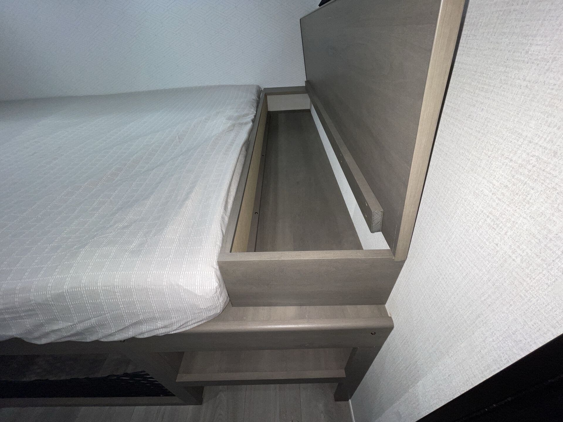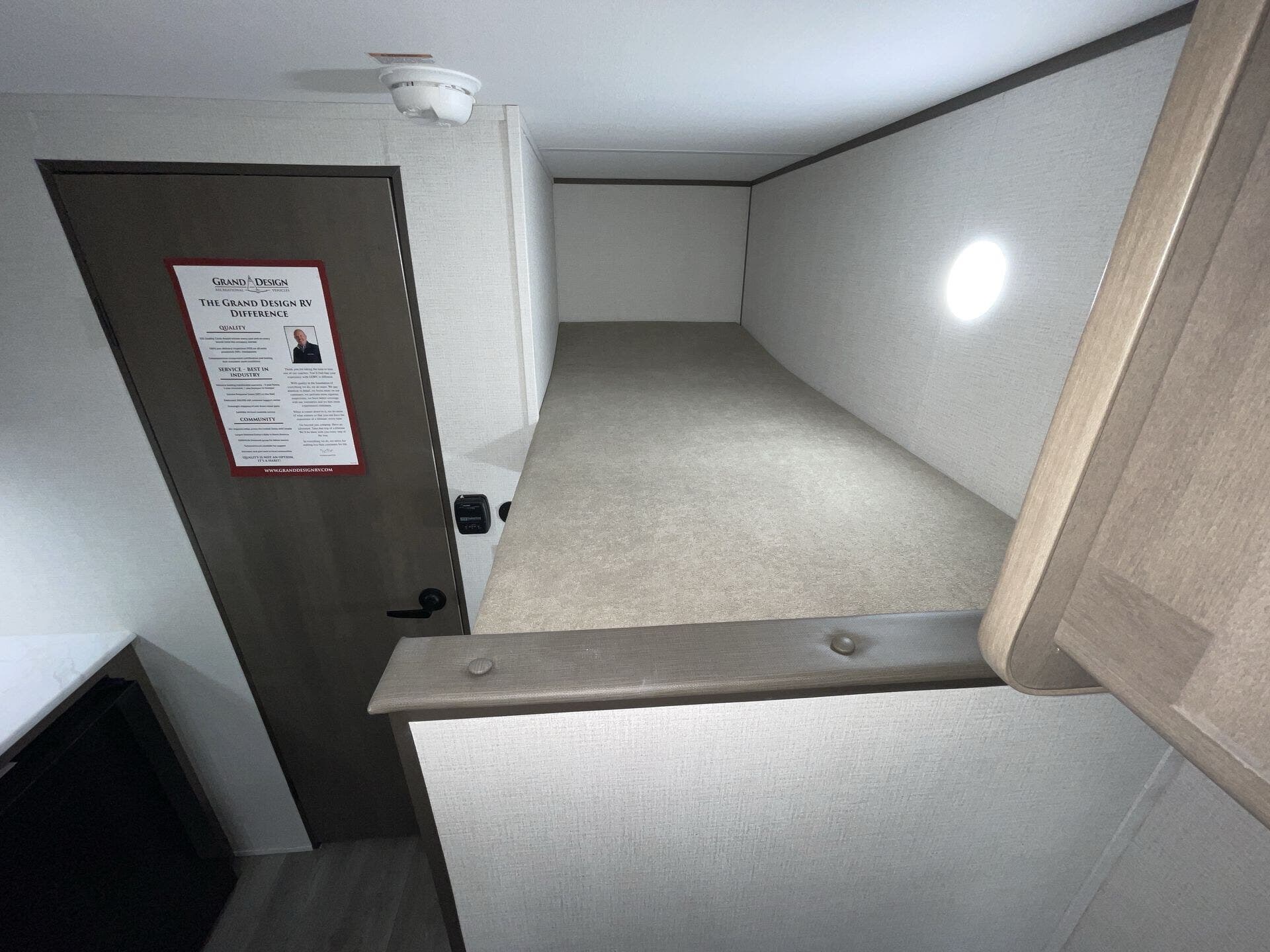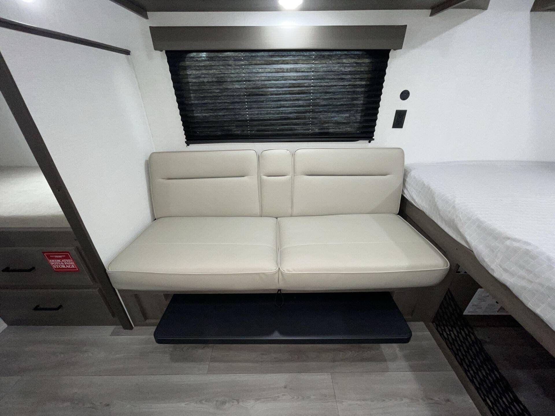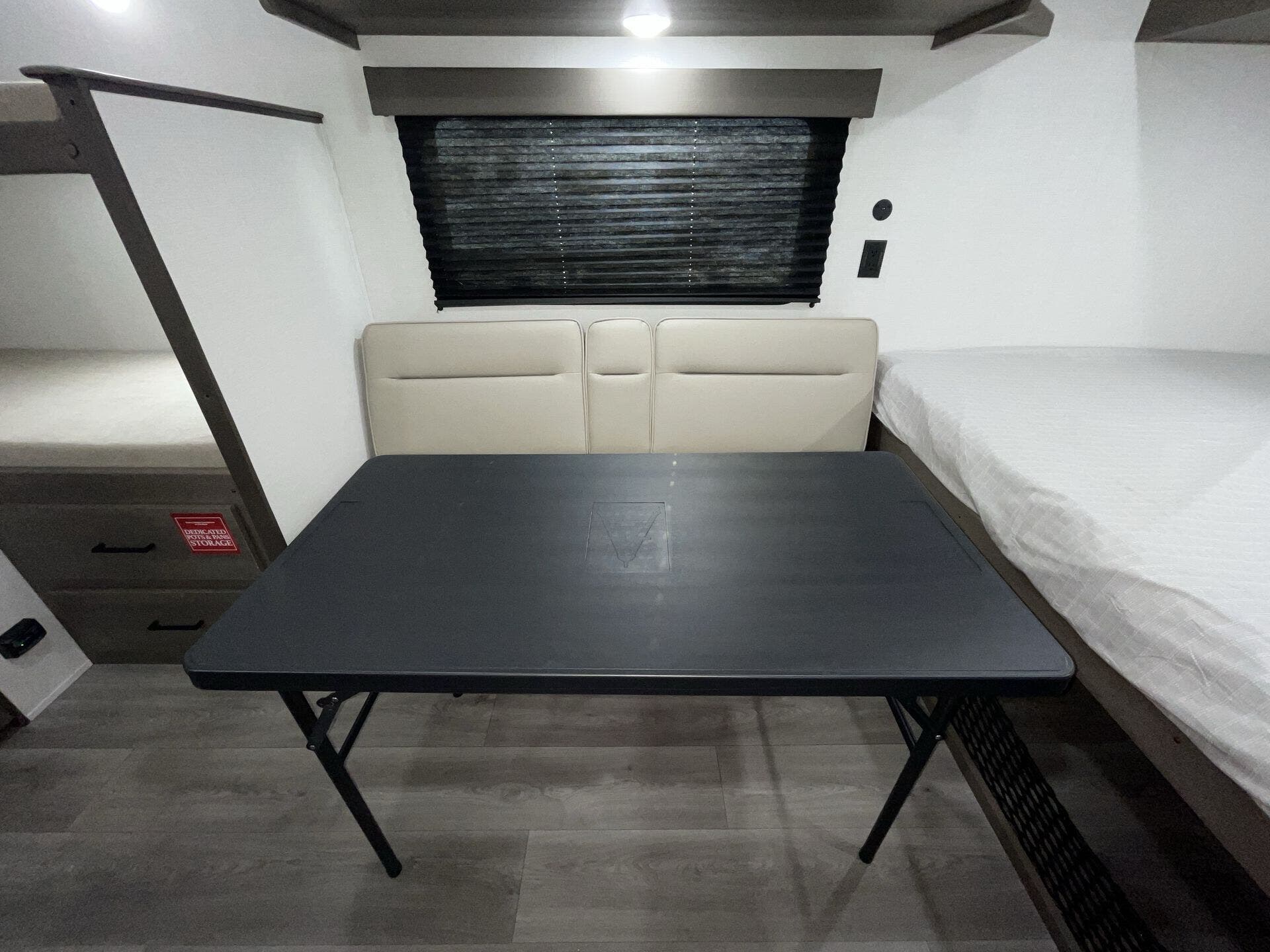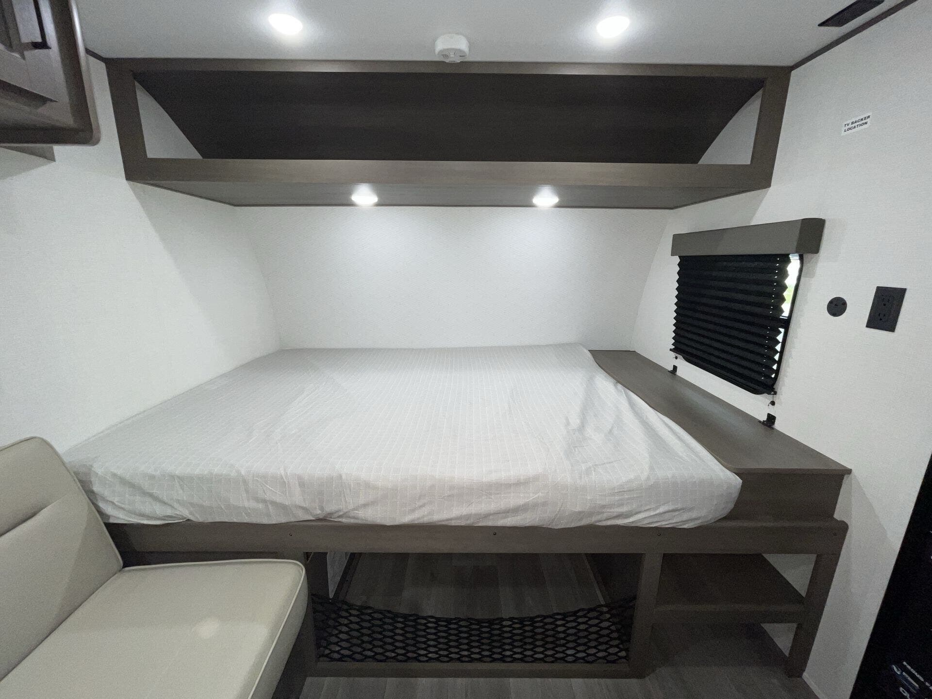- Interior: Queen Bed, Bunk Beds, Sofa Bed, Removable Table, Overhead Cabinetry