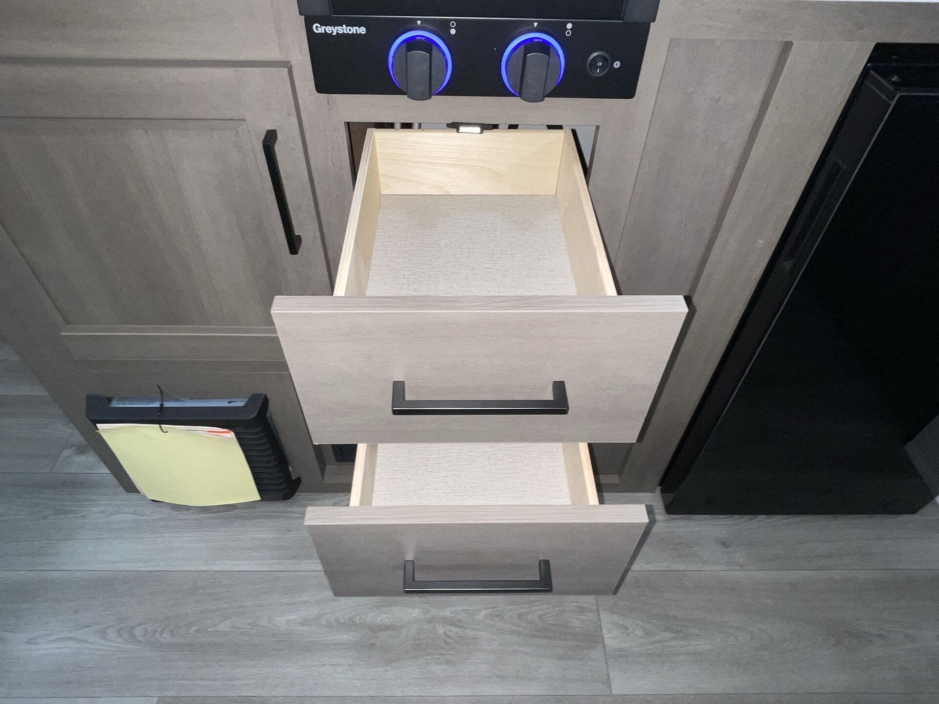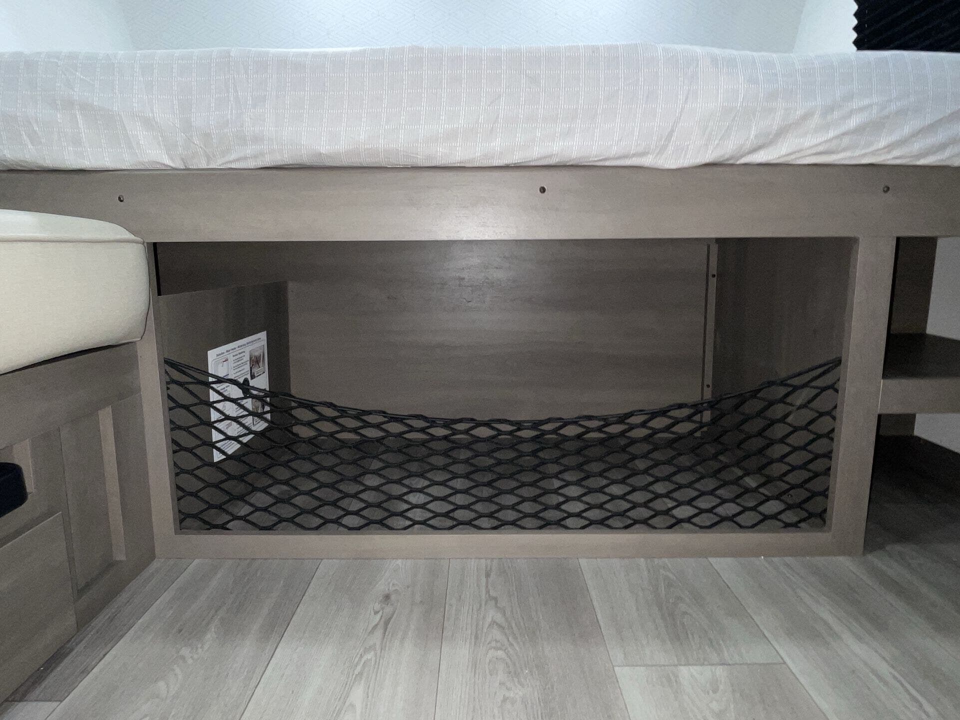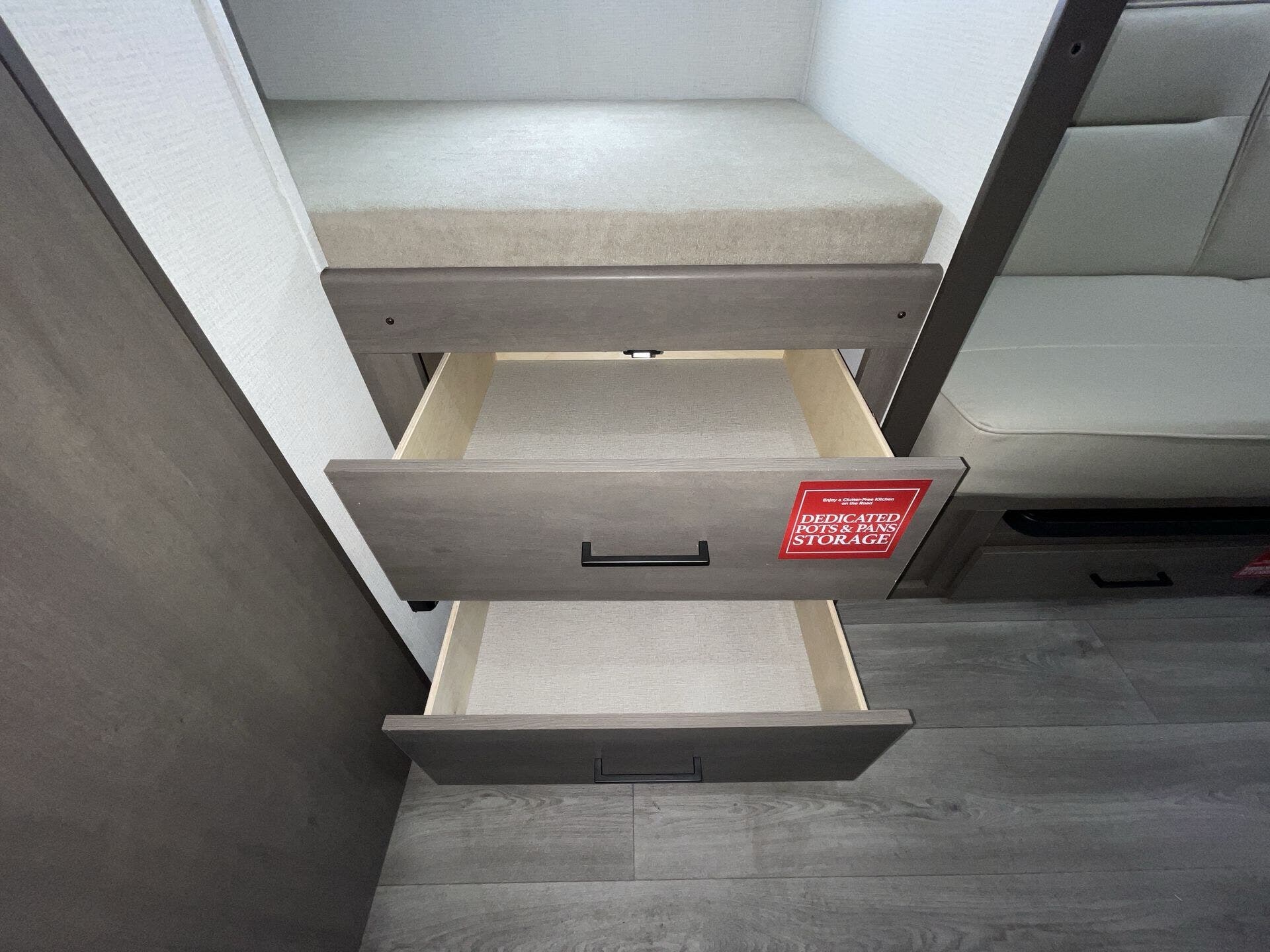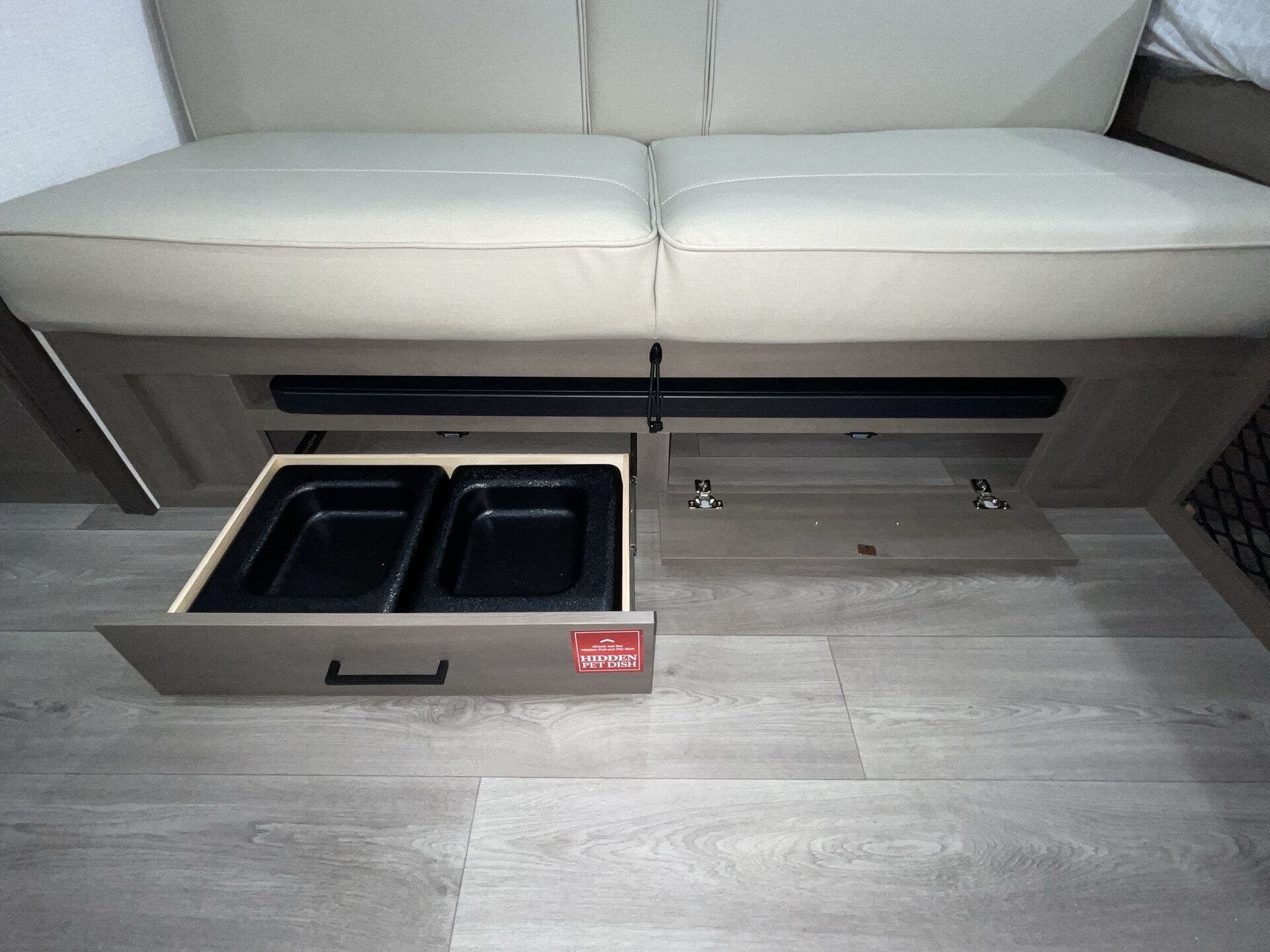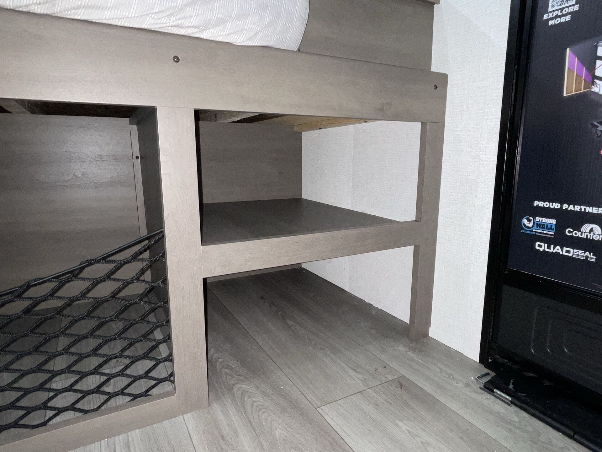 - Interior: Queen Bed, Bunk Beds, Sofa Bed, Removable Table, Overhead Cabinetry