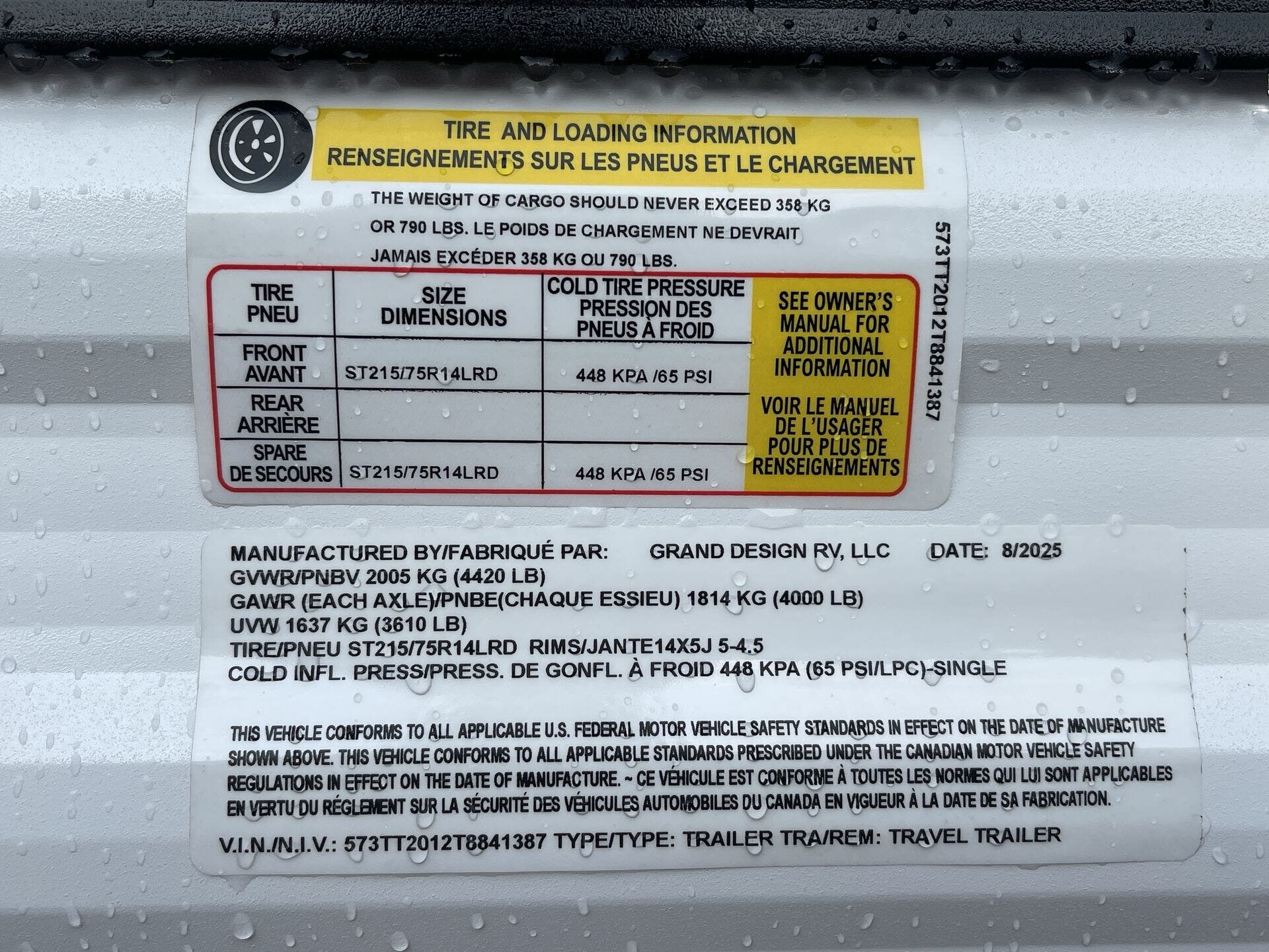 Awning, Detachable Power Cord, Hitch, Leveling Jacks, Roof Vent, Screen Door, Spare Tire Kit -
