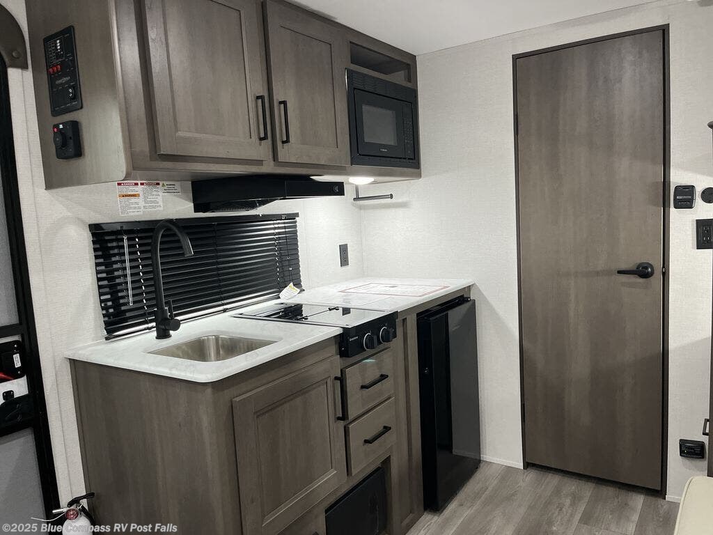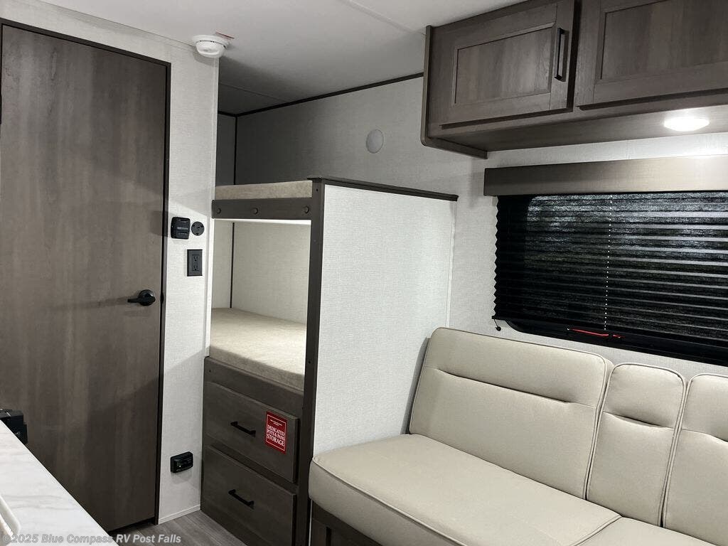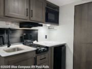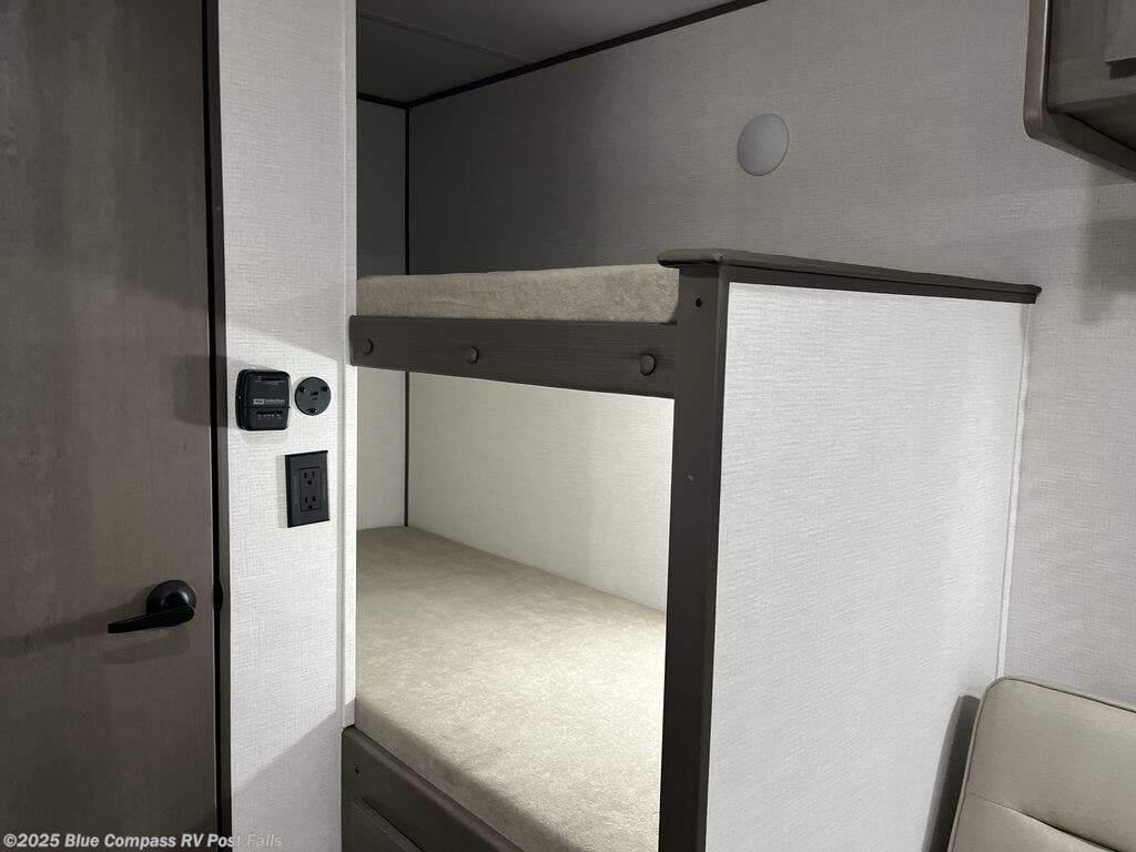 Camping trips to the lake have never been easier than with this travel trailer! The 28" x 67" bunks are right next to the private bath for easy nighttime use, and the front queen bed includes hidden storage for your things. There is also a 66" Jack knife sofa that provides a little more sleeping space for guests. A full kitchen lets you cook meals each day and there is an exterior LP quick connect if you want to fire up your own propane grill.