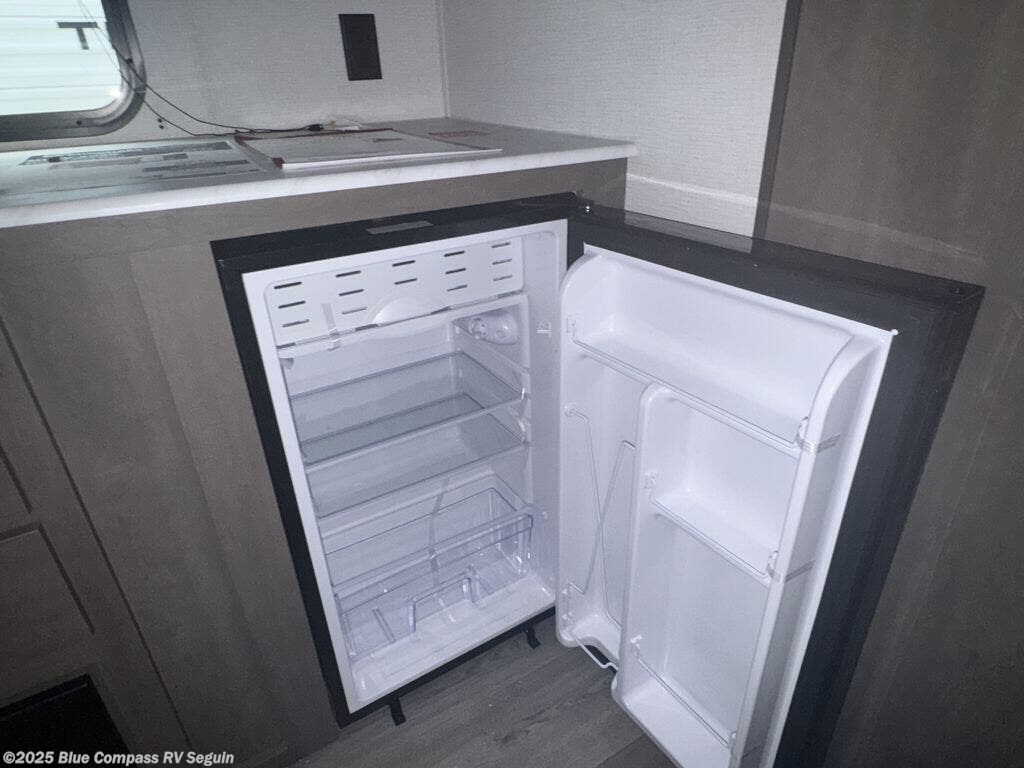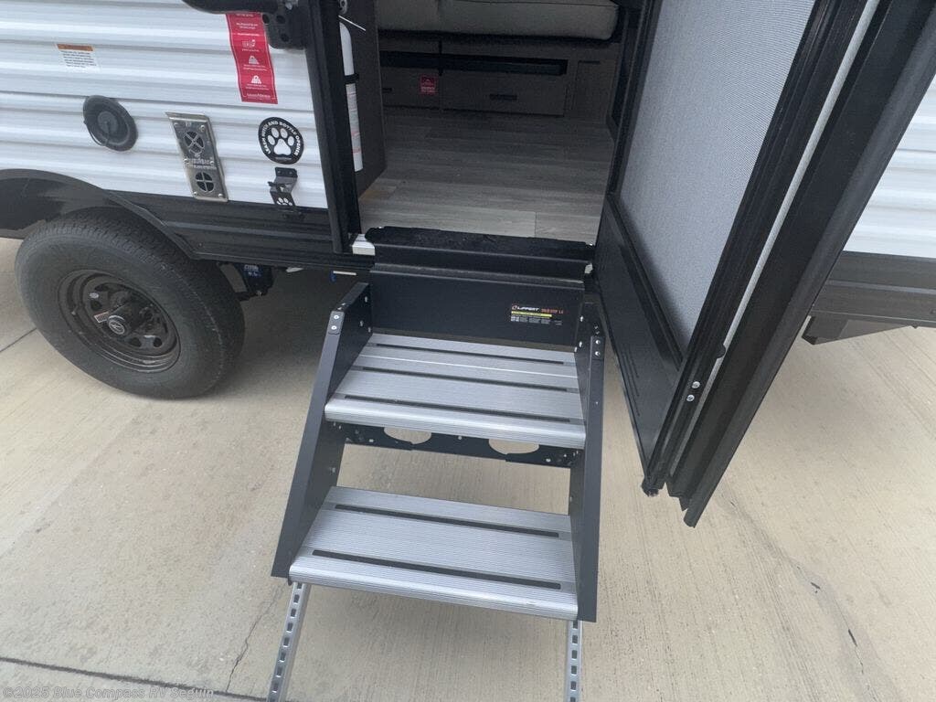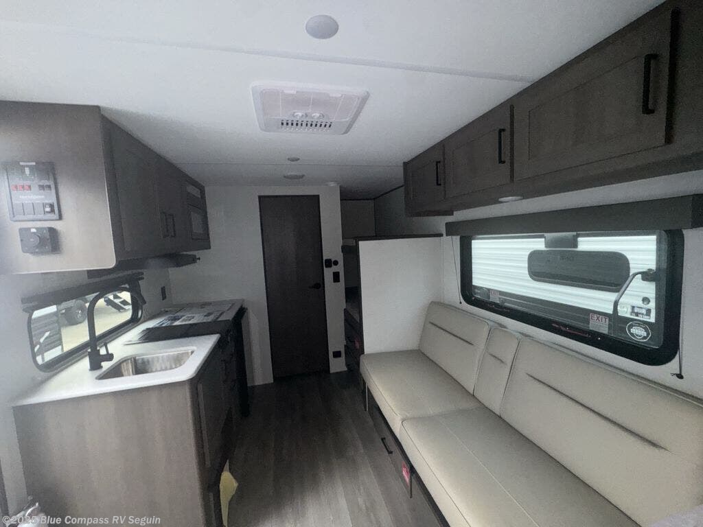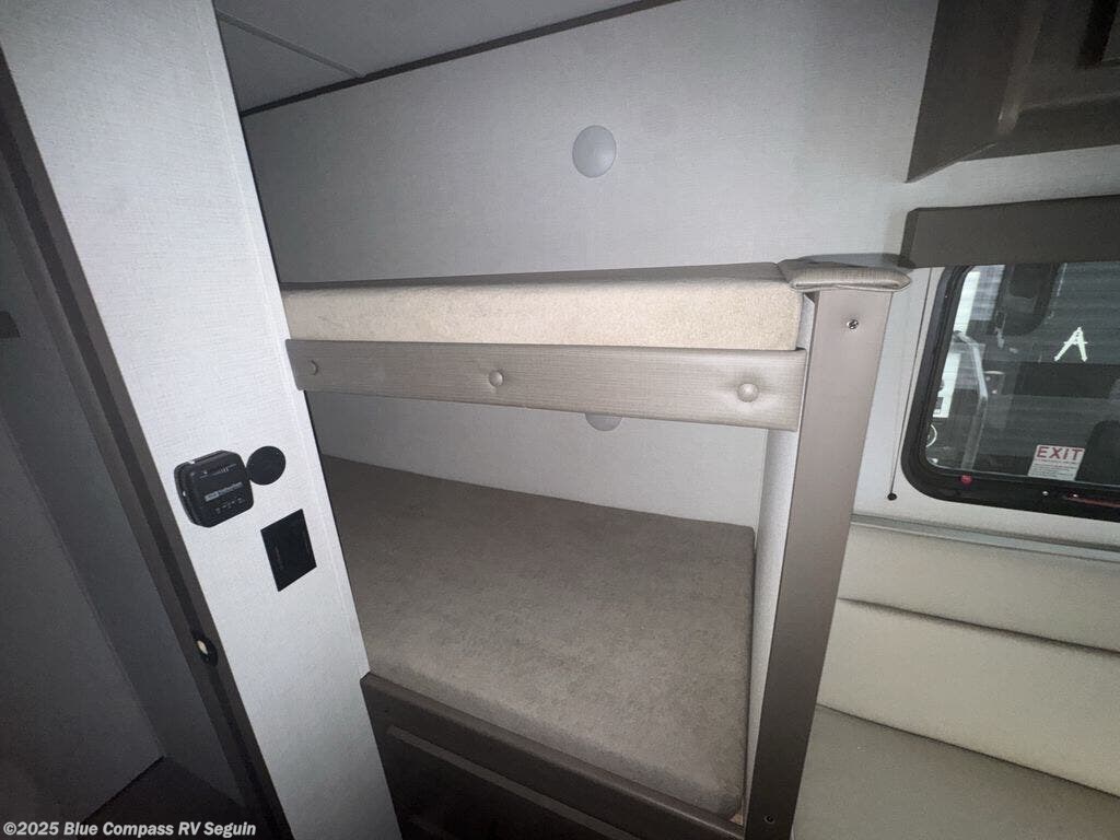 Camping trips to the lake have never been easier than with this travel trailer! The 28" x 67" bunks are right next to the private bath for easy nighttime use, and the front queen bed includes hidden storage for your things. There is also a 66" Jack knife sofa that provides a little more sleeping space for guests. A full kitchen lets you cook meals each day and there is an exterior LP quick connect if you want to fire up your own propane grill.