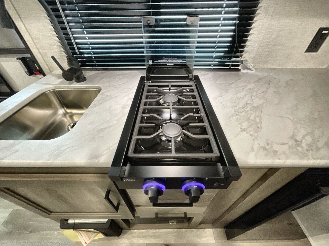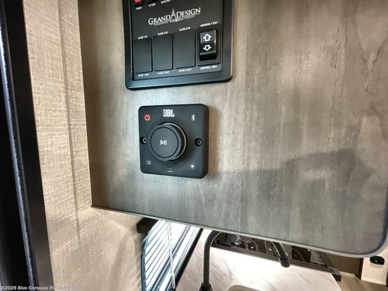 With any Transcend One travel trailer by Grand Design, you will enjoy lightweight towing thanks to their single-axle. There are many interior comforts to make camping easier than ever, such as recessed lighting, residential countertops, and a 6' 6" interior height. Each model is constructed with a heated and enclosed underbelly with suspended tanks, a moisture barrier floor enclosure, and Thermofoil over the roof and front cap for added protection. And a JBL sound system will let you listen to tunes as you visit under the power awning with a Fusion light!