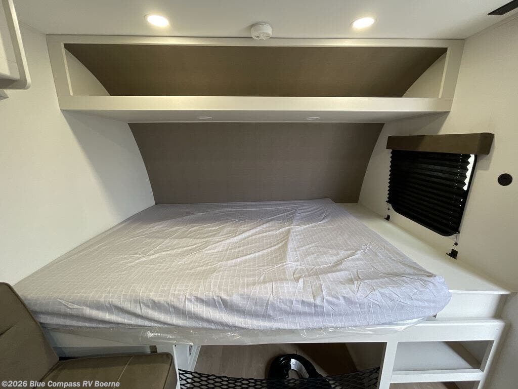 Camping trips to the lake have never been easier than with this travel trailer! The 28" x 67" bunks are right next to the private bath for easy nighttime use, and the front queen bed includes hidden storage for your things. There is also a 66" Jack knife sofa that provides a little more sleeping space for guests. A kitchen lets you cook meals each day and there is an exterior LP quick connect if you want to fire up your own propane grill.