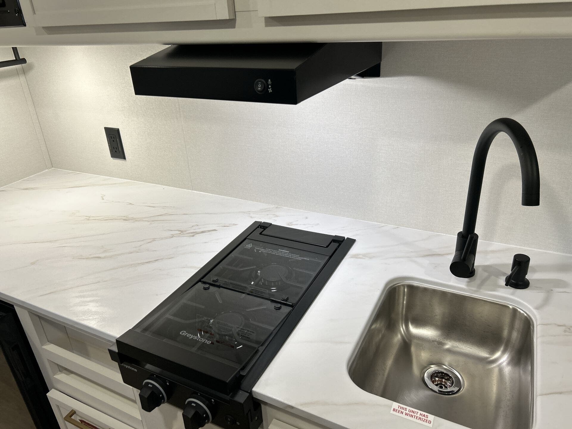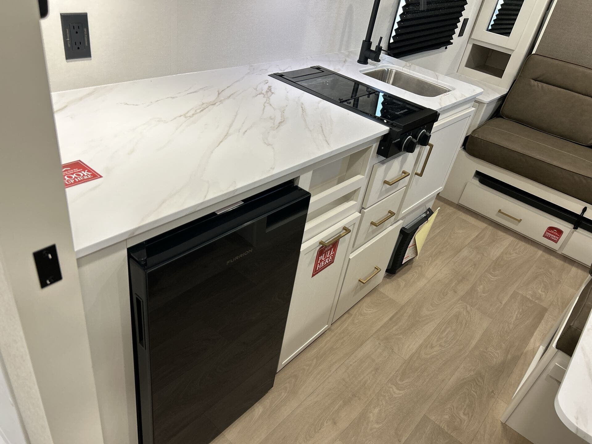 - Water capacity — Fresh 37 gallons; Grey 37 gallons; Black 37 gallons