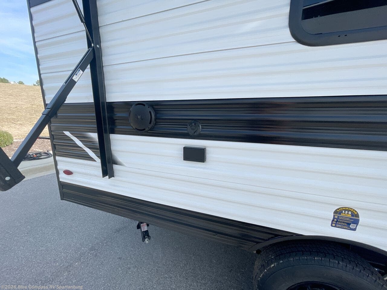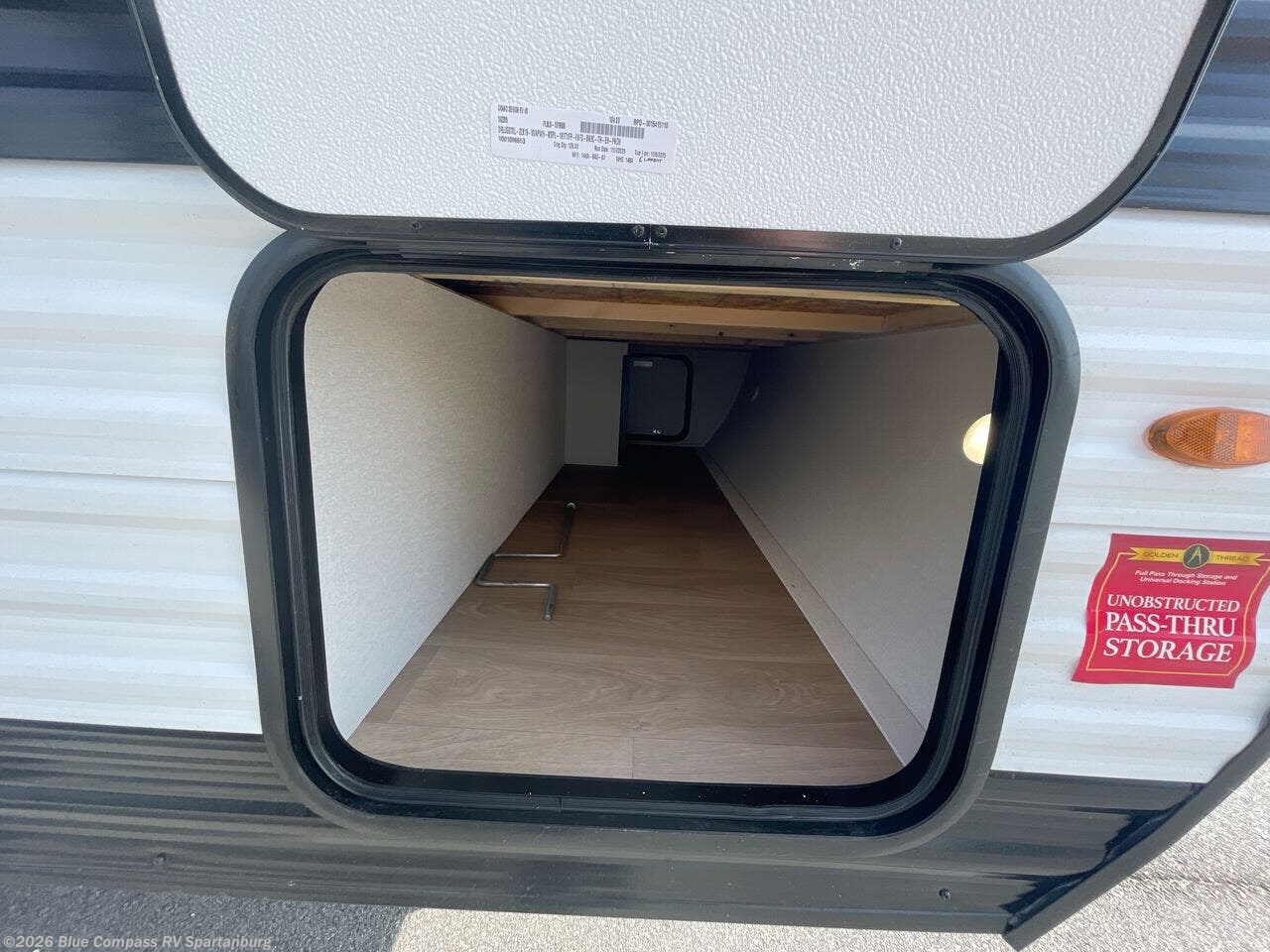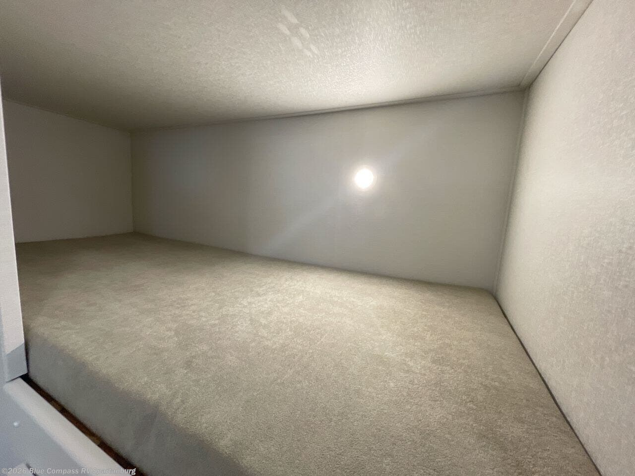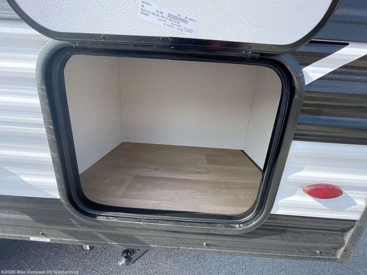 Camping trips to the lake have never been easier than with this travel trailer! The 28" x 67" bunks are right next to the private bath for easy nighttime use, and the front queen bed includes hidden storage for your things. There is also a 66" Jack knife sofa that provides a little more sleeping space for guests. A kitchen lets you cook meals each day and there is an exterior LP quick connect if you want to fire up your own propane grill.
