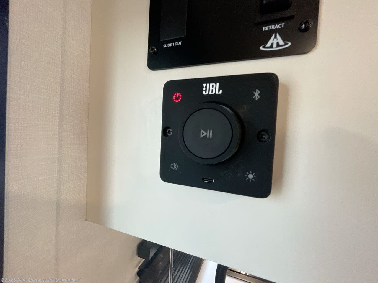 With any Transcend One travel trailer by Grand Design, you will enjoy lightweight towing thanks to their single-axle. There are many interior comforts to make camping easier than ever, such as recessed lighting, residential countertops, and a 6' 6" interior height. Each model is constructed with a heated and enclosed underbelly with suspended tanks, a moisture barrier floor enclosure, and Thermofoil over the roof and front cap for added protection. And a JBL sound system will let you listen to tunes as you visit under the power awning with a Fusion light!
