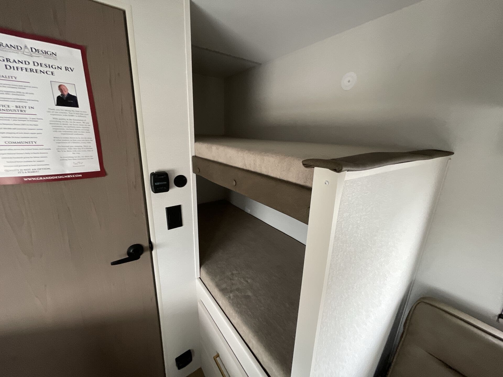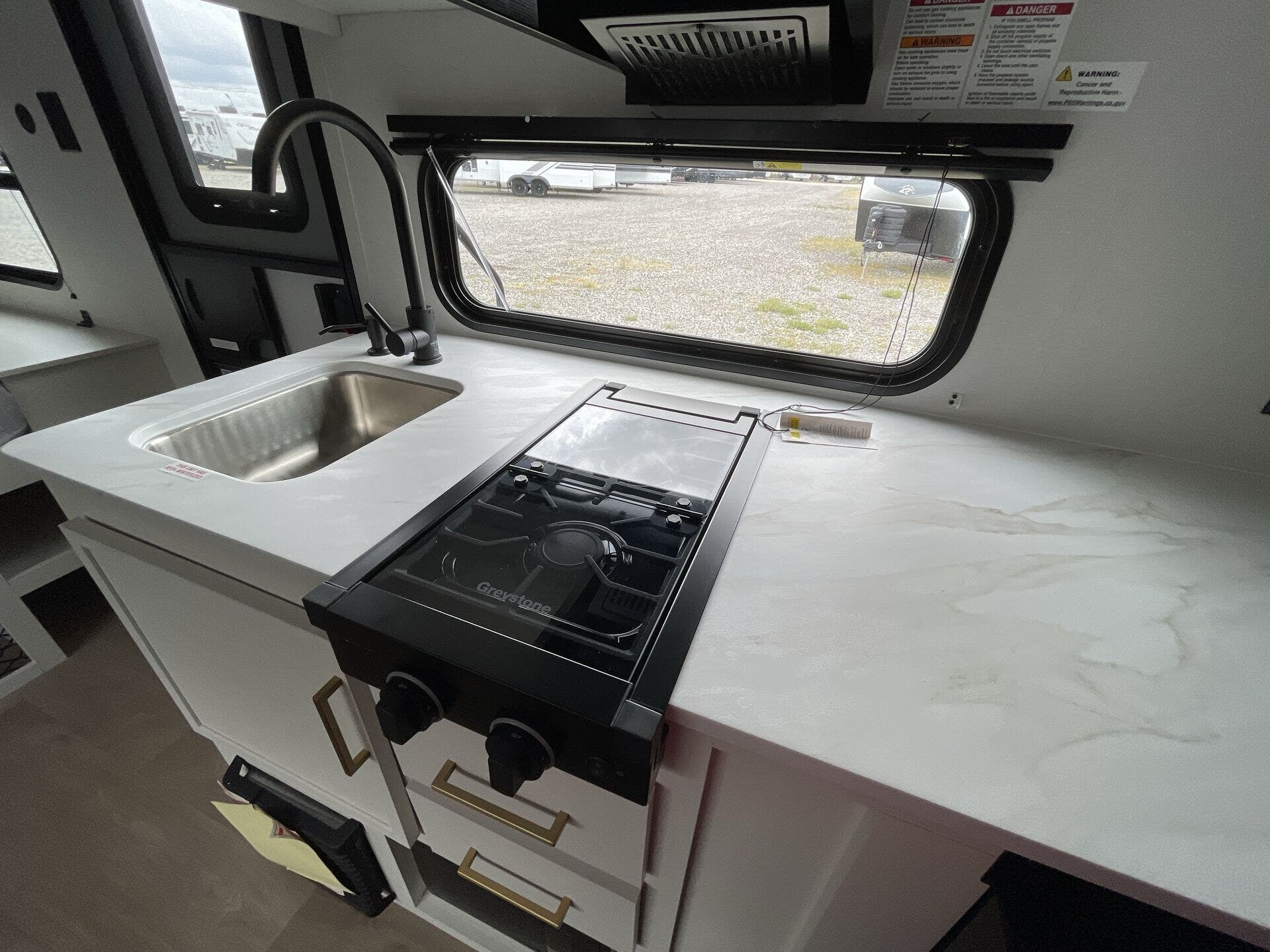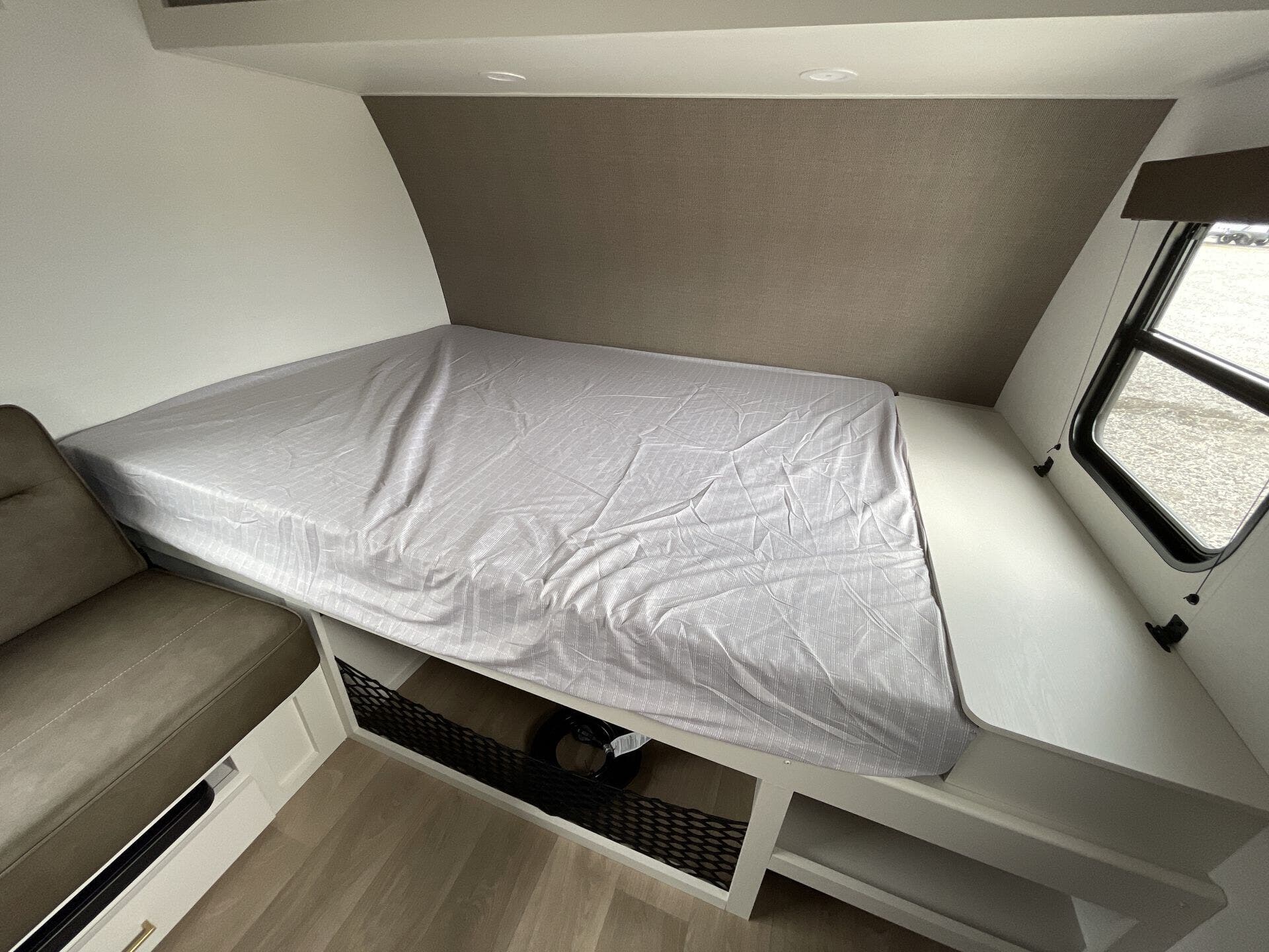 Inside, the 151BH maximizes every inch of space with a smart and functional layout. The rear bunk beds provide dedicated sleeping space for kids or guests, while the front bed offers a comfortable retreat for parents. A cozy dinette serves as both a dining area and an additional sleeping option, and the efficient kitchen is equipped with all the essentials, including a cooktop, refrigerator, microwave, and storage for your gear. Bright finishes and large windows create an open, welcoming atmosphere despite its compact footprint.