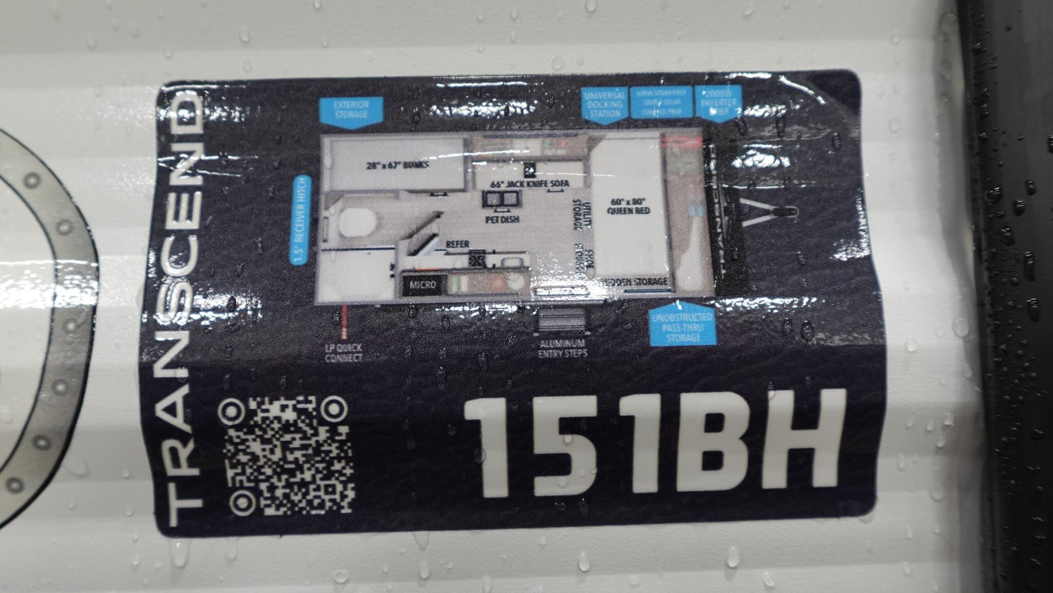 **Grand Design Transcend One travel trailer 151BH highlights:** - Bunk Beds - Unobstructed Pass-Thru Storage - Pet Dish - 10' Power Awning Camping trips to the lake have never been easier than with this travel trailer! The 28" x 67" bunks are right next to the private bath for easy nighttime use, and the front queen bed includes hidden storage for your things. There is also a 66" Jack knife sofa that provides a little more sleeping space for guests. A full kitchen lets you cook meals each day and there is an exterior LP quick connect if you want to fire up your own propane grill. With any Transcend One travel trailer by Grand Design, you will enjoy lightweight towing thanks to their single-axle. There are many interior comforts to make camping easier than ever, such as recessed lighting, residential countertops, and a 6' 6" interior height. Each model is constructed with a heated and enclosed underbelly with suspended tanks, a moisture barrier floor enclosure, and Thermofoil over the roof and front cap for added protection. And a JBL sound system will let you listen to tunes as you visit under the power awning with a Fusion light!