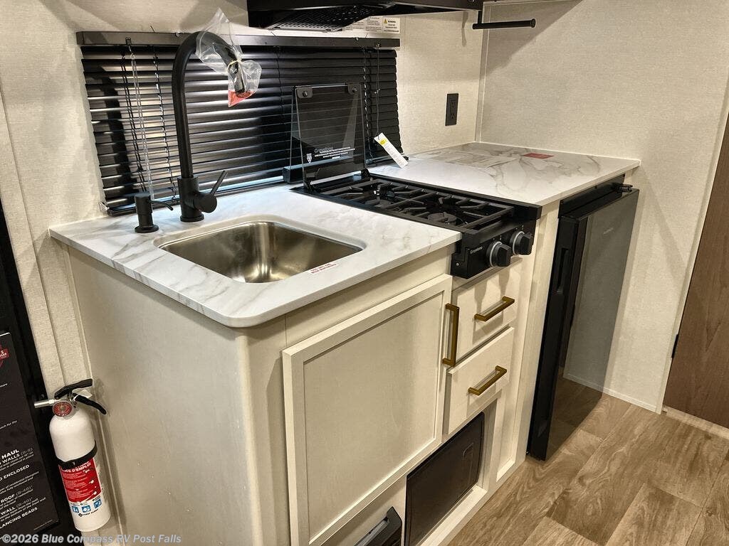 Camping trips to the lake have never been easier than with this travel trailer! The 28" x 67" bunks are right next to the private bath for easy nighttime use, and the front queen bed includes hidden storage for your things. There is also a 66" Jack knife sofa that provides a little more sleeping space for guests. A kitchen lets you cook meals each day and there is an exterior LP quick connect if you want to fire up your own propane grill.