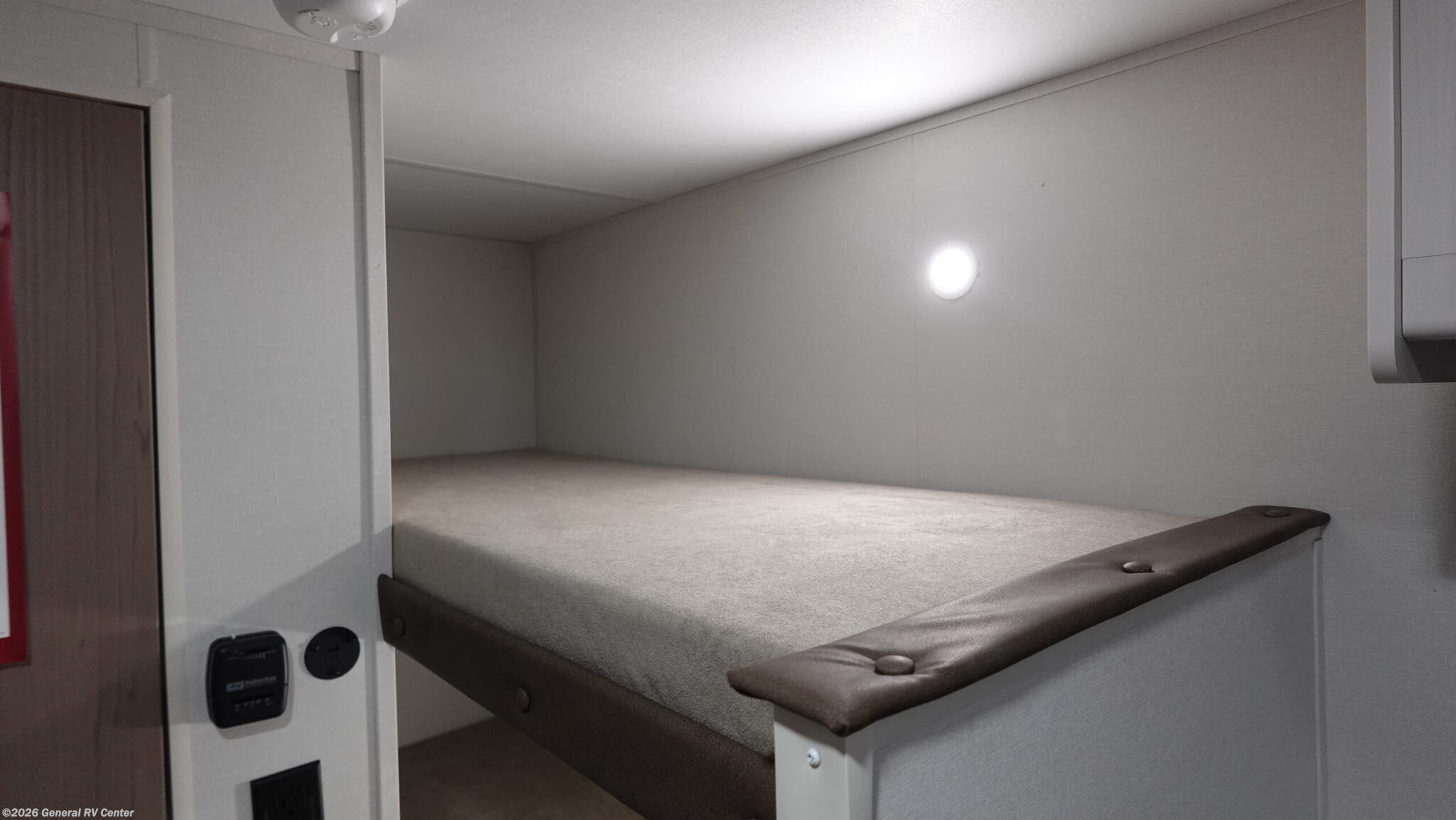 Experience the perfect blend of compact convenience and Grand Design quality with the 2026 Grand Design Transcend One 151BH travel trailer. This lightweight bunkhouse is engineered for easy towing and maximum adventure, making it an ideal choice for first-time RV owners or seasoned travelers looking to downsize without compromise. The smart design comfortably sleeps up to five people with a residential-size queen bed upfront and private, rear double-over-double bunks (28" x 67") perfect for kids or guests. A generous 6' 6" interior height ensures a spacious feel, while clever storage solutions, including an unobstructed pass-through compartment, maximize every inch of space. A fully equipped galley kitchen features residential countertops, a 2-burner cooktop, microwave, and a 12V glass-front refrigerator. Enjoy modern conveniences on the go including the power awning with LED lighting and exterior JBL speakers - perfect for campsite ambiance. Pet-friendly features like pull-out pet bowls and an exterior leash link ensure the whole family can enjoy the trip.