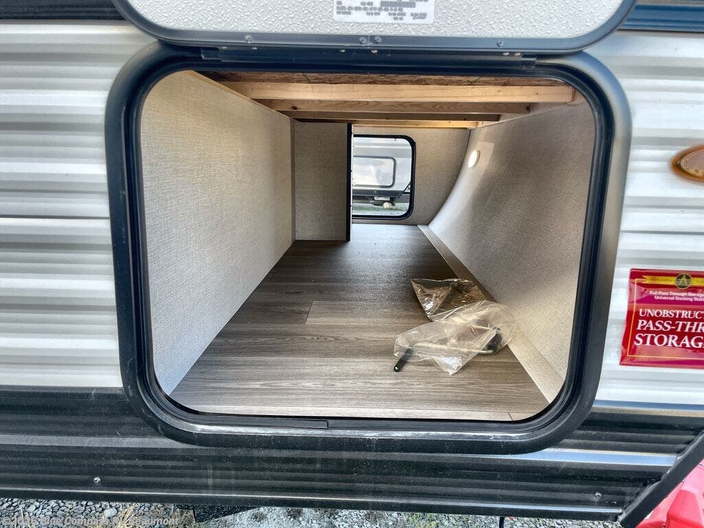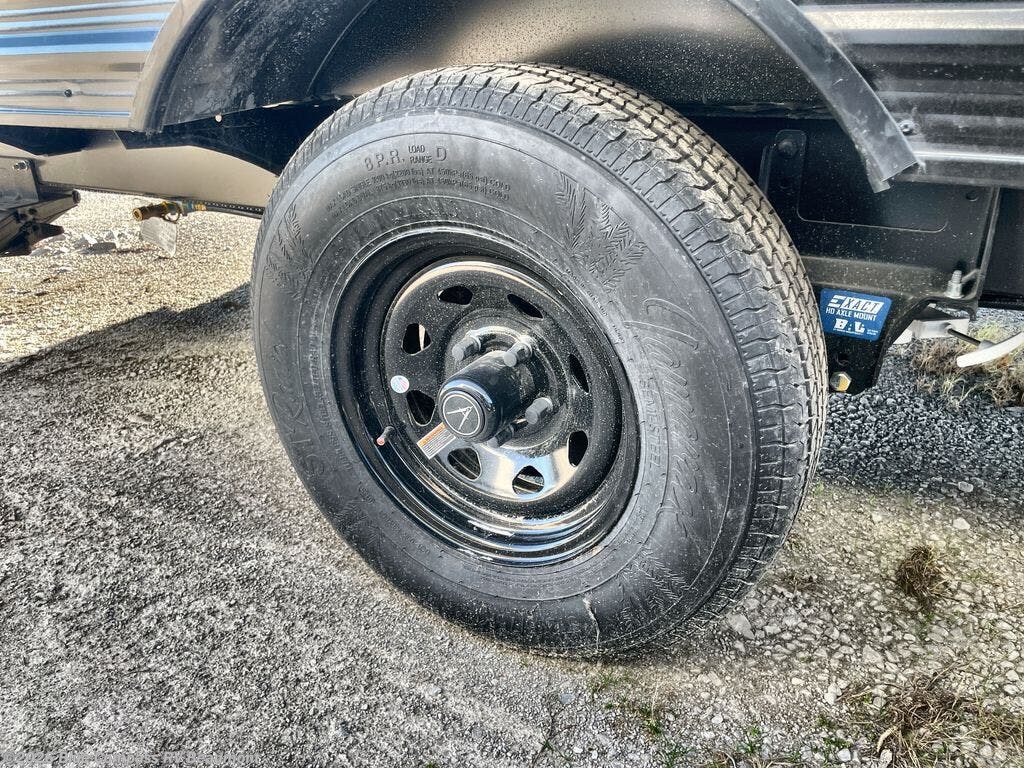 Camping trips to the lake have never been easier than with this travel trailer! The 28" x 67" bunks are right next to the private bath for easy nighttime use, and the front queen bed includes hidden storage for your things. There is also a 66" Jack knife sofa that provides a little more sleeping space for guests. A full kitchen lets you cook meals each day and there is an exterior LP quick connect if you want to fire up your own propane grill.