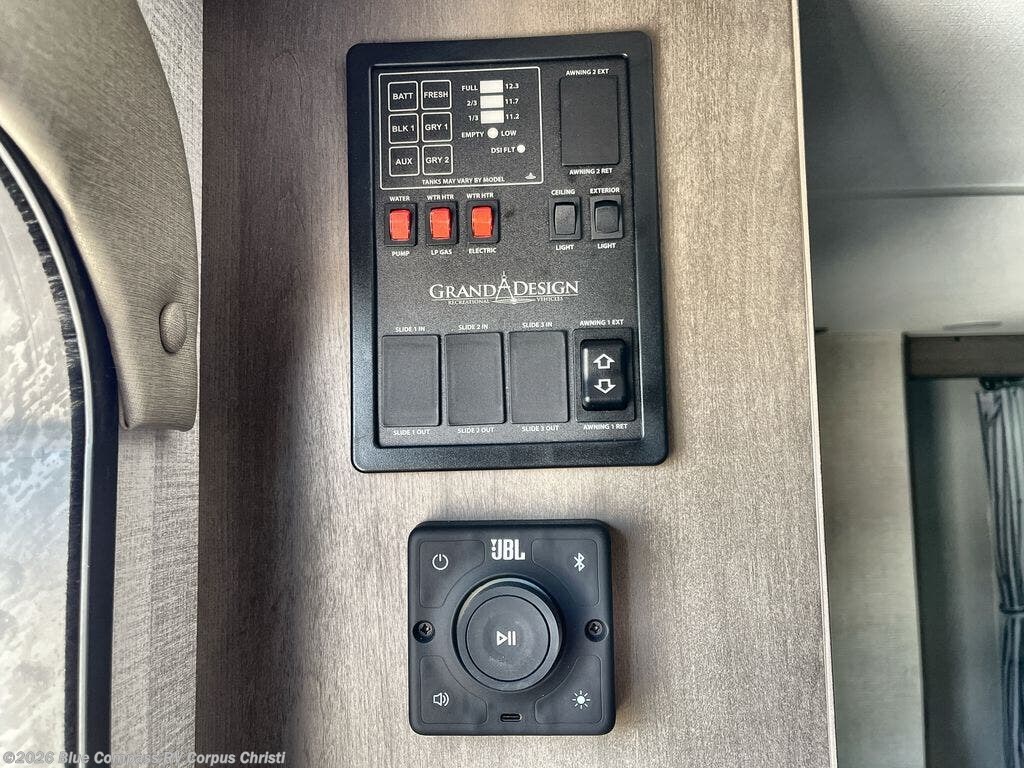 With any Transcend One travel trailer by Grand Design, you will enjoy lightweight towing thanks to their single-axle. There are many interior comforts to make camping easier than ever, such as recessed lighting, residential countertops, and a 6' 6" interior height. Each model is constructed with a heated and enclosed underbelly with suspended tanks, a moisture barrier floor enclosure, and Thermofoil over the roof and front cap for added protection. And a JBL sound system will let you listen to tunes as you visit under the power awning with a Fusion light!