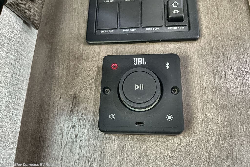 With any Transcend One travel trailer by Grand Design, you will enjoy lightweight towing thanks to their single-axle. There are many interior comforts to make camping easier than ever, such as recessed lighting, residential countertops, and a 6' 6" interior height. Each model is constructed with a heated and enclosed underbelly with suspended tanks, a moisture barrier floor enclosure, and Thermofoil over the roof and front cap for added protection. And a JBL sound system will let you listen to tunes as you visit under the power awning with a Fusion light!