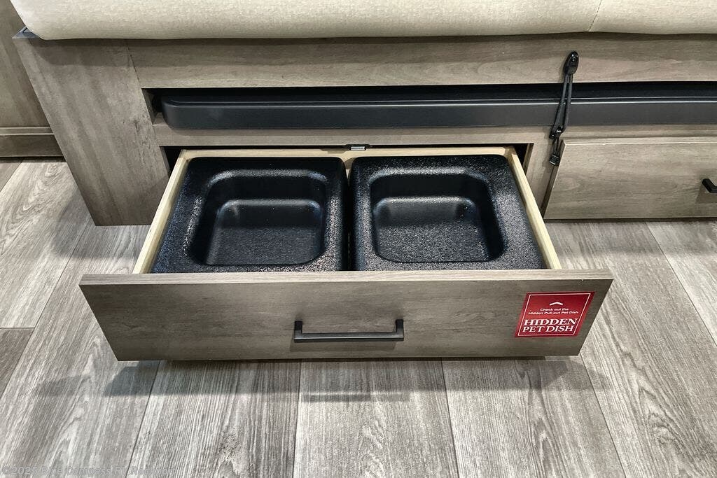 This is the perfect couple's trailer with versatile seating and sleeping space! You'll find a queen-size Murphy bed up front with storage space beside and above plus a full rear bath for added privacy. Once you've made lunch in the full kitchen, you can dine at the booth dinette, or take your plate outdoors to sit under the 10' power awning. You'll also find an unobstructed pass-thru storage outside that will be perfect for fishing poles, lawn chairs, tools and more!