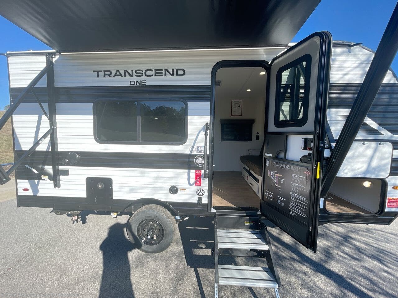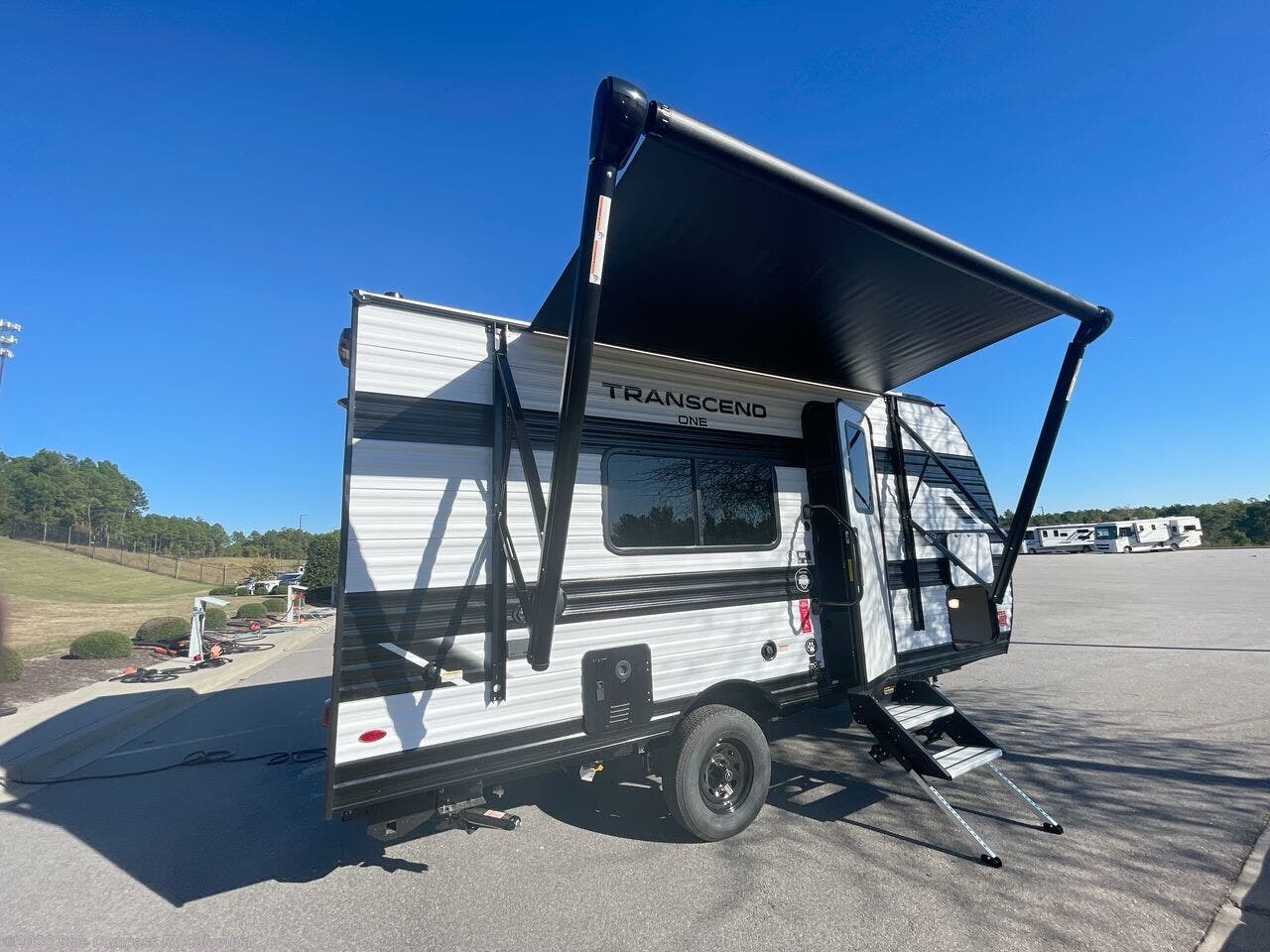 With any Transcend One travel trailer by Grand Design, you will enjoy lightweight towing thanks to their single-axle. There are many interior comforts to make camping easier than ever, such as recessed lighting, residential countertops, and a 6' 6" interior height. Each model is constructed with a heated and enclosed underbelly with suspended tanks, a moisture barrier floor enclosure, and Thermofoil over the roof and front cap for added protection. And a JBL sound system will let you listen to tunes as you visit under the power awning with a Fusion light!
