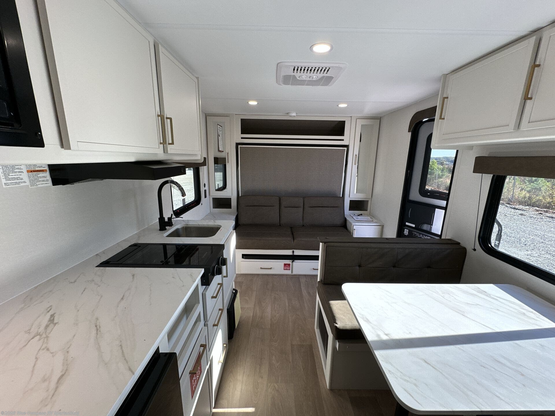 With any Transcend One travel trailer by Grand Design, you will enjoy lightweight towing thanks to their single-axle. There are many interior comforts to make camping easier than ever, such as recessed lighting, residential countertops, and a 6' 6" interior height. Each model is constructed with a heated and enclosed underbelly with suspended tanks, a moisture barrier floor enclosure, and Thermofoil over the roof and front cap for added protection. And a JBL sound system will let you listen to tunes as you visit under the power awning with a Fusion light!