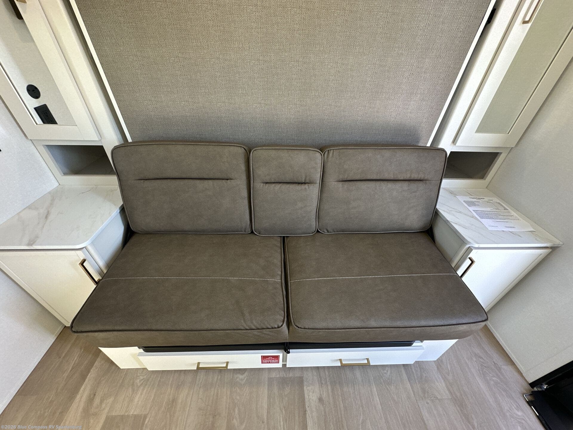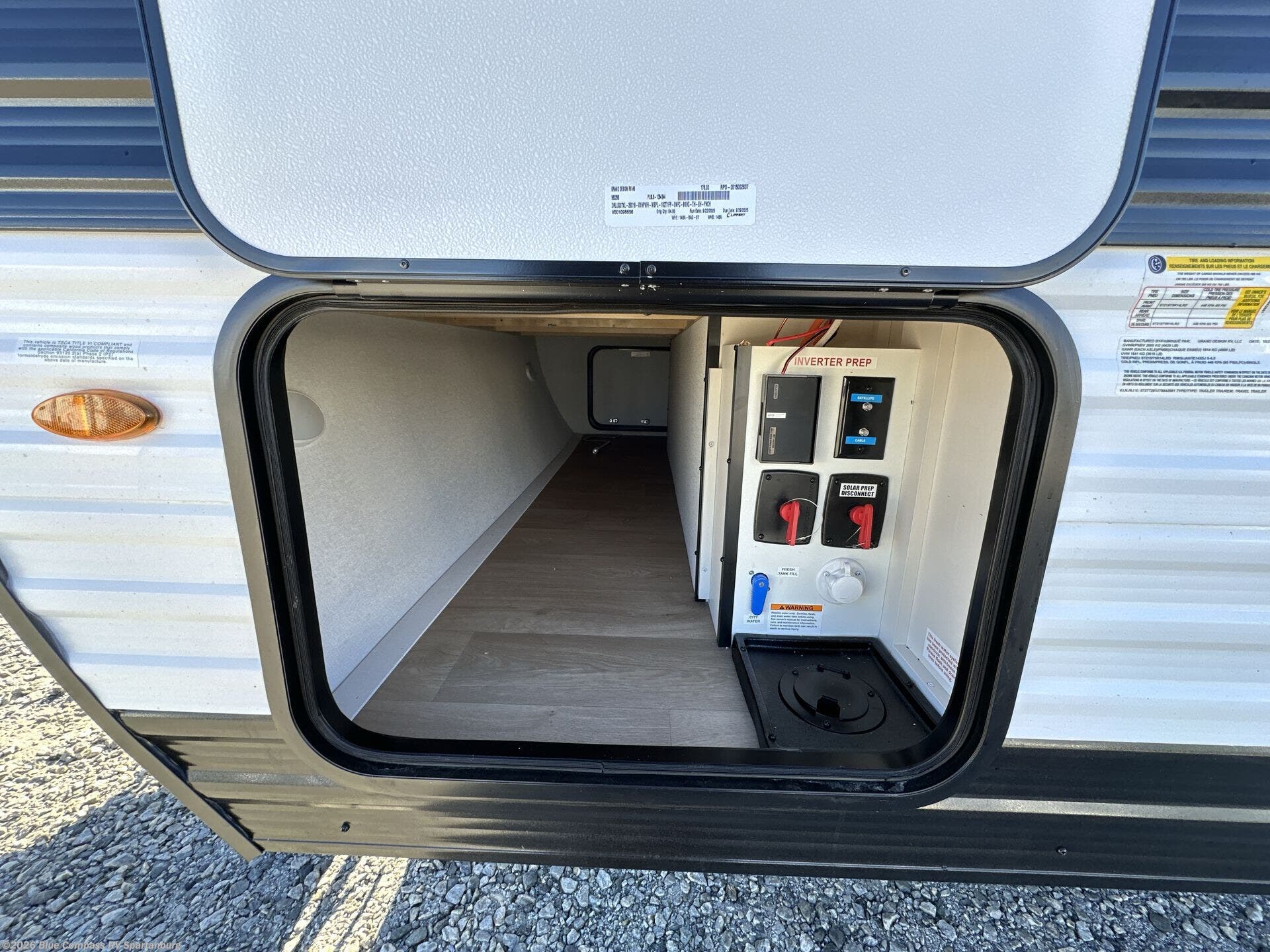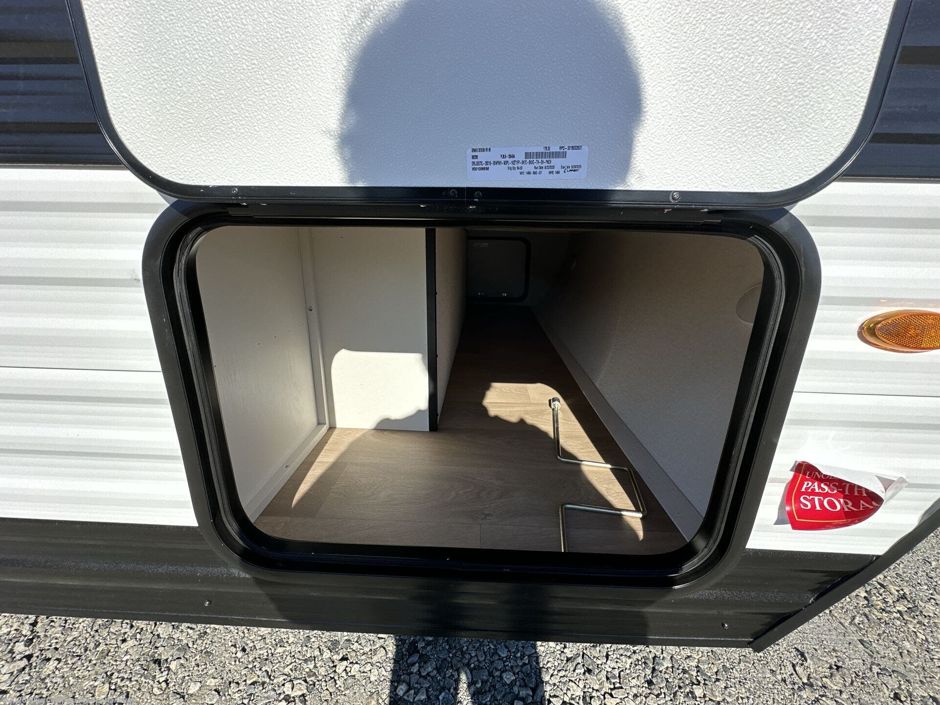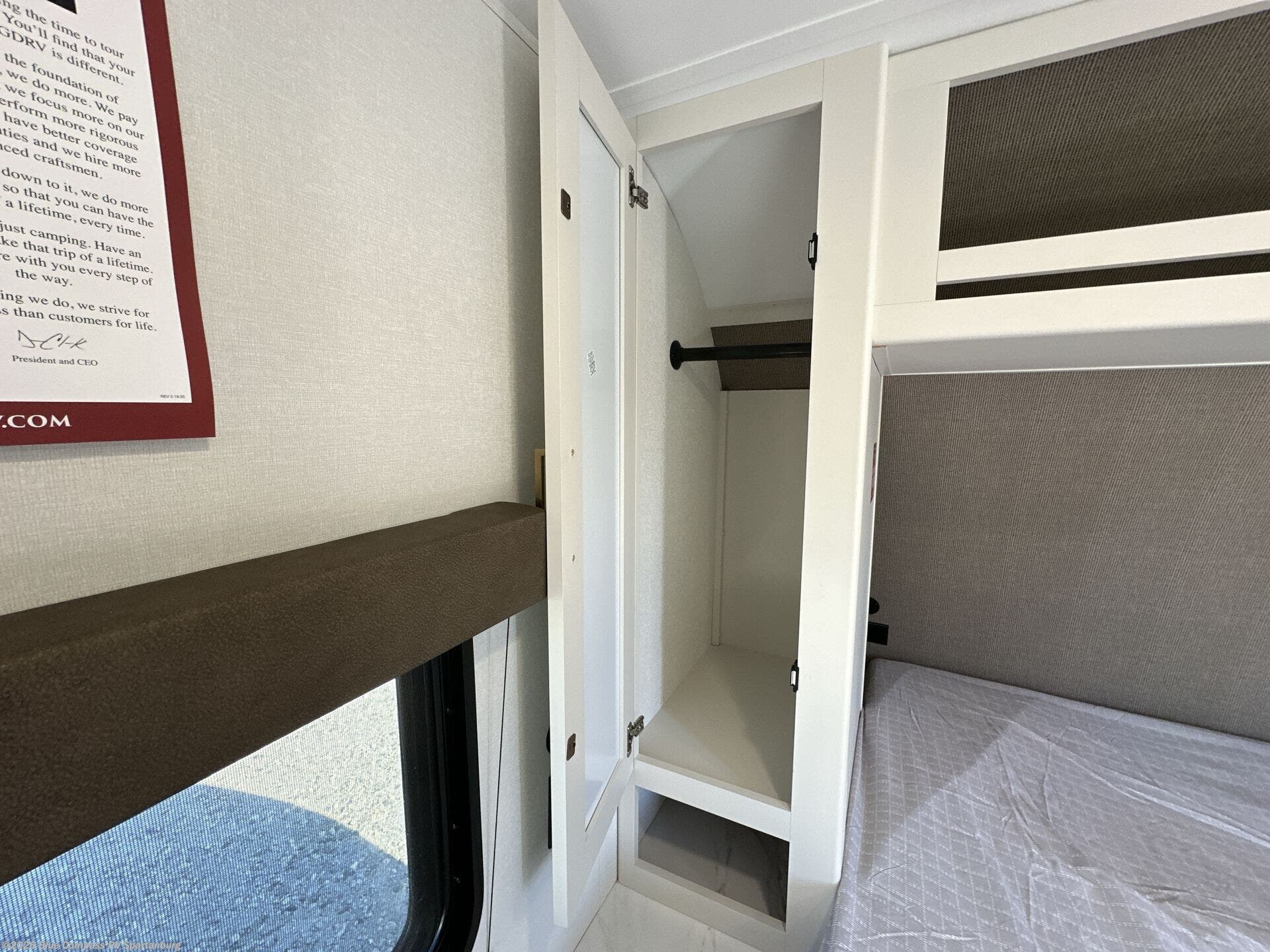This is the perfect couple's trailer with versatile seating and sleeping space! You'll find a queen-size Murphy bed up front with storage space beside and above plus a full rear bath for added privacy. Once you've made lunch in the full kitchen, you can dine at the booth dinette or take your plate outdoors to sit under the 10' power awning. You'll also find pass-thru storage outside that will be perfect for fishing poles, lawn chairs, tools and more!