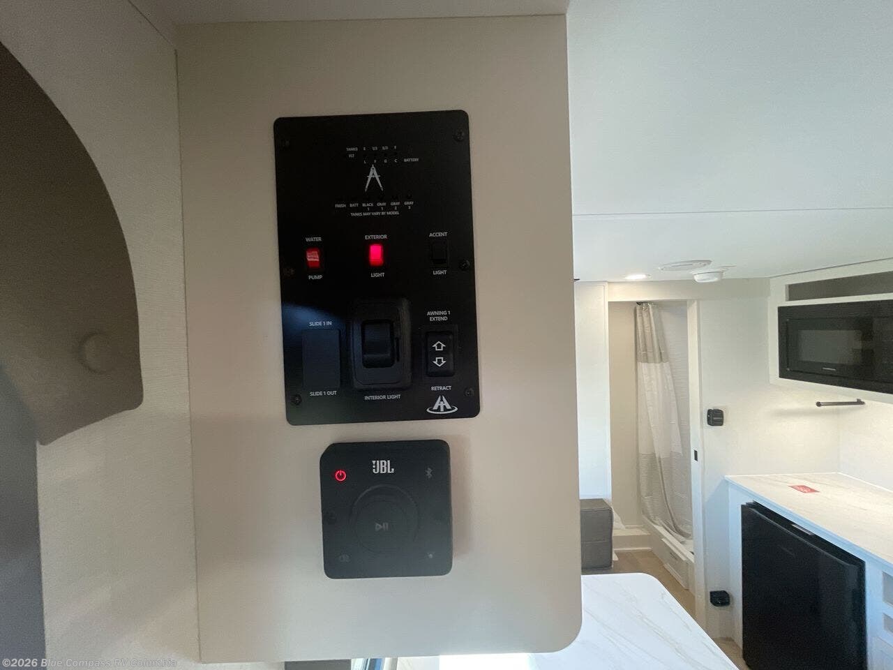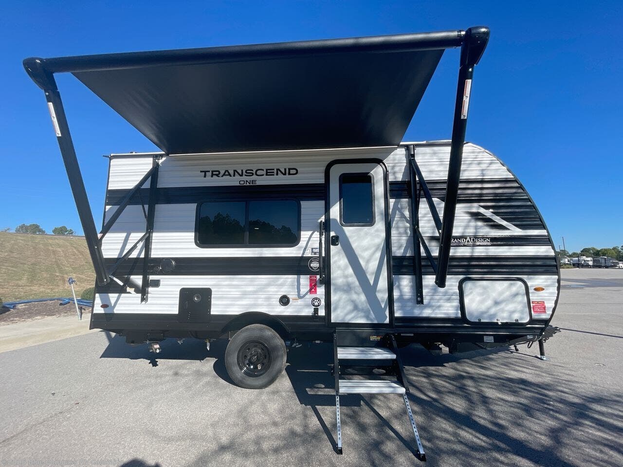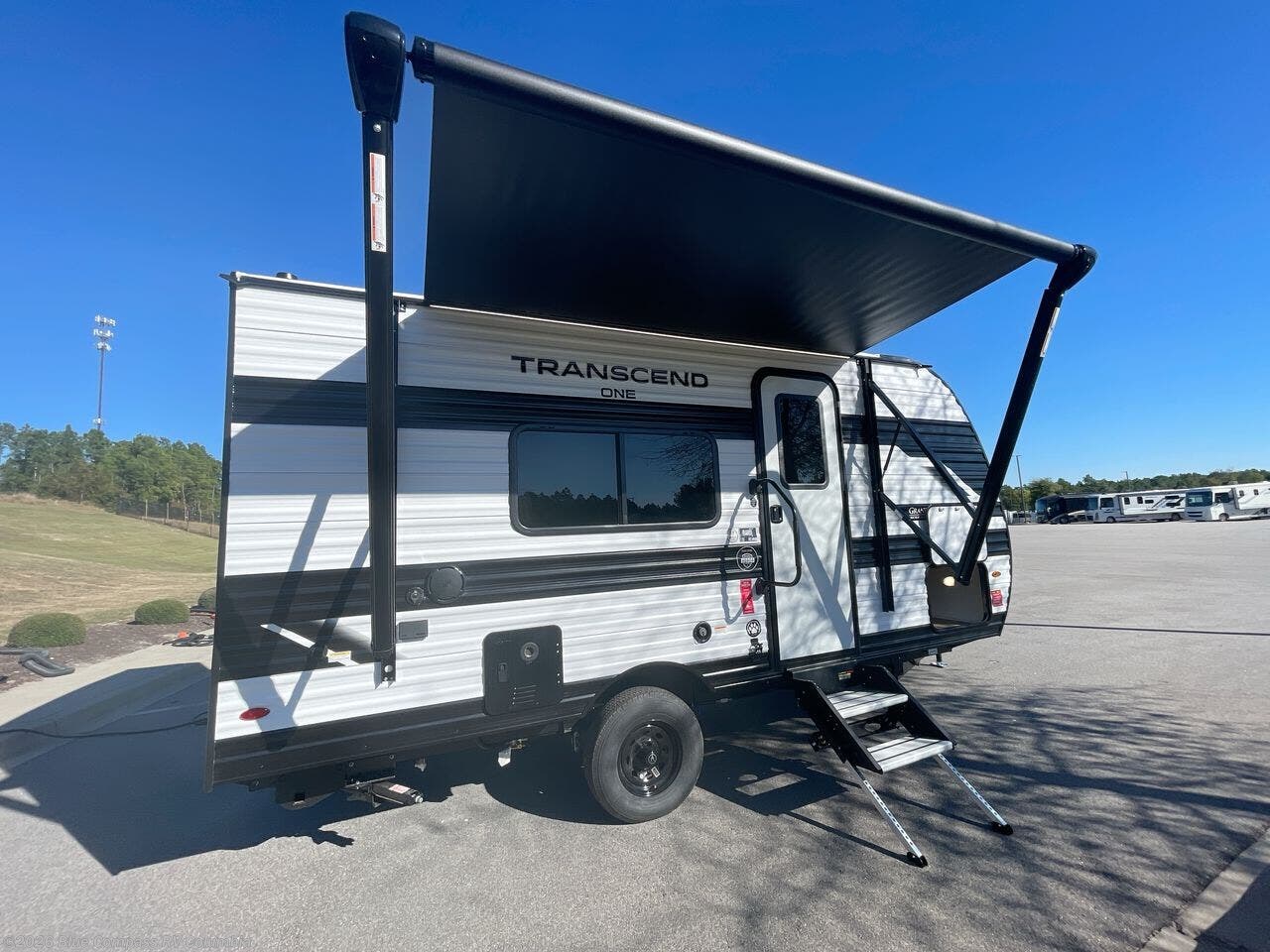 With any Transcend One travel trailer by Grand Design, you will enjoy lightweight towing thanks to their single-axle. There are many interior comforts to make camping easier than ever, such as recessed lighting, residential countertops, and a 6' 6" interior height. Each model is constructed with a heated and enclosed underbelly with suspended tanks, a moisture barrier floor enclosure, and Thermofoil over the roof and front cap for added protection. And a JBL sound system will let you listen to tunes as you visit under the power awning with a Fusion light!