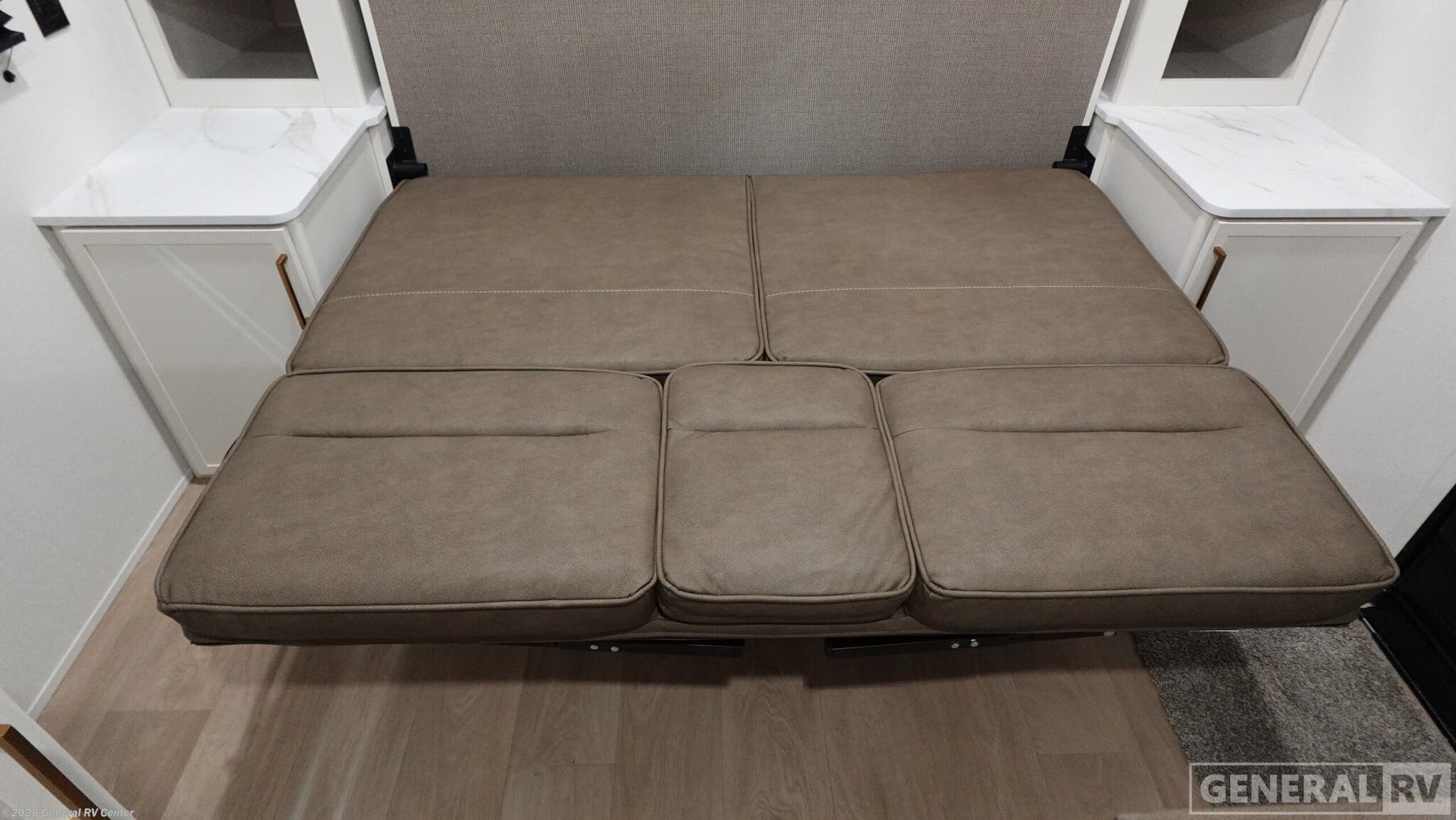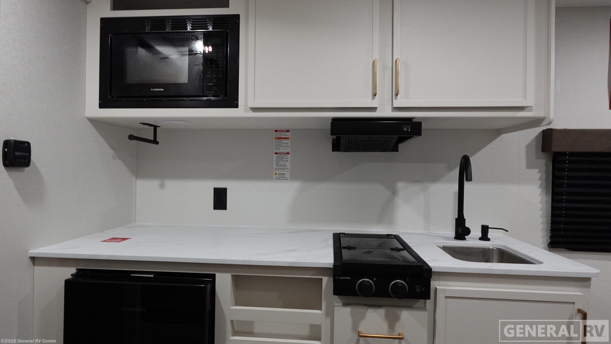 Experience the perfect blend of comfort and versatility with the 2026 Grand Design Transcend-One 151RB. This compact yet spacious travel trailer is designed for those who value both adventure and relaxation. With its 19-foot length, it offers a cozy retreat while being easy to tow. The innovative layout features a 60" x 80" Murphy bed that effortlessly transforms your living area into a restful sleeping space, accommodating up to three guests comfortably. The booth dinette is perfect for meals and game nights, doubling as additional sleeping space if needed. The kitchen is compact yet functional, equipped with a two-burner cooktop and a 3.3 cu ft glass front 12V refrigerator, ensuring you have everything you need to whip up your favorite meals on the road. The bathroom boasts a 24" x 32" standard shower, offering a refreshing start to your day. Enjoy the outdoors under the 10' power awning with Fusion light, perfect for evening relaxation. With 37 gallons of fresh, gray, and black water capacity, this RV is ready for extended adventures. Plus, the pass-thru storage and LP quick connect make it easy to bring along all your gear and set up camp with ease. Discover more at your nearest General RV dealership and start your journey today!