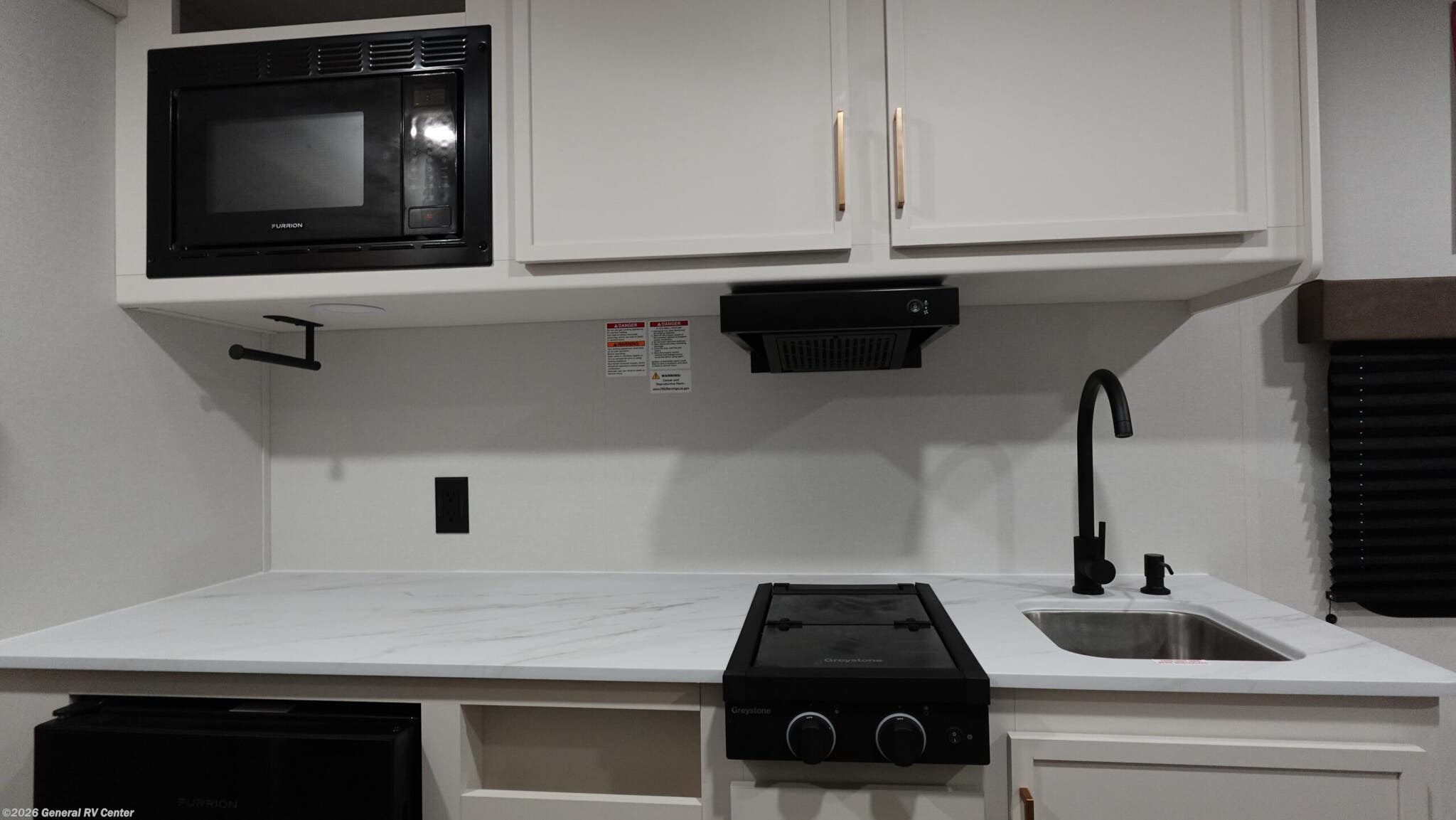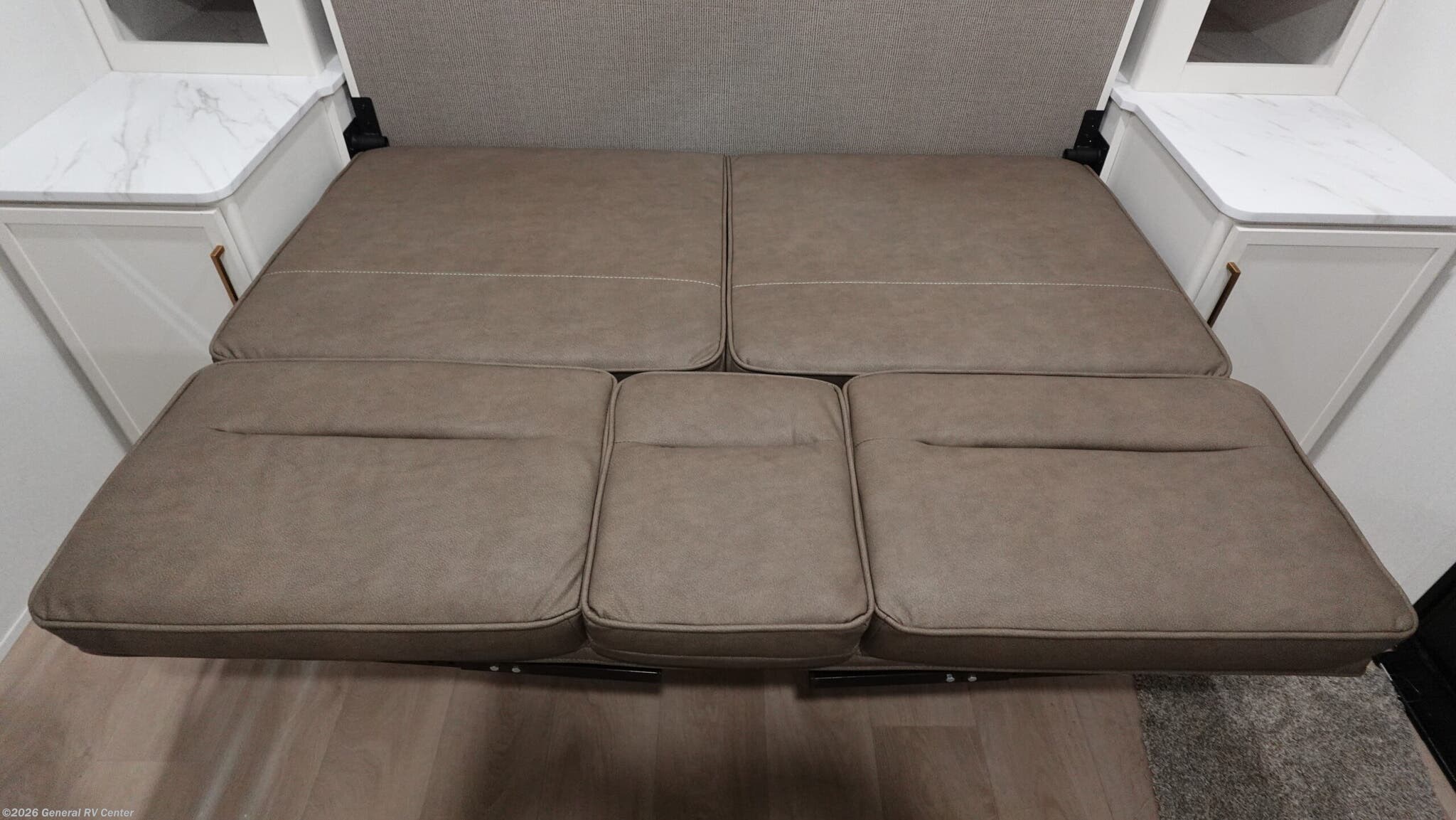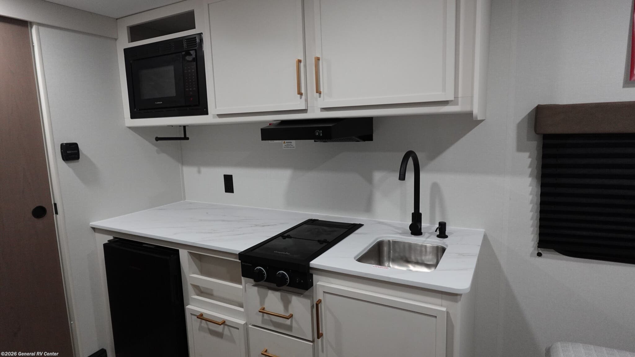 Experience the perfect blend of comfort and versatility with the 2026 Grand Design Transcend-One 151RB. This compact yet spacious travel trailer is designed for those who value both adventure and relaxation. With its 19-foot length, it offers a cozy retreat while being easy to tow. The innovative layout features a 60" x 80" Murphy bed that effortlessly transforms your living area into a restful sleeping space, accommodating up to three guests comfortably. The booth dinette is perfect for meals and game nights, doubling as additional sleeping space if needed. The kitchen is compact yet functional, equipped with a two-burner cooktop and a 3.3 cu ft glass front 12V refrigerator, ensuring you have everything you need to whip up your favorite meals on the road. The bathroom boasts a 24" x 32" standard shower, offering a refreshing start to your day. Enjoy the outdoors under the 10' power awning with Fusion light, perfect for evening relaxation. With 37 gallons of fresh, gray, and black water capacity, this RV is ready for extended adventures. Plus, the pass-thru storage and LP quick connect make it easy to bring along all your gear and set up camp with ease. Discover more at your nearest General RV dealership and start your journey today!