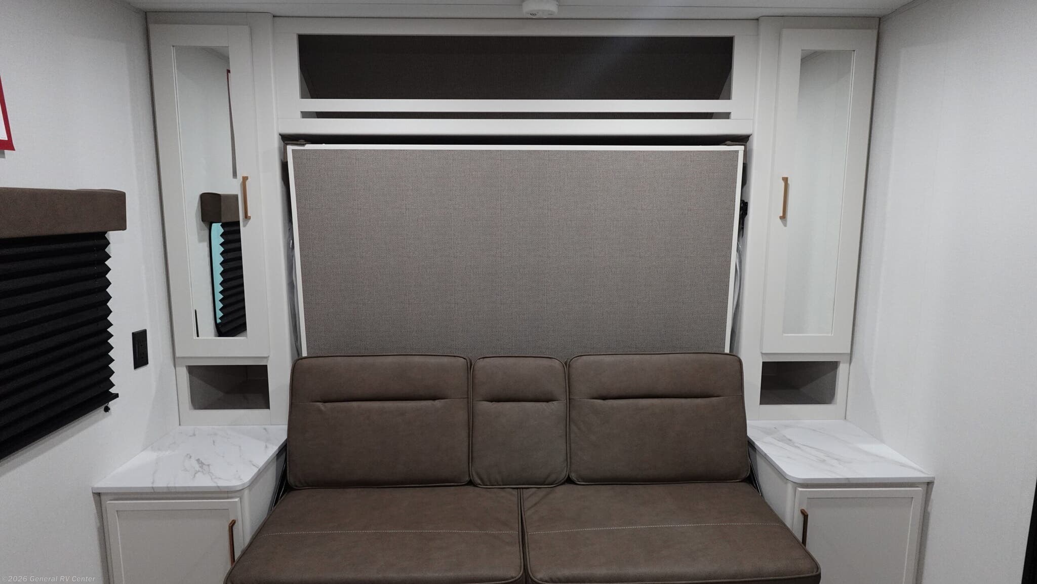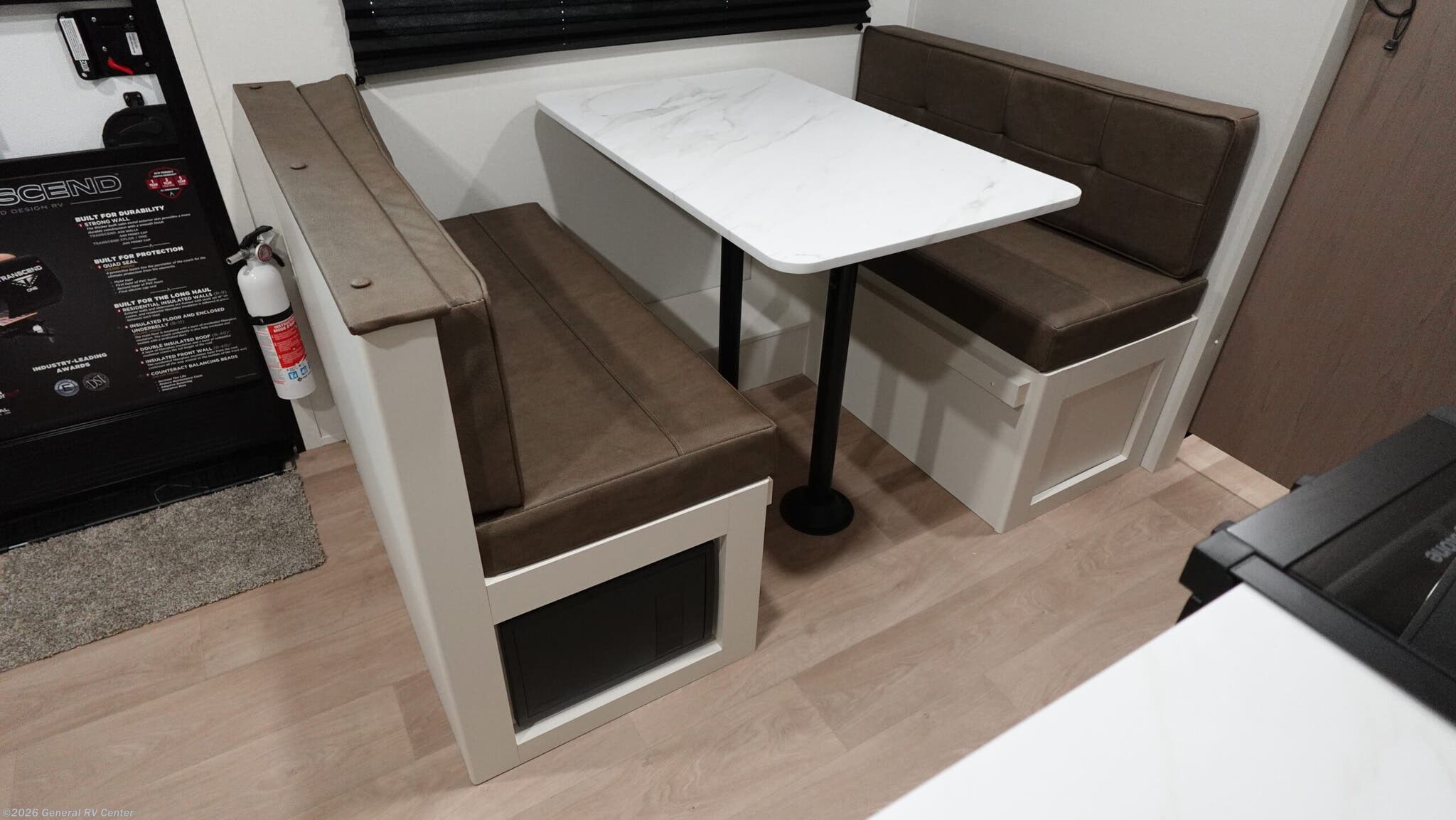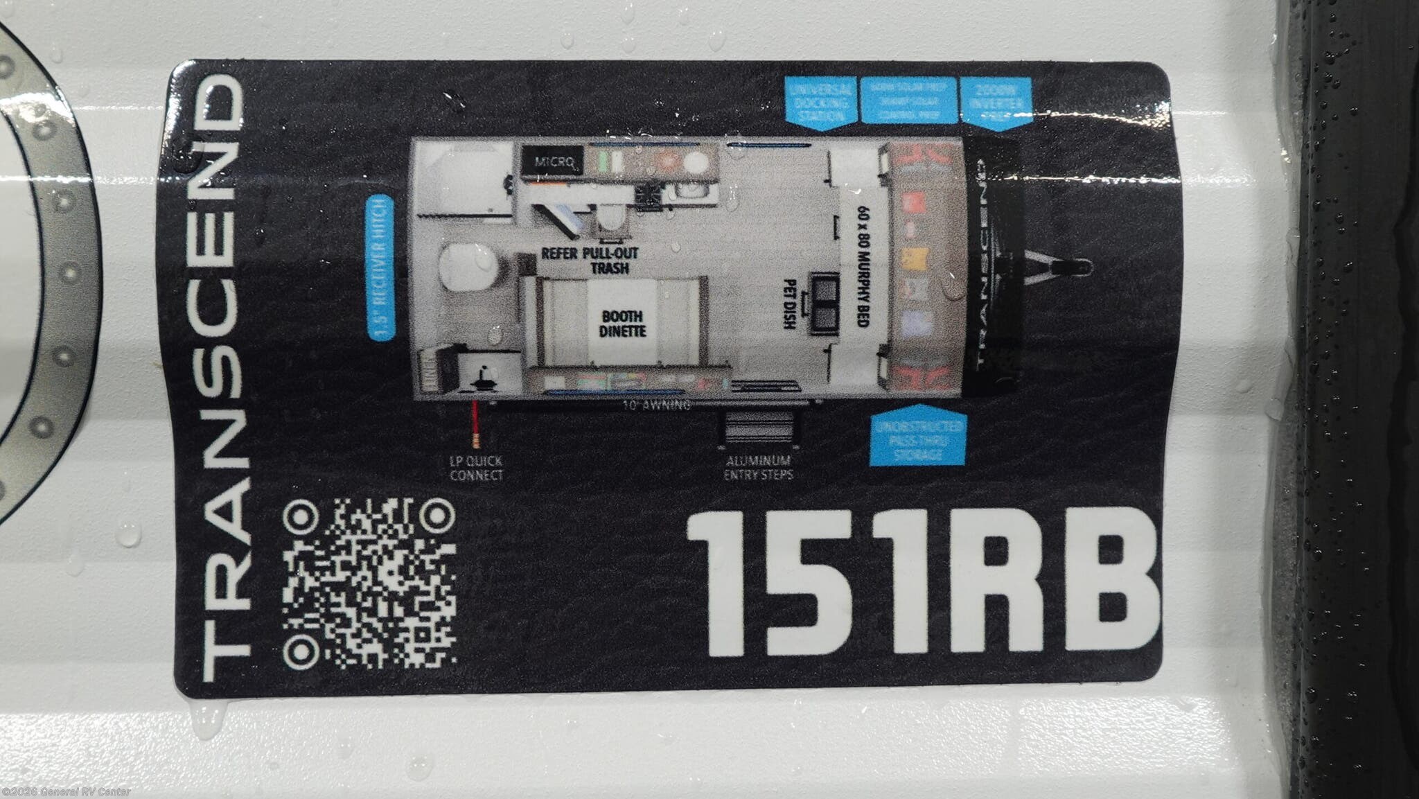 Experience the perfect blend of comfort and versatility with the 2026 Grand Design Transcend-One 151RB. This compact yet spacious travel trailer is designed for those who value both adventure and relaxation. With its 19-foot length, it offers a cozy retreat while being easy to tow. The innovative layout features a 60" x 80" Murphy bed that effortlessly transforms your living area into a restful sleeping space, accommodating up to three guests comfortably. The booth dinette is perfect for meals and game nights, doubling as additional sleeping space if needed. The kitchen is compact yet functional, equipped with a two-burner cooktop and a 3.3 cu ft glass front 12V refrigerator, ensuring you have everything you need to whip up your favorite meals on the road. The bathroom boasts a 24" x 32" standard shower, offering a refreshing start to your day. Enjoy the outdoors under the 10' power awning with Fusion light, perfect for evening relaxation. With 37 gallons of fresh, gray, and black water capacity, this RV is ready for extended adventures. Plus, the pass-thru storage and LP quick connect make it easy to bring along all your gear and set up camp with ease. Discover more at your nearest General RV dealership and start your journey today!