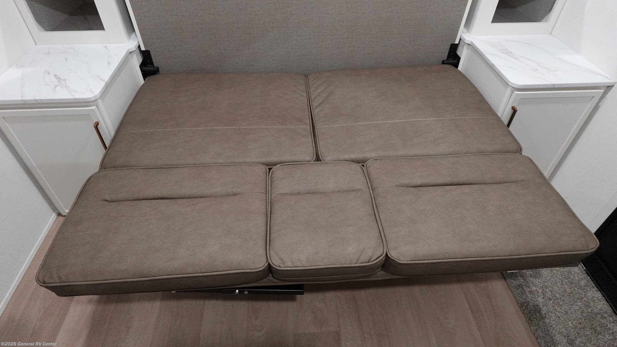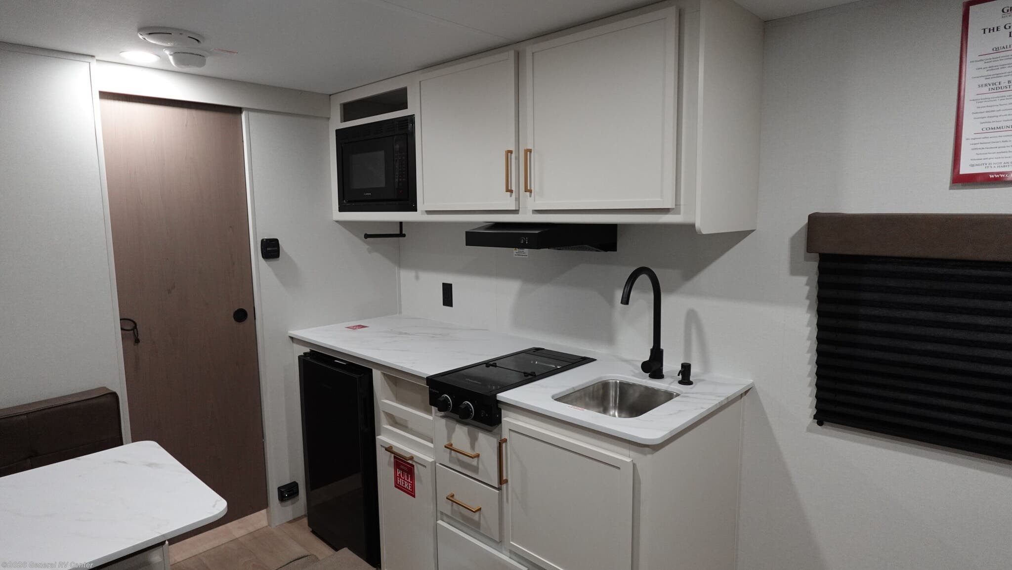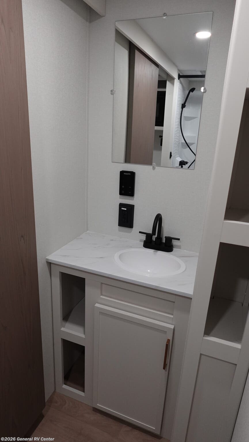 Experience the perfect blend of comfort and versatility with the 2026 Grand Design Transcend-One 151RB. This compact yet spacious travel trailer is designed for those who value both adventure and relaxation. With its 19-foot length, it offers a cozy retreat while being easy to tow. The innovative layout features a 60" x 80" Murphy bed that effortlessly transforms your living area into a restful sleeping space, accommodating up to three guests comfortably. The booth dinette is perfect for meals and game nights, doubling as additional sleeping space if needed. The kitchen is compact yet functional, equipped with a two-burner cooktop and a 3.3 cu ft glass front 12V refrigerator, ensuring you have everything you need to whip up your favorite meals on the road. The bathroom boasts a 24" x 32" standard shower, offering a refreshing start to your day. Enjoy the outdoors under the 10' power awning with Fusion light, perfect for evening relaxation. With 37 gallons of fresh, gray, and black water capacity, this RV is ready for extended adventures. Plus, the pass-thru storage and LP quick connect make it easy to bring along all your gear and set up camp with ease. Discover more at your nearest General RV dealership and start your journey today!