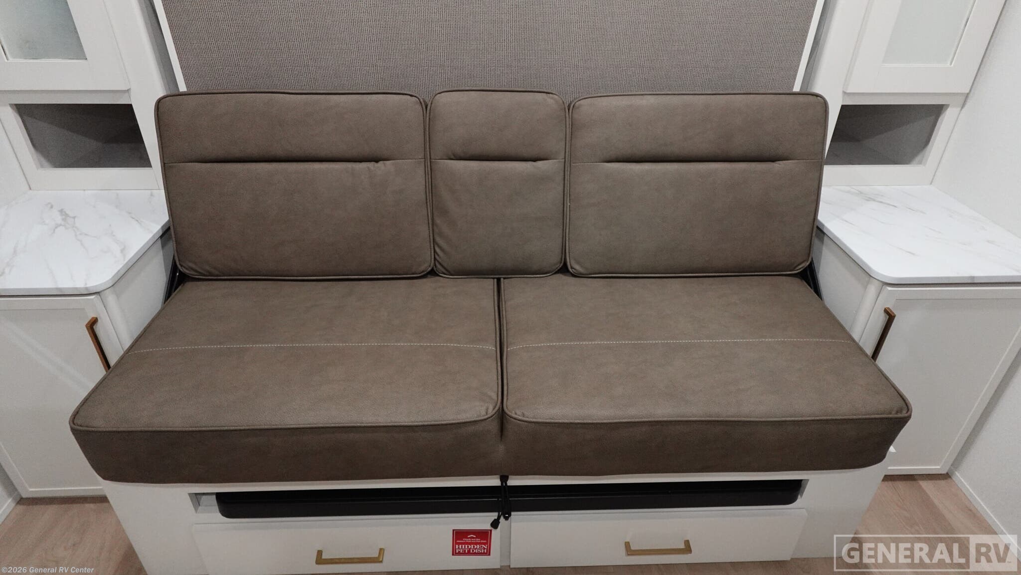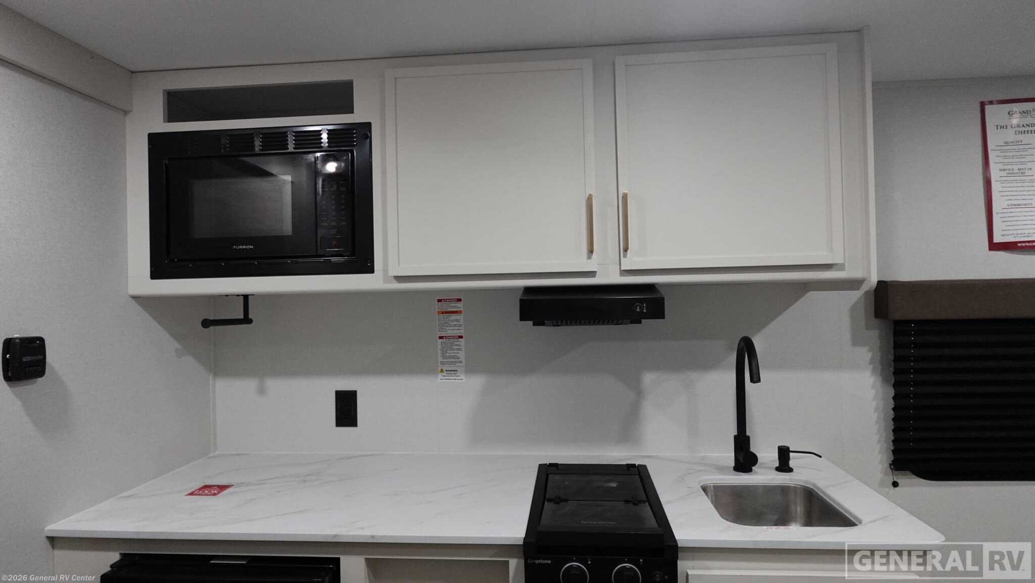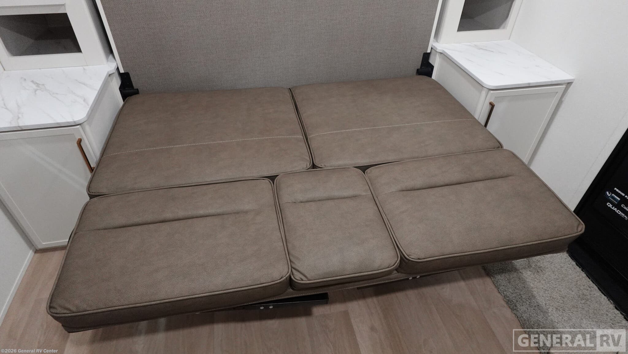 Experience the perfect blend of comfort and versatility with the 2026 Grand Design Transcend-One 151RB. This compact yet spacious travel trailer is designed for those who value both adventure and relaxation. With its 19-foot length, it offers a cozy retreat while being easy to tow. The innovative layout features a 60" x 80" Murphy bed that effortlessly transforms your living area into a restful sleeping space, accommodating up to three guests comfortably. The booth dinette is perfect for meals and game nights, doubling as additional sleeping space if needed. The kitchen is compact yet functional, equipped with a two-burner cooktop and a 3.3 cu ft glass front 12V refrigerator, ensuring you have everything you need to whip up your favorite meals on the road. The bathroom boasts a 24" x 32" standard shower, offering a refreshing start to your day. Enjoy the outdoors under the 10' power awning with Fusion light, perfect for evening relaxation. With 37 gallons of fresh, gray, and black water capacity, this RV is ready for extended adventures. Plus, the pass-thru storage and LP quick connect make it easy to bring along all your gear and set up camp with ease. Discover more at your nearest General RV dealership and start your journey today!