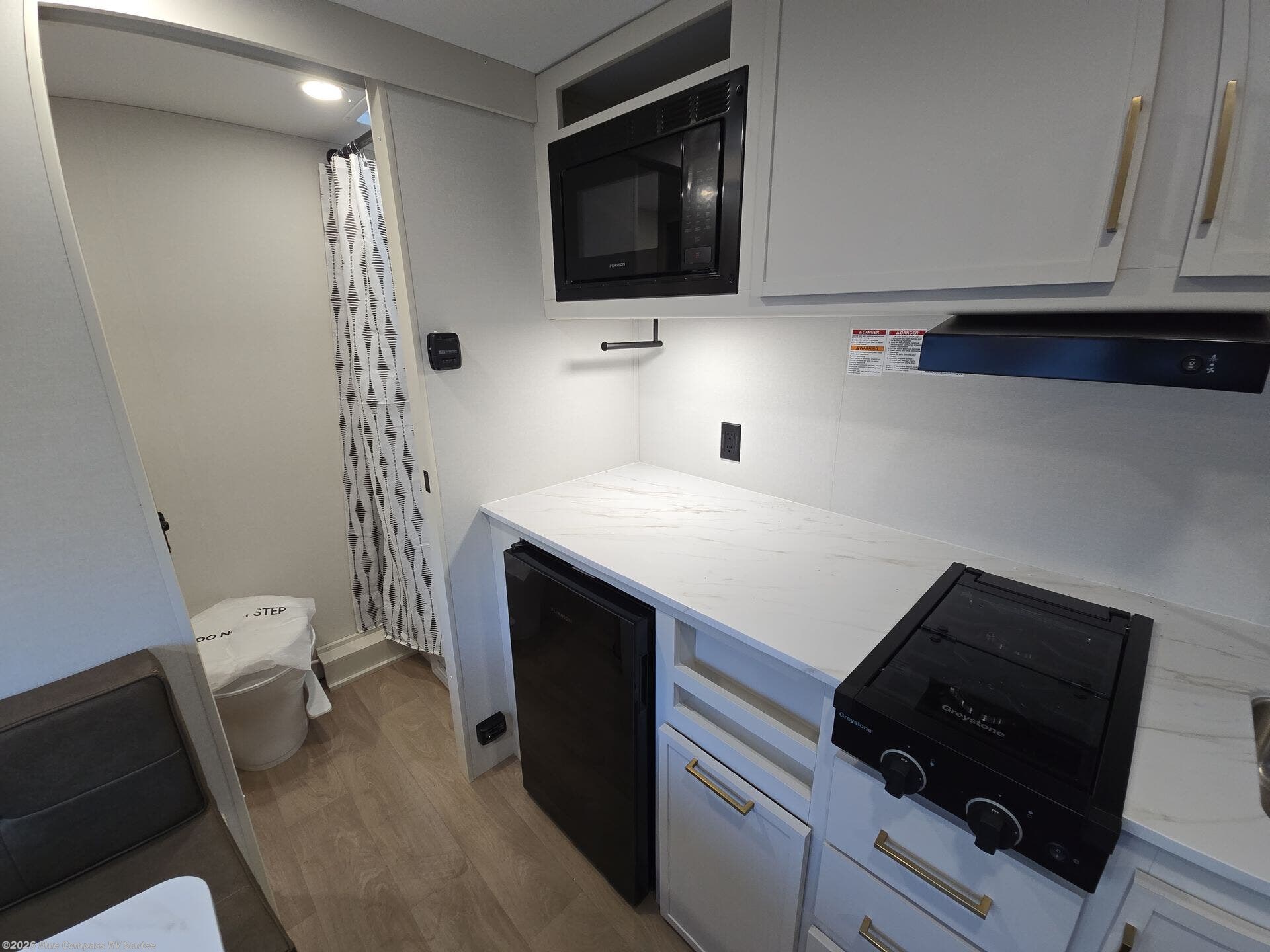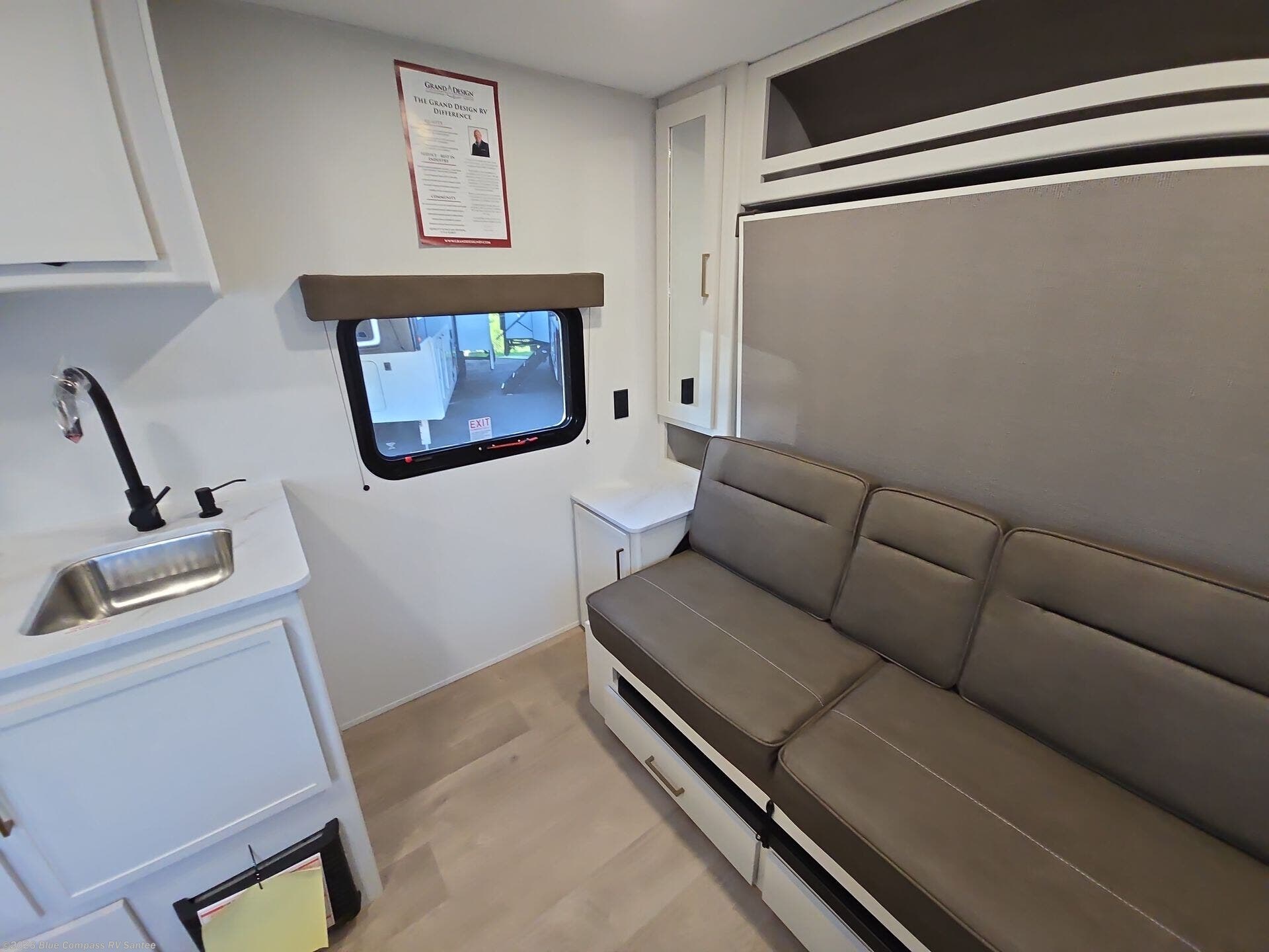 With any Transcend One travel trailer by Grand Design, you will enjoy lightweight towing thanks to their single-axle. There are many interior comforts to make camping easier than ever, such as recessed lighting, residential countertops, and a 6' 6" interior height. Each model is constructed with a heated and enclosed underbelly with suspended tanks, a moisture barrier floor enclosure, and Thermofoil over the roof and front cap for added protection. And a JBL sound system will let you listen to tunes as you visit under the power awning with a Fusion light!