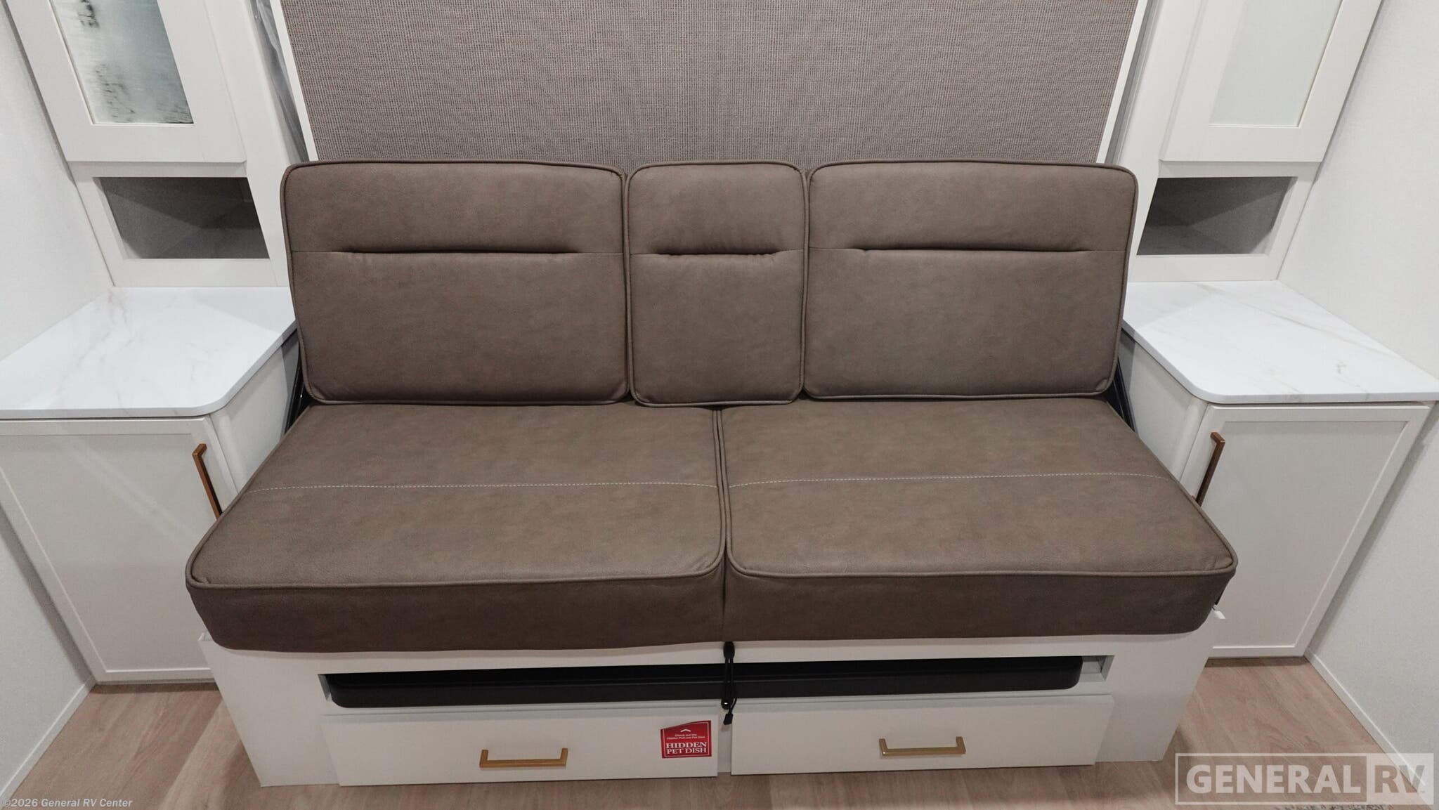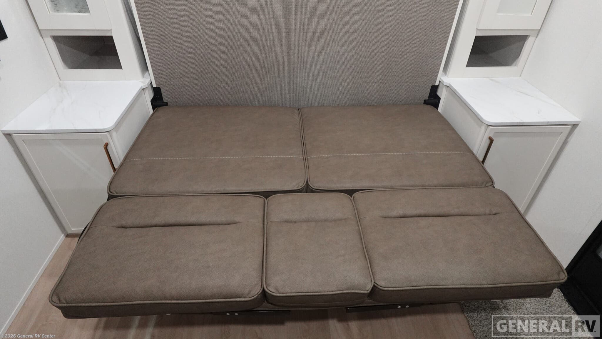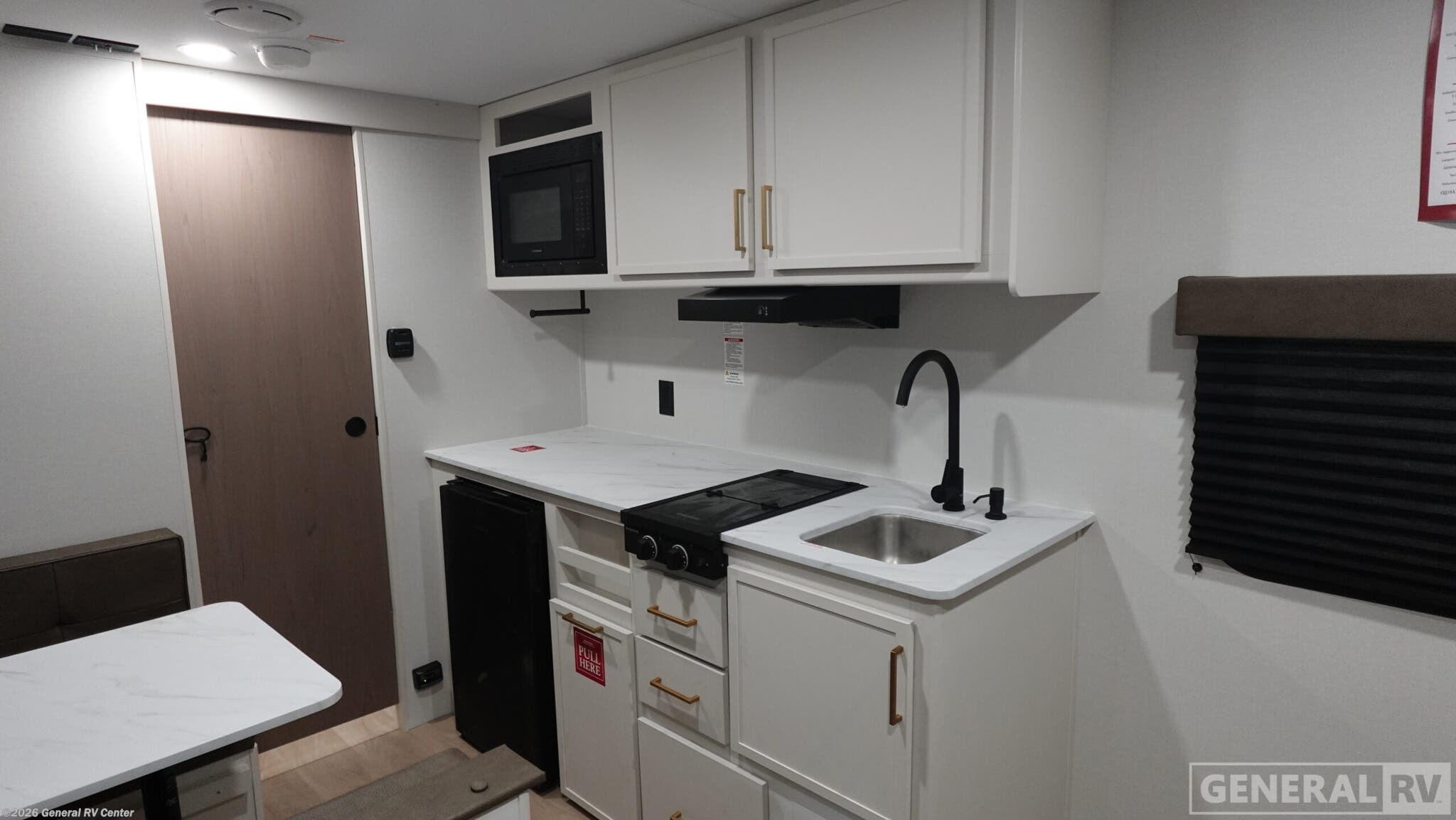 Experience the perfect blend of comfort and versatility with the 2026 Grand Design Transcend-One 151RB. This compact yet spacious travel trailer is designed for those who value both adventure and relaxation. With its 19-foot length, it offers a cozy retreat while being easy to tow. The innovative layout features a 60" x 80" Murphy bed that effortlessly transforms your living area into a restful sleeping space, accommodating up to three guests comfortably. The booth dinette is perfect for meals and game nights, doubling as additional sleeping space if needed. The kitchen is compact yet functional, equipped with a two-burner cooktop and a 3.3 cu ft glass front 12V refrigerator, ensuring you have everything you need to whip up your favorite meals on the road. The bathroom boasts a 24" x 32" standard shower, offering a refreshing start to your day. Enjoy the outdoors under the 10' power awning with Fusion light, perfect for evening relaxation. With 37 gallons of fresh, gray, and black water capacity, this RV is ready for extended adventures. Plus, the pass-thru storage and LP quick connect make it easy to bring along all your gear and set up camp with ease. Discover more at your nearest General RV dealership and start your journey today!