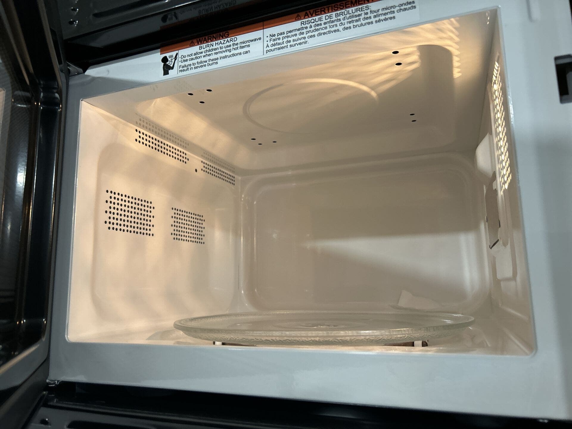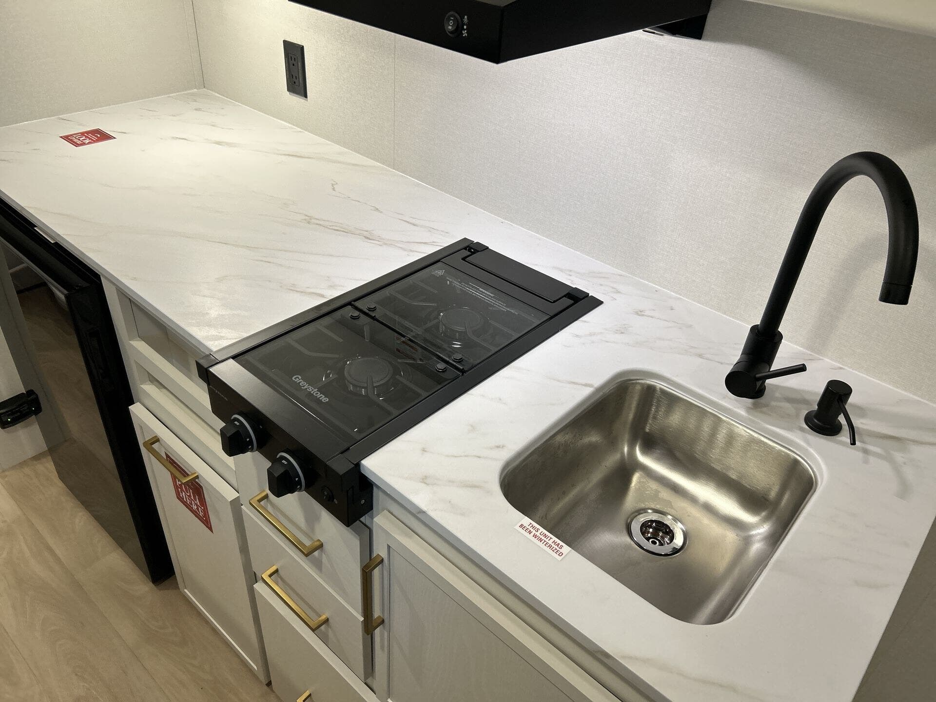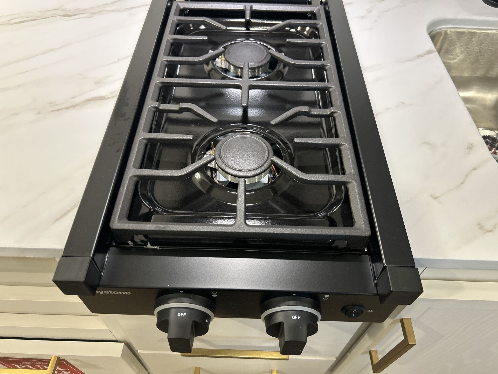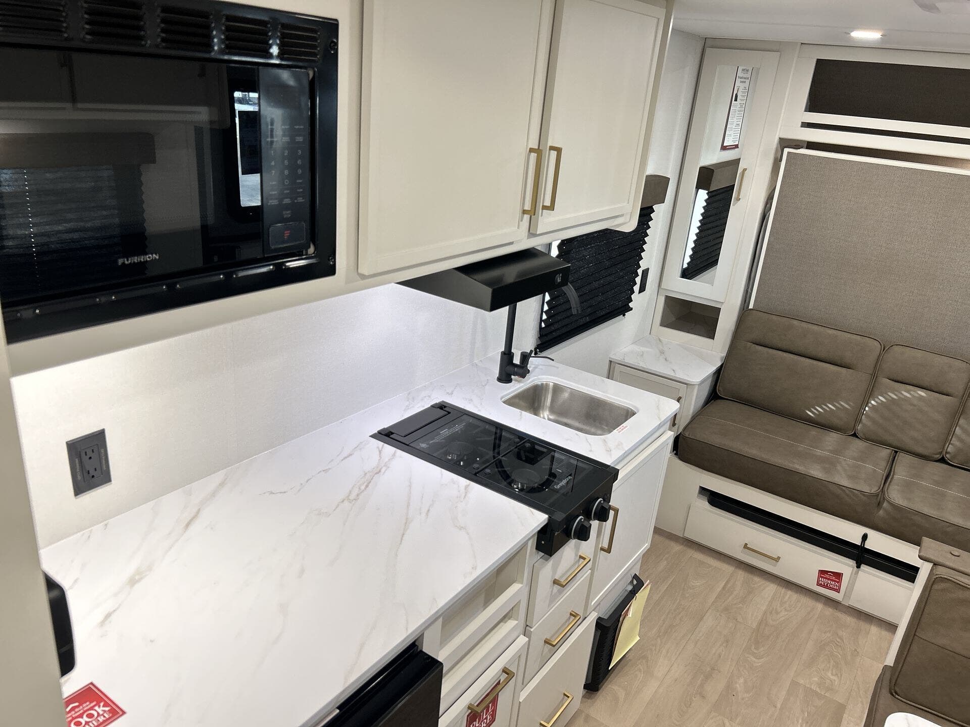 - Convection microwave, refrigerator, and stove top burner for versatile cooking