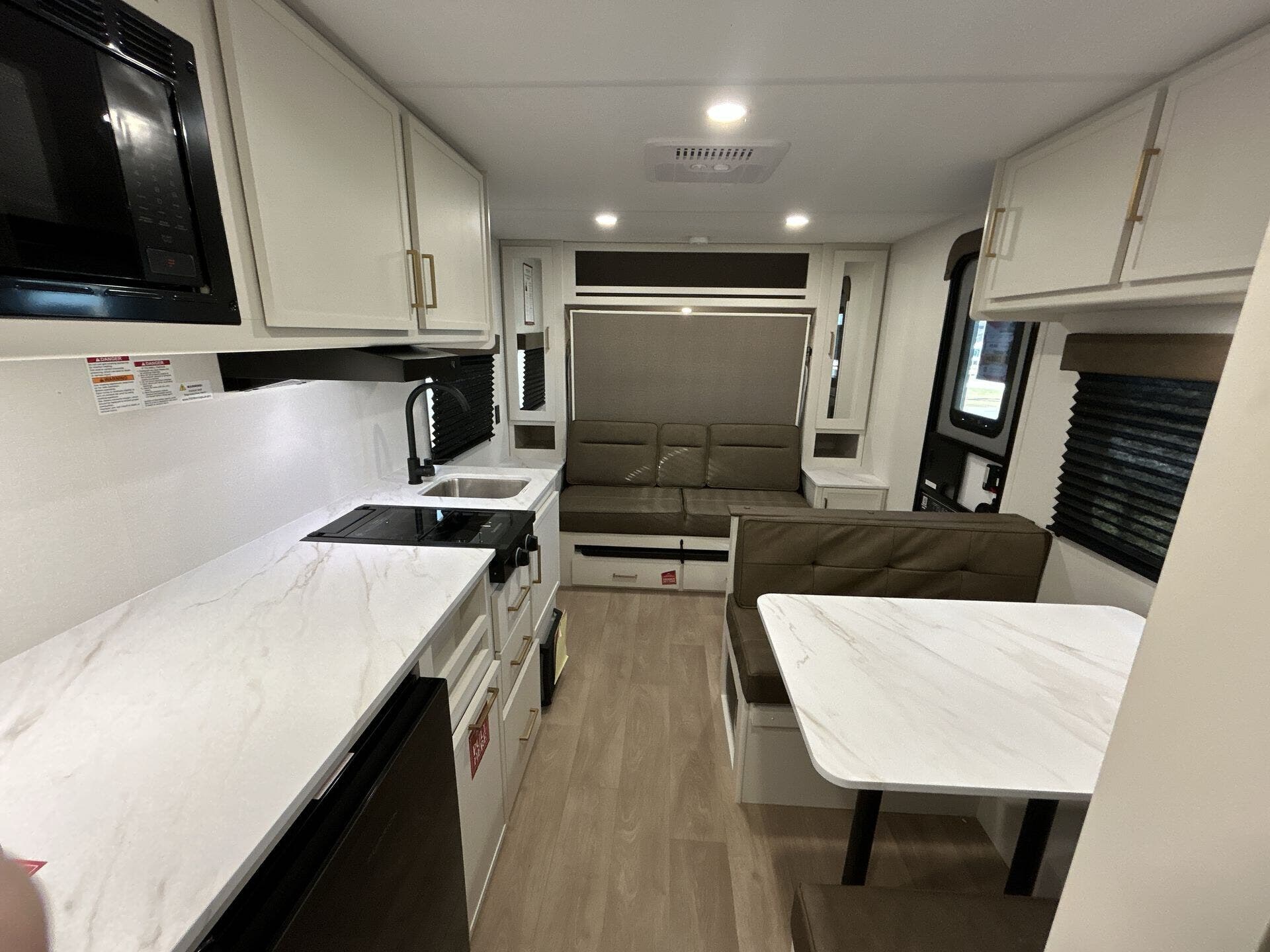 The 151RB features a smart Front Bedroom, Mid Kitchen, and Rear Bath configuration—ideal for couples and small families. With no slideouts, the floor plan remains straightforward to tow and easy to maneuver, while delivering a welcoming living space. A queen bed ensures restful nights, and the compact yet well-appointed kitchen keeps meal prep within reach for everyday use.