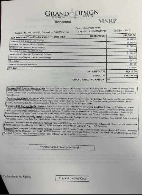 Request More Info on this 2026 Grand Design Transcend One 151RB Offered for sale by McClain's Longhorn RV