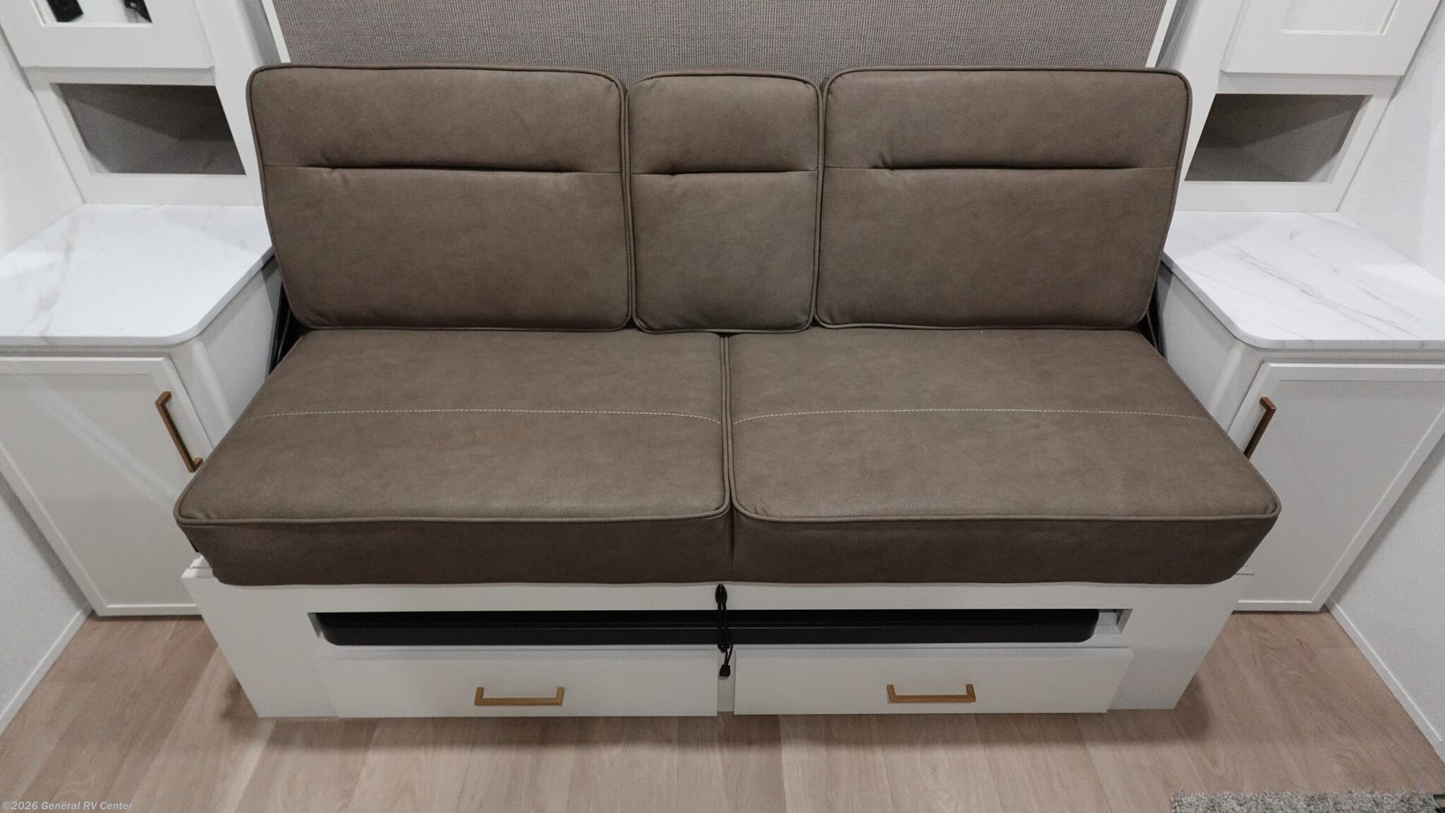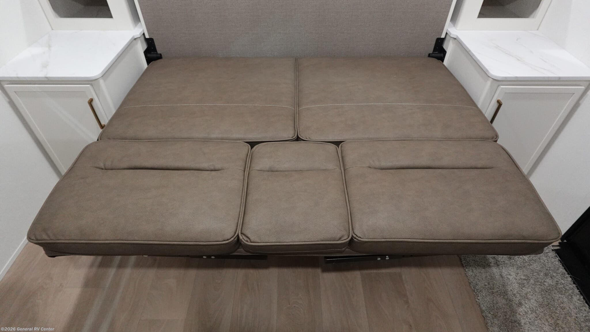 Experience the perfect blend of comfort and versatility with the 2026 Grand Design Transcend-One 151RB. This compact yet spacious travel trailer is designed for those who value both adventure and relaxation. With its 19-foot length, it offers a cozy retreat while being easy to tow. The innovative layout features a 60" x 80" Murphy bed that effortlessly transforms your living area into a restful sleeping space, accommodating up to three guests comfortably. The booth dinette is perfect for meals and game nights, doubling as additional sleeping space if needed. The kitchen is compact yet functional, equipped with a two-burner cooktop and a 3.3 cu ft glass front 12V refrigerator, ensuring you have everything you need to whip up your favorite meals on the road. The bathroom boasts a 24" x 32" standard shower, offering a refreshing start to your day. Enjoy the outdoors under the 10' power awning with Fusion light, perfect for evening relaxation. With 37 gallons of fresh, gray, and black water capacity, this RV is ready for extended adventures. Plus, the pass-thru storage and LP quick connect make it easy to bring along all your gear and set up camp with ease. Discover more at your nearest General RV dealership and start your journey today!