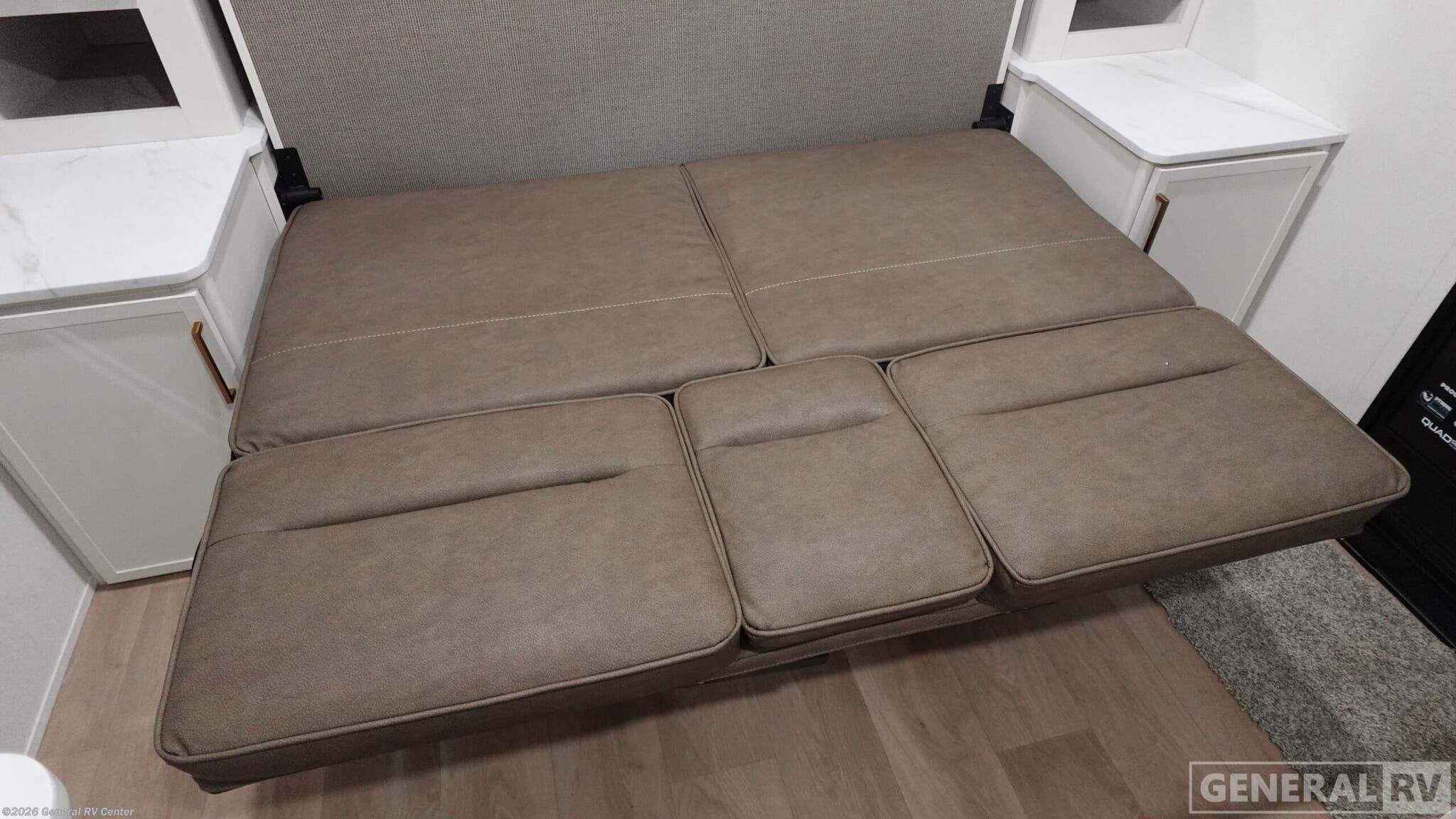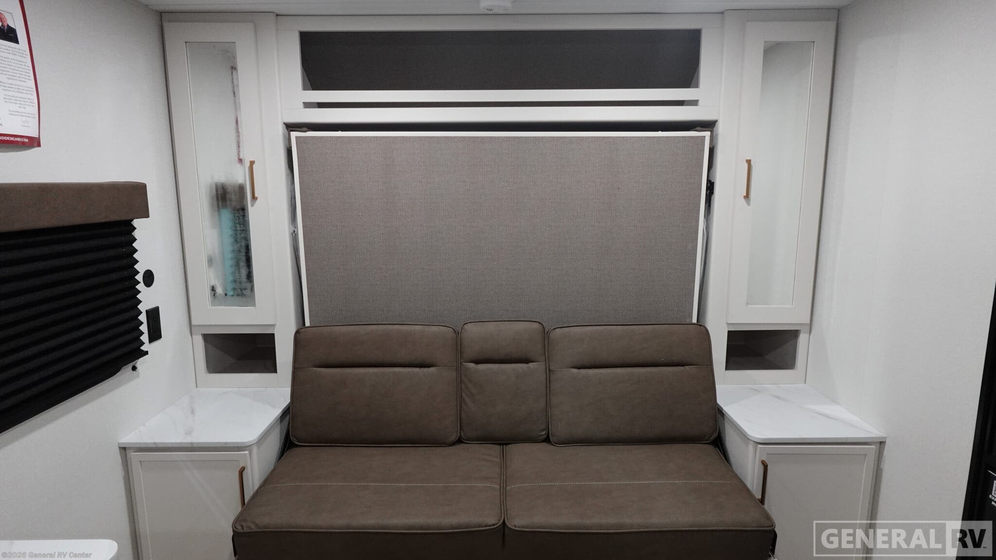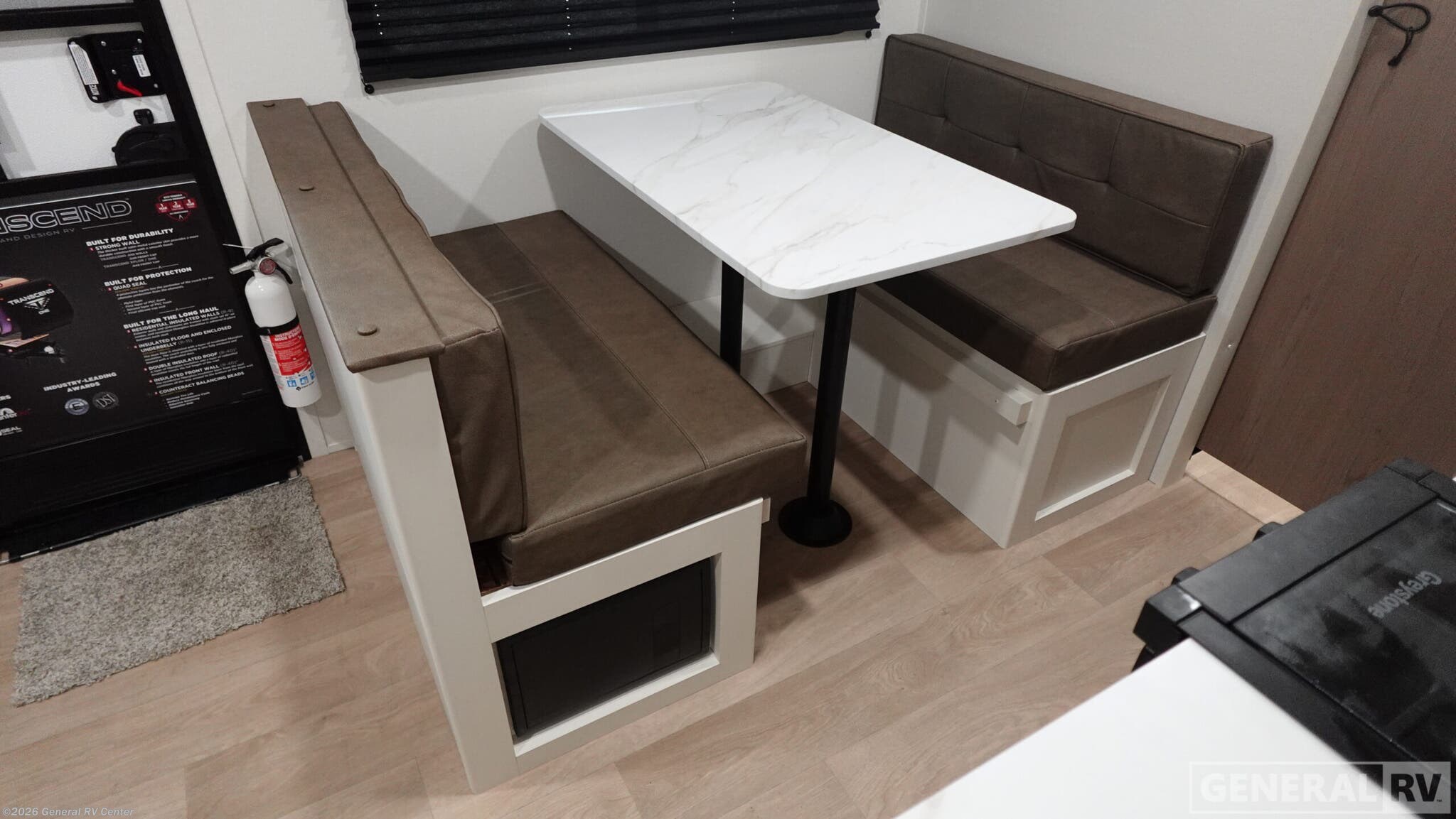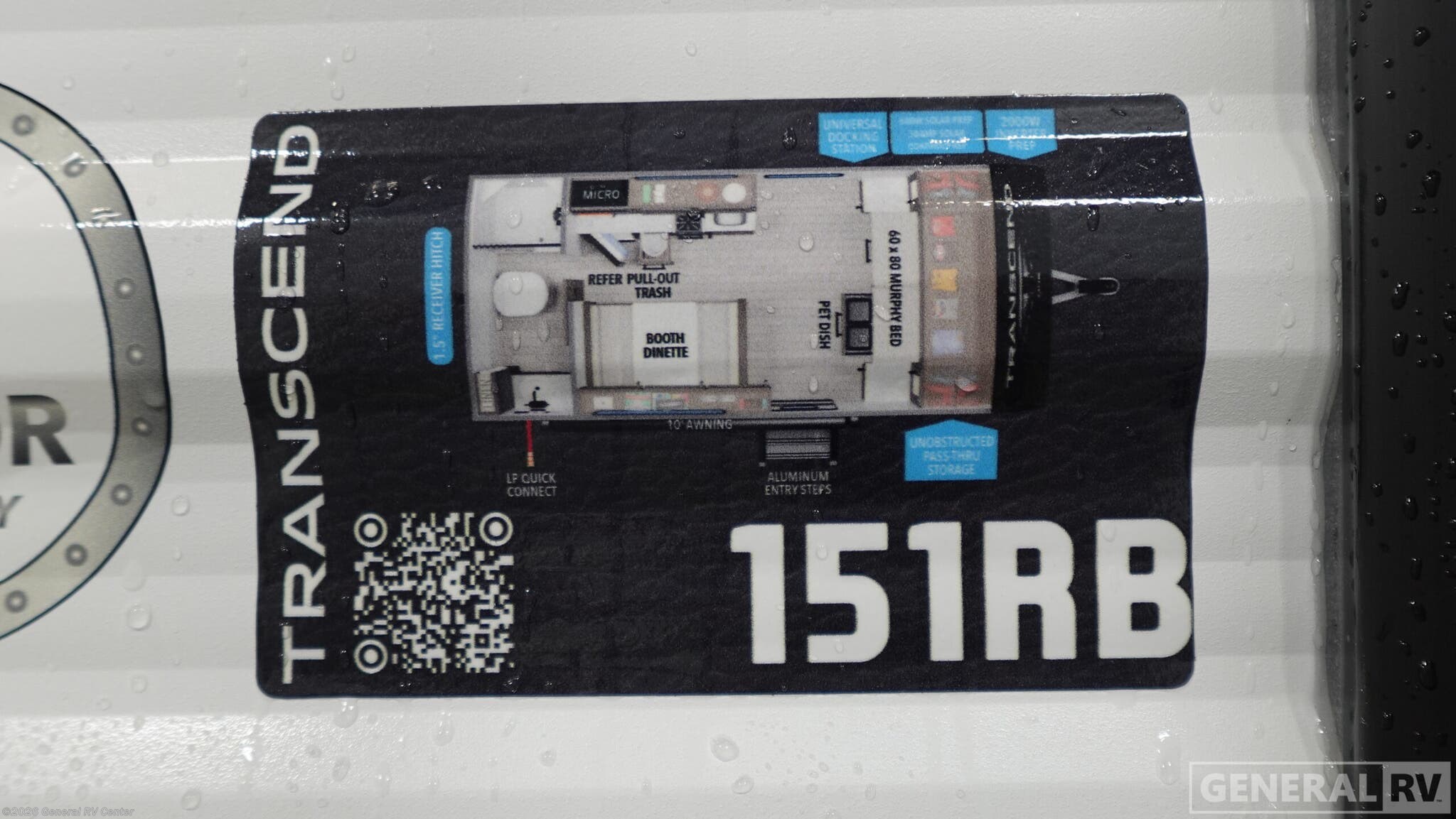 Experience the perfect blend of comfort and versatility with the 2026 Grand Design Transcend-One 151RB. This compact yet spacious travel trailer is designed for those who value both adventure and relaxation. With its 19-foot length, it offers a cozy retreat while being easy to tow. The innovative layout features a 60" x 80" Murphy bed that effortlessly transforms your living area into a restful sleeping space, accommodating up to three guests comfortably. The booth dinette is perfect for meals and game nights, doubling as additional sleeping space if needed. The kitchen is compact yet functional, equipped with a two-burner cooktop and a 3.3 cu ft glass front 12V refrigerator, ensuring you have everything you need to whip up your favorite meals on the road. The bathroom boasts a 24" x 32" standard shower, offering a refreshing start to your day. Enjoy the outdoors under the 10' power awning with Fusion light, perfect for evening relaxation. With 37 gallons of fresh, gray, and black water capacity, this RV is ready for extended adventures. Plus, the pass-thru storage and LP quick connect make it easy to bring along all your gear and set up camp with ease. Discover more at your nearest General RV dealership and start your journey today!