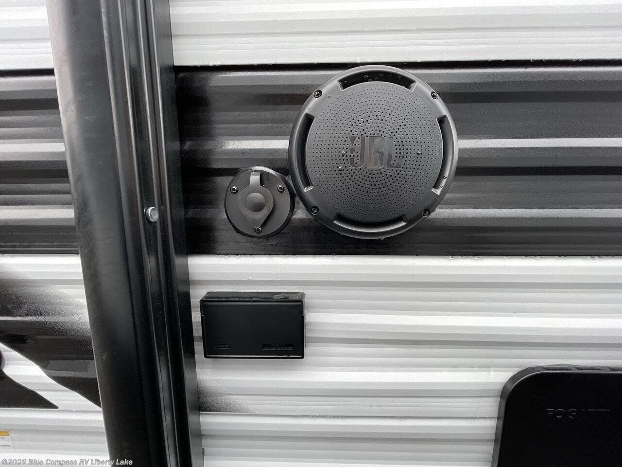 With any Transcend One travel trailer by Grand Design, you will enjoy lightweight towing thanks to their single-axle. There are many interior comforts to make camping easier than ever, such as recessed lighting, residential countertops, and a 6' 6" interior height. Each model is constructed with a heated and enclosed underbelly with suspended tanks, a moisture barrier floor enclosure, and Thermofoil over the roof and front cap for added protection. And a JBL sound system will let you listen to tunes as you visit under the power awning with a Fusion light!