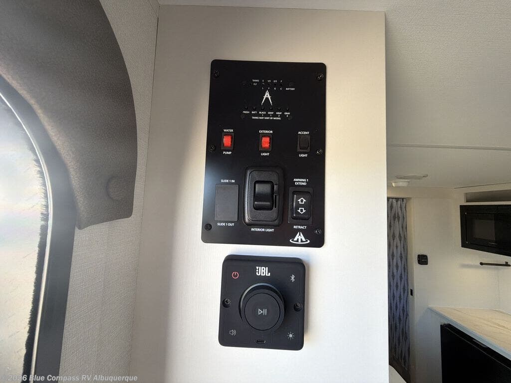 With any Transcend One travel trailer by Grand Design, you will enjoy lightweight towing thanks to their single-axle. There are many interior comforts to make camping easier than ever, such as recessed lighting, residential countertops, and a 6' 6" interior height. Each model is constructed with a heated and enclosed underbelly with suspended tanks, a moisture barrier floor enclosure, and Thermofoil over the roof and front cap for added protection. And a JBL sound system will let you listen to tunes as you visit under the power awning with a Fusion light!