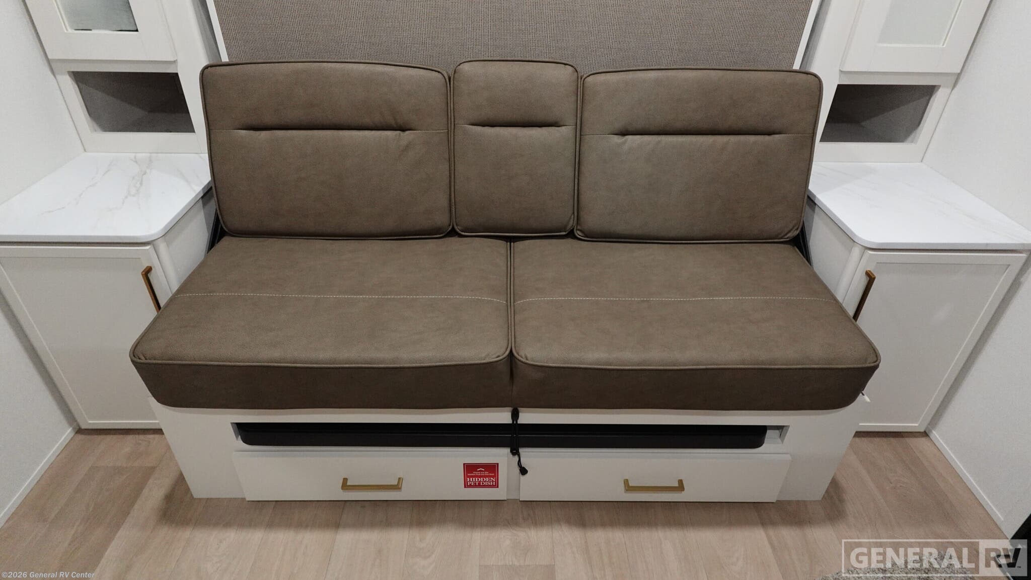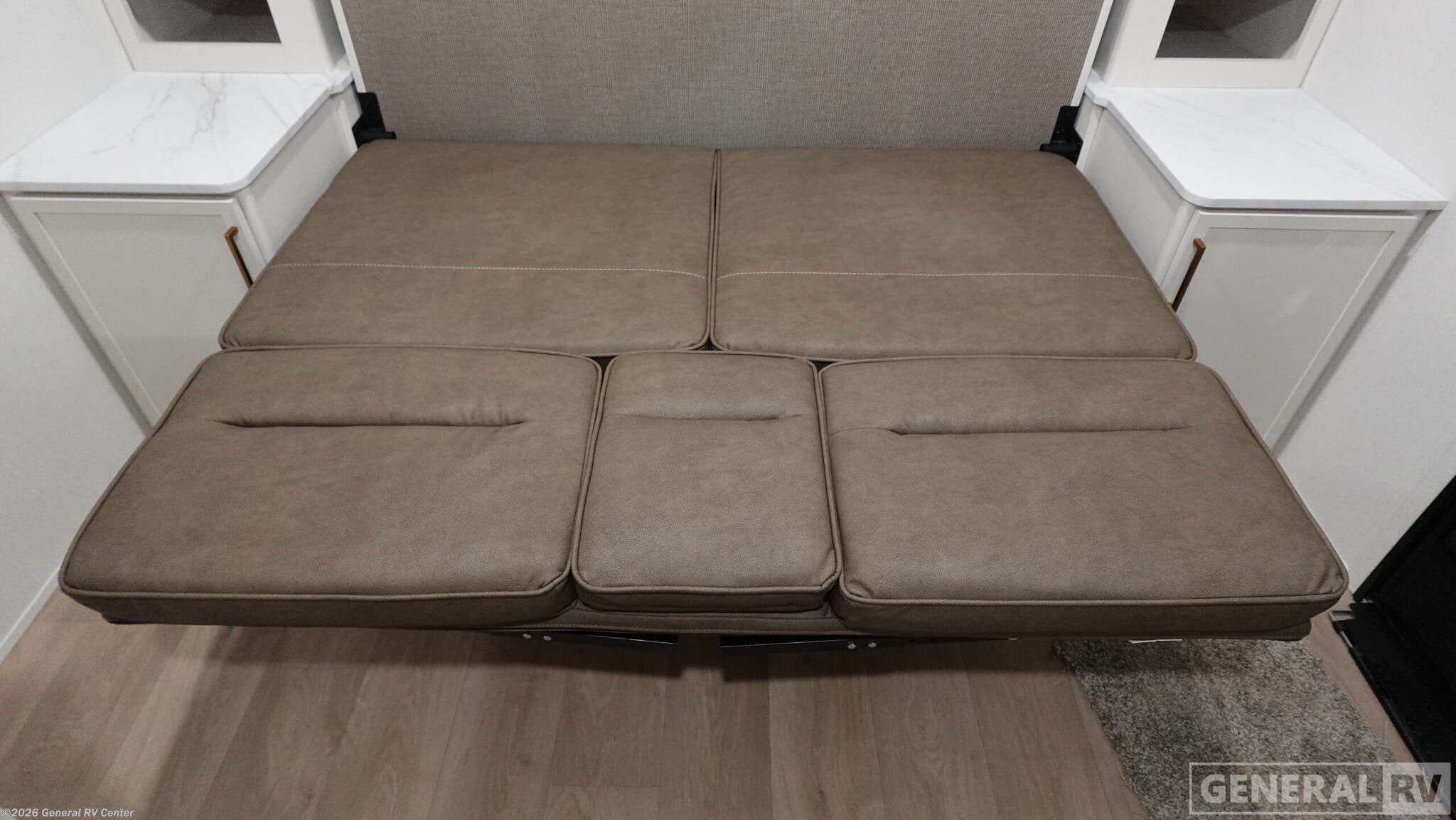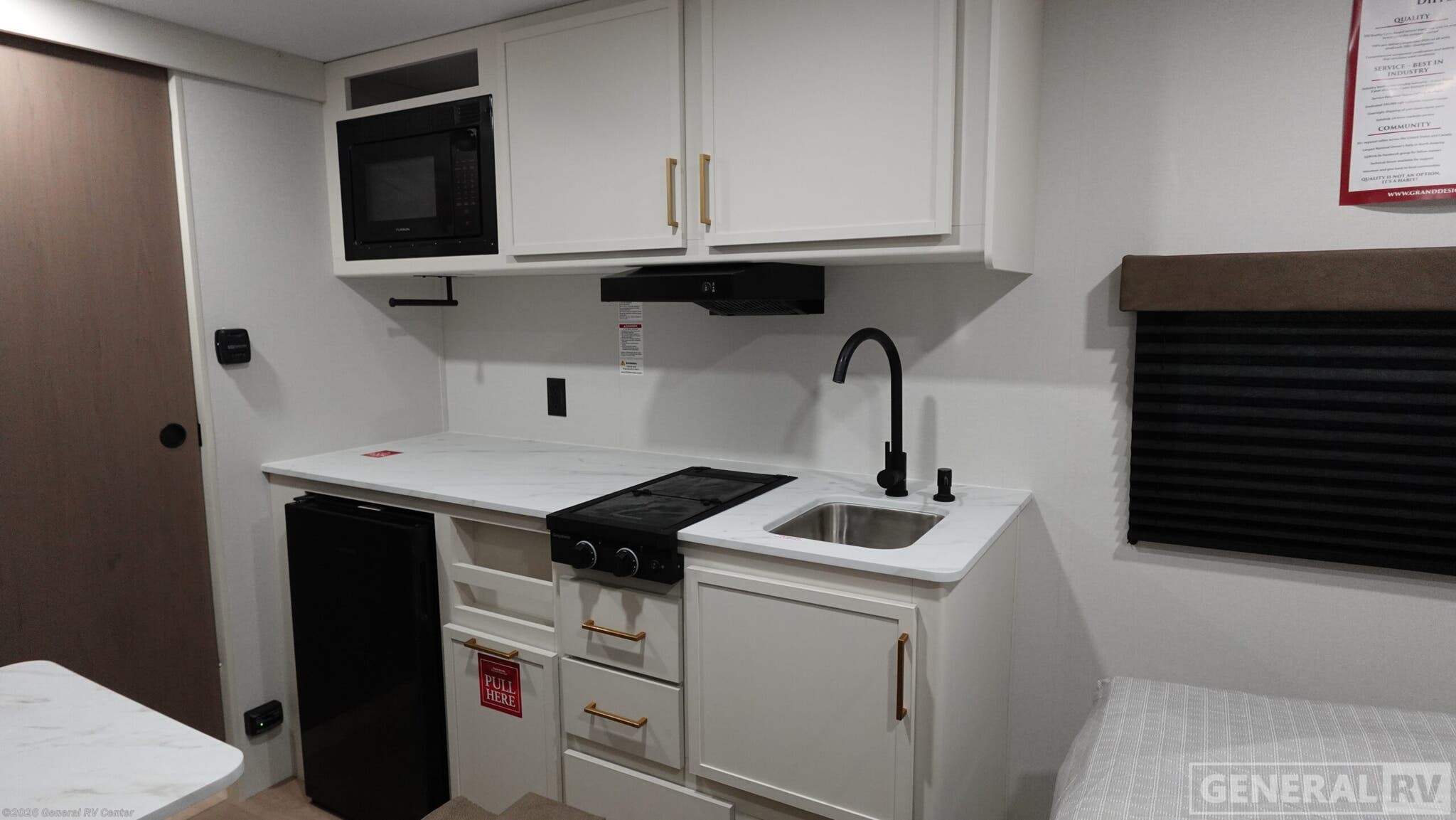 Experience the perfect blend of comfort and versatility with the 2026 Grand Design Transcend-One 151RB. This compact yet spacious travel trailer is designed for those who value both adventure and relaxation. With its 19-foot length, it offers a cozy retreat while being easy to tow. The innovative layout features a 60" x 80" Murphy bed that effortlessly transforms your living area into a restful sleeping space, accommodating up to three guests comfortably. The booth dinette is perfect for meals and game nights, doubling as additional sleeping space if needed. The kitchen is compact yet functional, equipped with a two-burner cooktop and a 3.3 cu ft glass front 12V refrigerator, ensuring you have everything you need to whip up your favorite meals on the road. The bathroom boasts a 24" x 32" standard shower, offering a refreshing start to your day. Enjoy the outdoors under the 10' power awning with Fusion light, perfect for evening relaxation. With 37 gallons of fresh, gray, and black water capacity, this RV is ready for extended adventures. Plus, the pass-thru storage and LP quick connect make it easy to bring along all your gear and set up camp with ease. Discover more at your nearest General RV dealership and start your journey today!