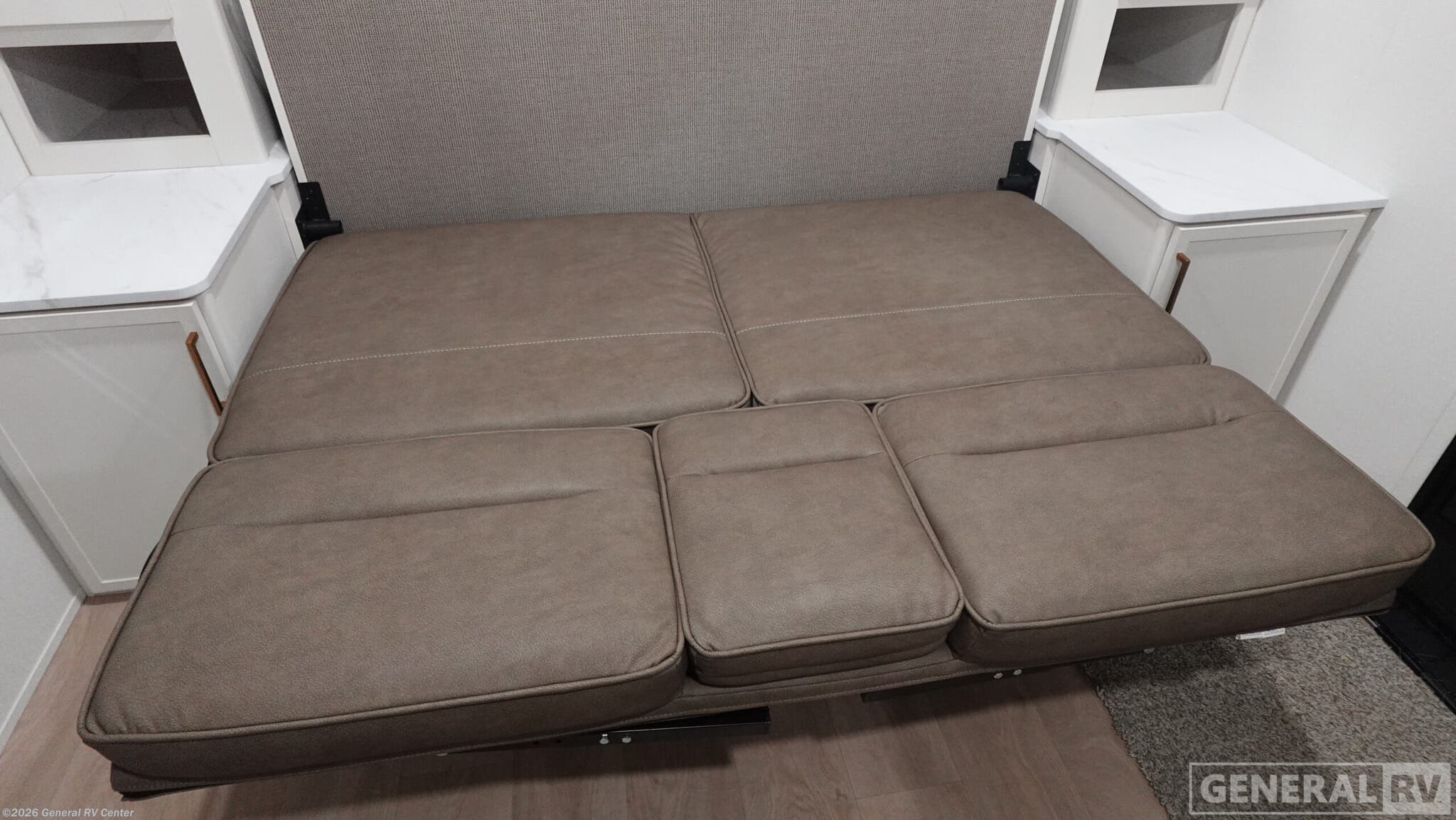 Experience the perfect blend of comfort and versatility with the 2026 Grand Design Transcend-One 151RB. This compact yet spacious travel trailer is designed for those who value both adventure and relaxation. With its 19-foot length, it offers a cozy retreat while being easy to tow. The innovative layout features a 60" x 80" Murphy bed that effortlessly transforms your living area into a restful sleeping space, accommodating up to three guests comfortably. The booth dinette is perfect for meals and game nights, doubling as additional sleeping space if needed. The kitchen is compact yet functional, equipped with a two-burner cooktop and a 3.3 cu ft glass front 12V refrigerator, ensuring you have everything you need to whip up your favorite meals on the road. The bathroom boasts a 24" x 32" standard shower, offering a refreshing start to your day. Enjoy the outdoors under the 10' power awning with Fusion light, perfect for evening relaxation. With 37 gallons of fresh, gray, and black water capacity, this RV is ready for extended adventures. Plus, the pass-thru storage and LP quick connect make it easy to bring along all your gear and set up camp with ease. Discover more at your nearest General RV dealership and start your journey today!