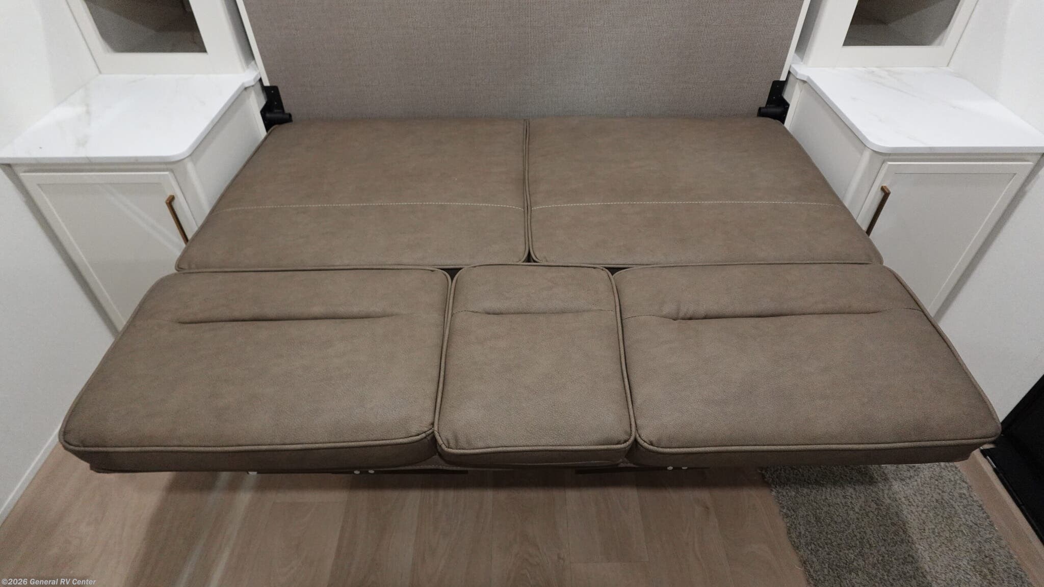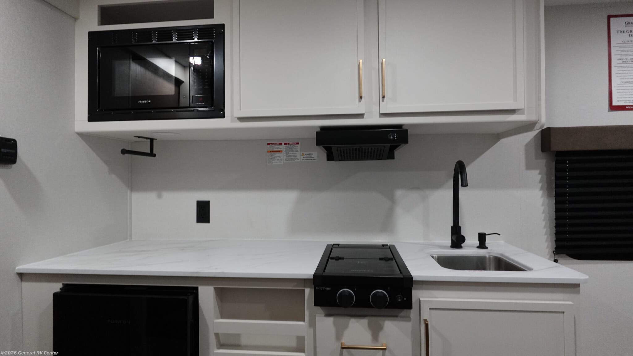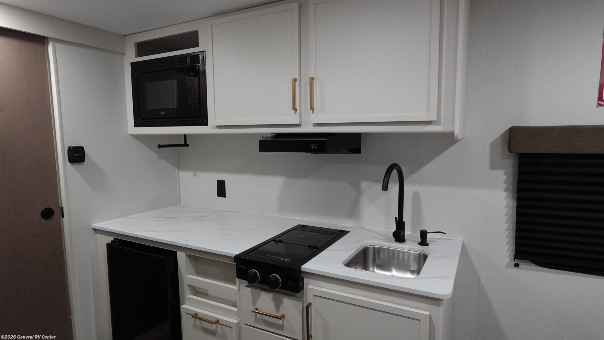 Experience the perfect blend of comfort and versatility with the 2026 Grand Design Transcend-One 151RB. This compact yet spacious travel trailer is designed for those who value both adventure and relaxation. With its 19-foot length, it offers a cozy retreat while being easy to tow. The innovative layout features a 60" x 80" Murphy bed that effortlessly transforms your living area into a restful sleeping space, accommodating up to three guests comfortably. The booth dinette is perfect for meals and game nights, doubling as additional sleeping space if needed. The kitchen is compact yet functional, equipped with a two-burner cooktop and a 3.3 cu ft glass front 12V refrigerator, ensuring you have everything you need to whip up your favorite meals on the road. The bathroom boasts a 24" x 32" standard shower, offering a refreshing start to your day. Enjoy the outdoors under the 10' power awning with Fusion light, perfect for evening relaxation. With 37 gallons of fresh, gray, and black water capacity, this RV is ready for extended adventures. Plus, the pass-thru storage and LP quick connect make it easy to bring along all your gear and set up camp with ease. Discover more at your nearest General RV dealership and start your journey today!
