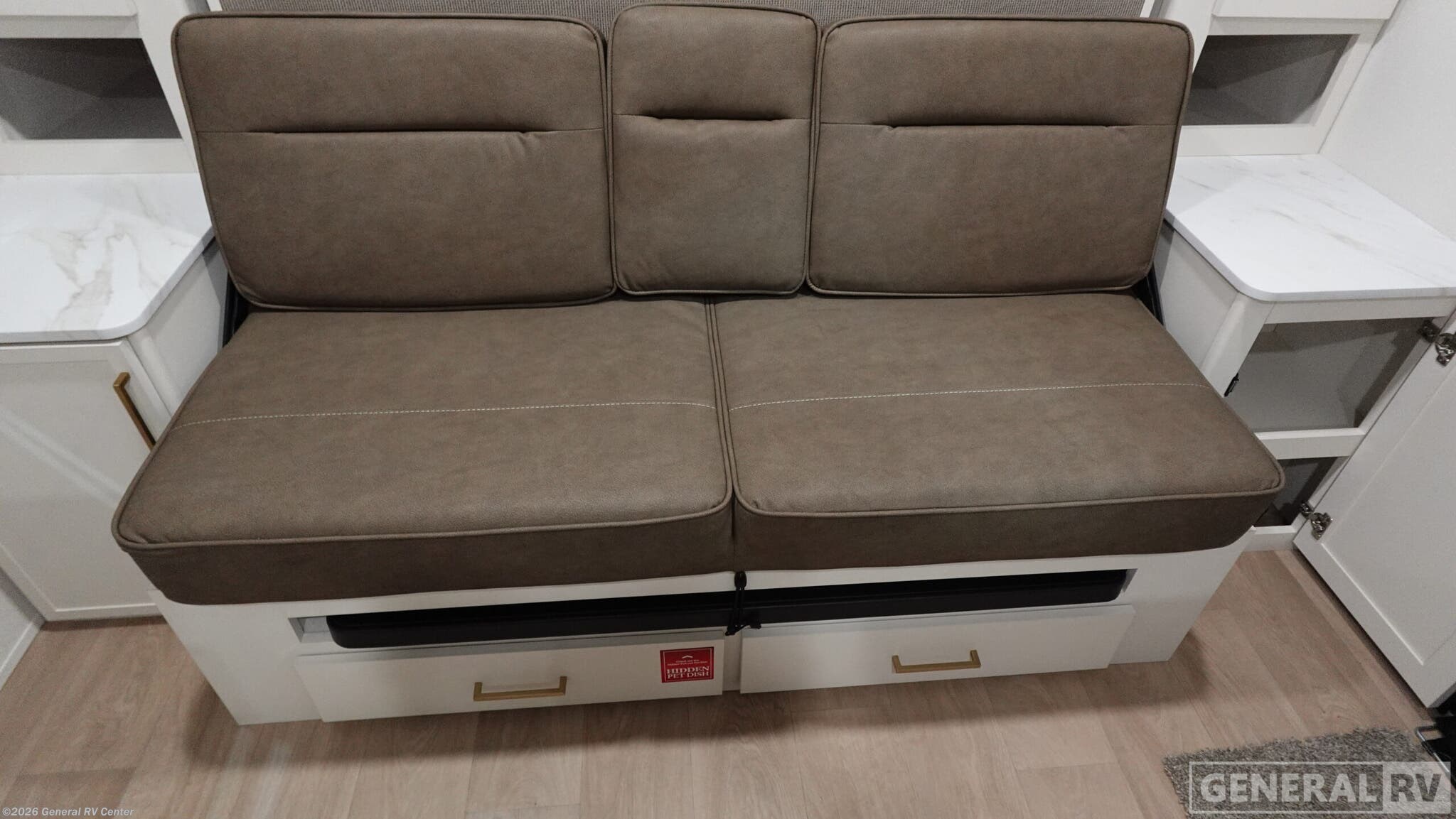 Experience the perfect blend of comfort and versatility with the 2026 Grand Design Transcend-One 151RB. This compact yet spacious travel trailer is designed for those who value both adventure and relaxation. With its 19-foot length, it offers a cozy retreat while being easy to tow. The innovative layout features a 60" x 80" Murphy bed that effortlessly transforms your living area into a restful sleeping space, accommodating up to three guests comfortably. The booth dinette is perfect for meals and game nights, doubling as additional sleeping space if needed. The kitchen is compact yet functional, equipped with a two-burner cooktop and a 3.3 cu ft glass front 12V refrigerator, ensuring you have everything you need to whip up your favorite meals on the road. The bathroom boasts a 24" x 32" standard shower, offering a refreshing start to your day. Enjoy the outdoors under the 10' power awning with Fusion light, perfect for evening relaxation. With 37 gallons of fresh, gray, and black water capacity, this RV is ready for extended adventures. Plus, the pass-thru storage and LP quick connect make it easy to bring along all your gear and set up camp with ease. Discover more at your nearest General RV dealership and start your journey today!