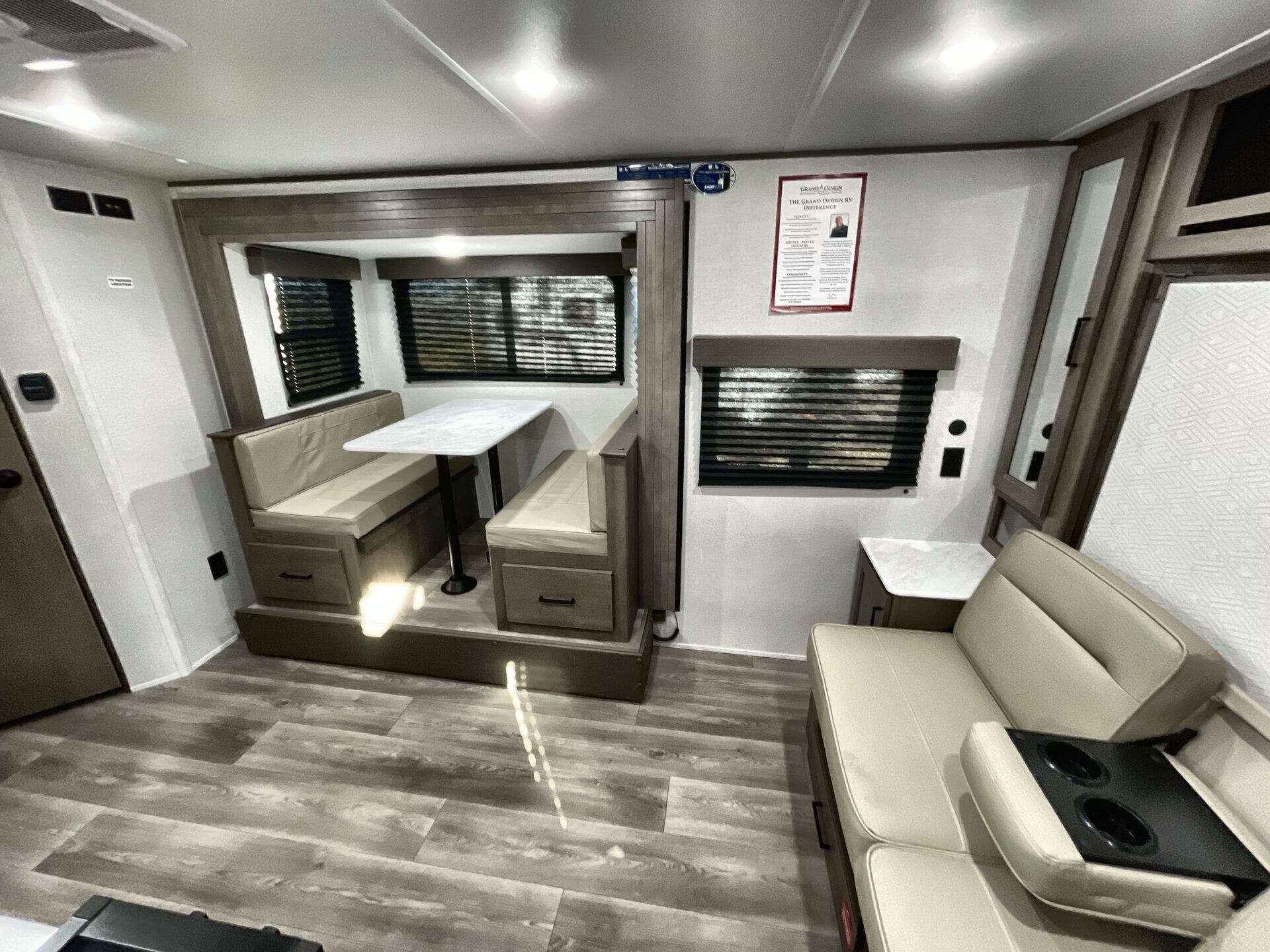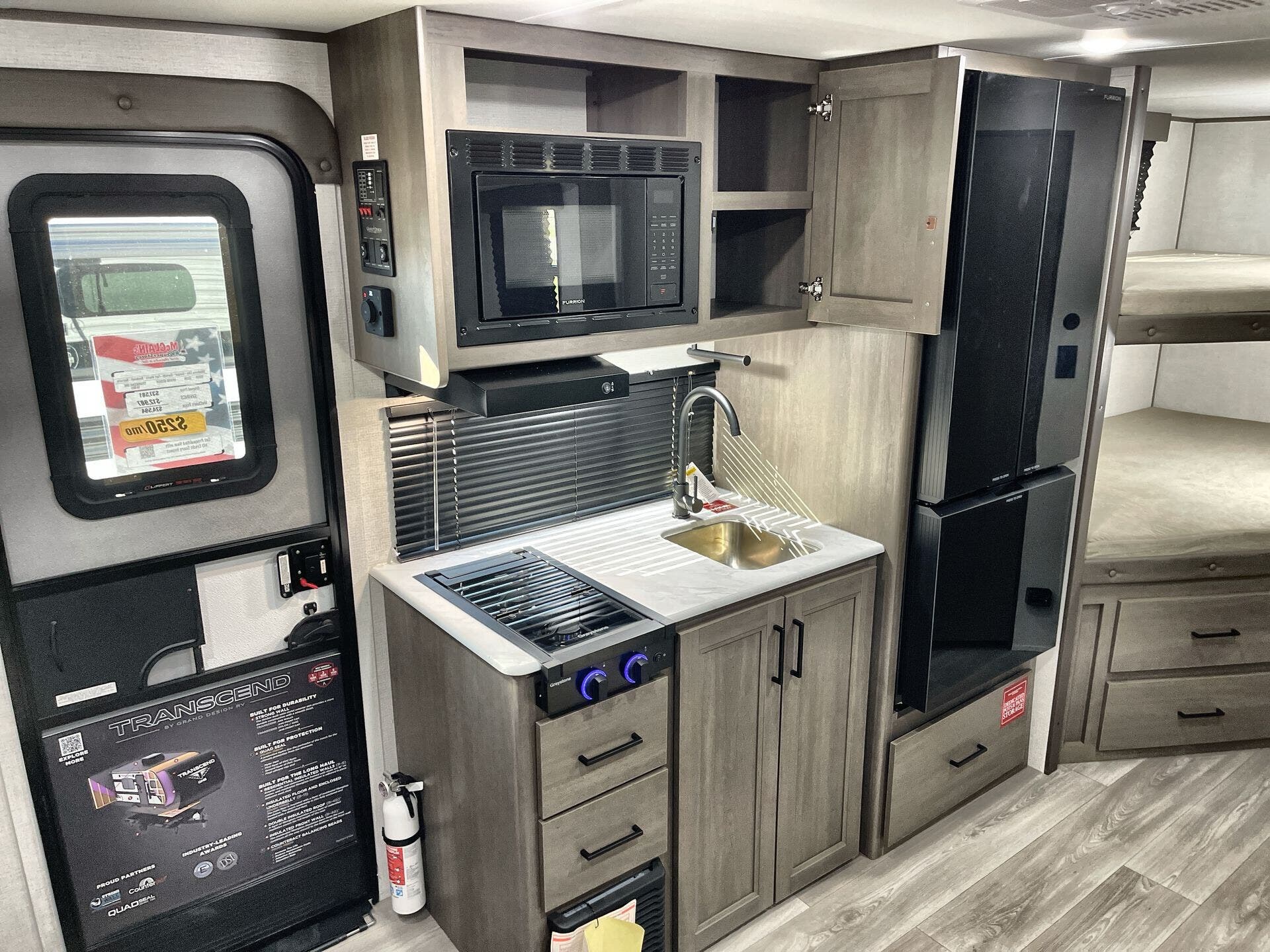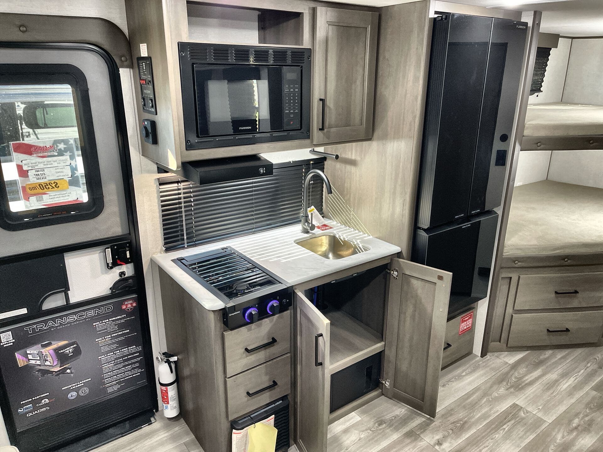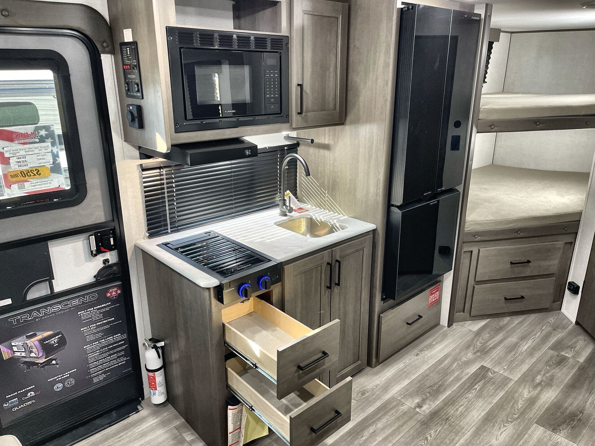This Grand Design travel trailer blends value with dependable build quality, making it an appealing choice for both new RVers and seasoned campers. Its single-slide layout expands the living area without adding excess length, while the 37/37/74-gallon water system supports comfortable camping experiences. The 13,500 BTU air conditioner keeps interiors cool during hot weekends, and the robust hitch setup ensures confident towing behind a wide range of vehicles. With features like a backup camera, power awning, and enclosed underbelly, the Transcend One delivers convenience, reliability, and long-term value in a compact, family-friendly package.