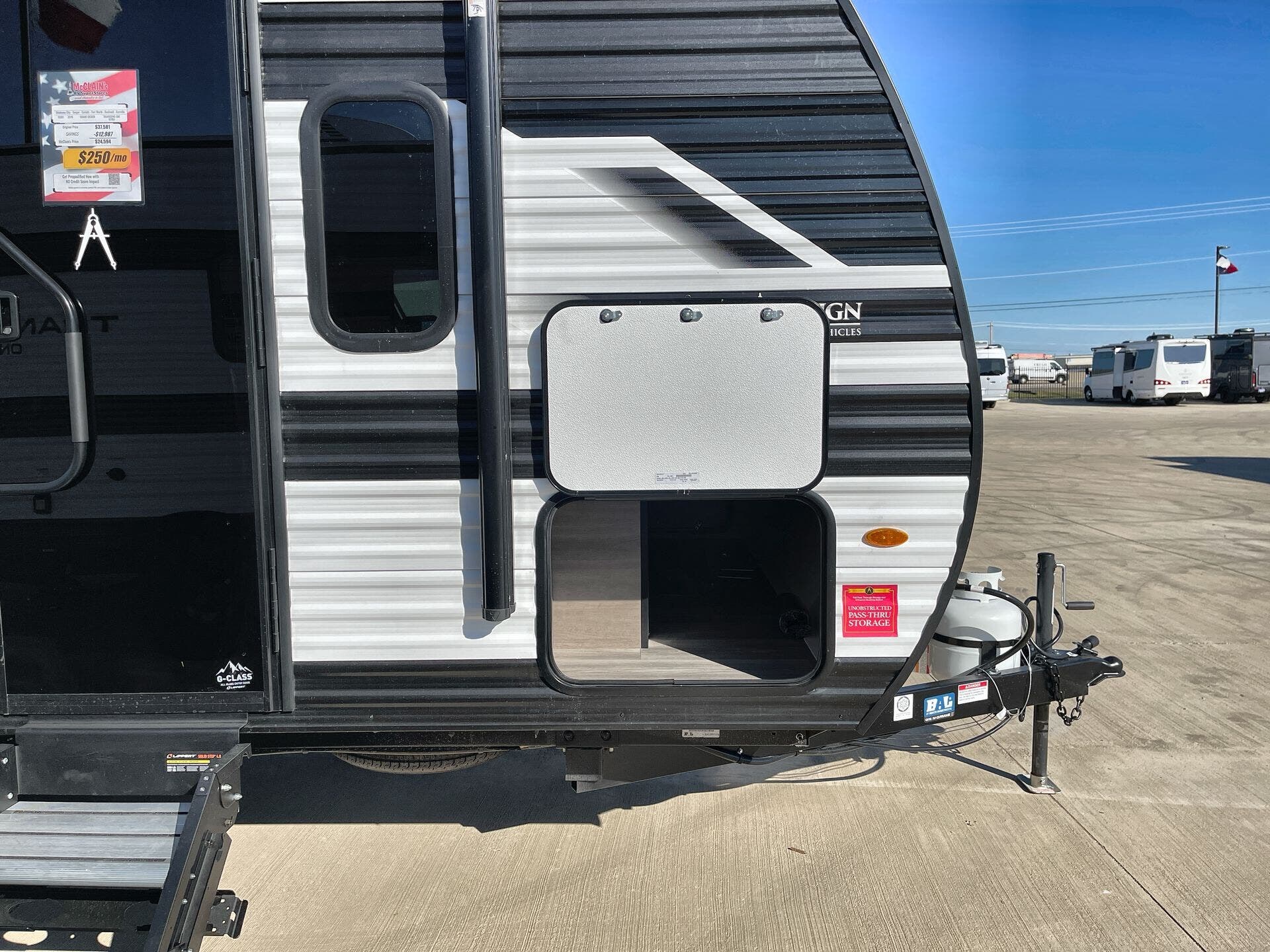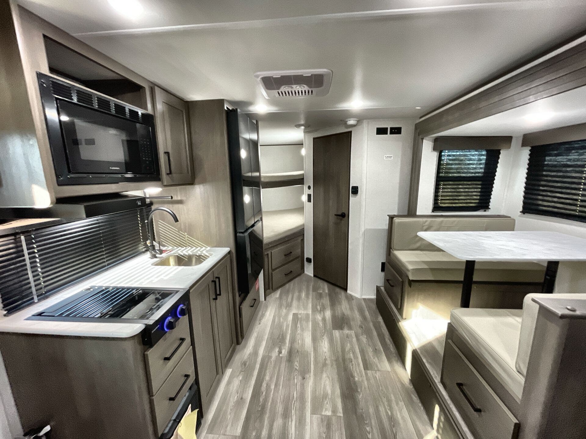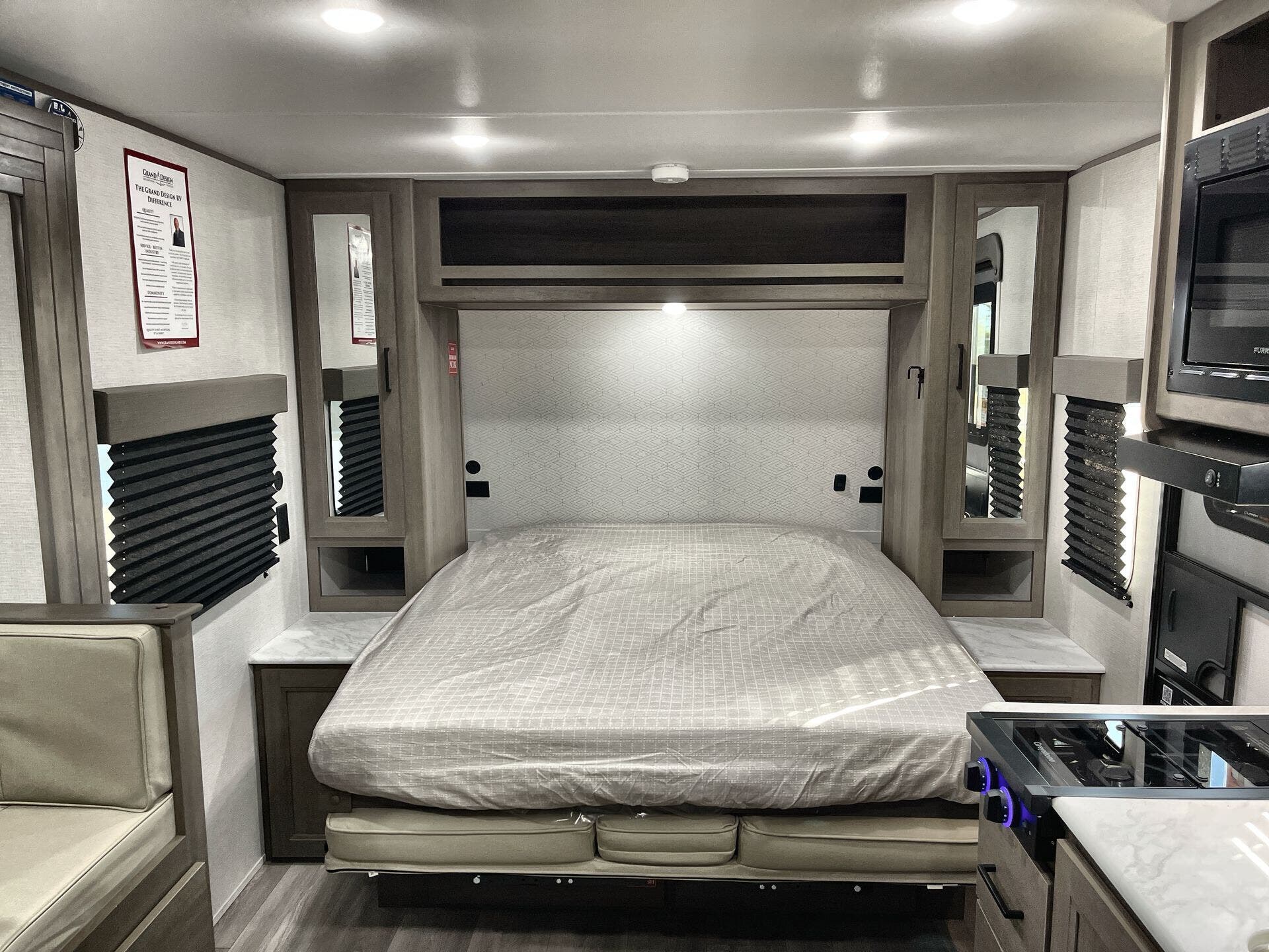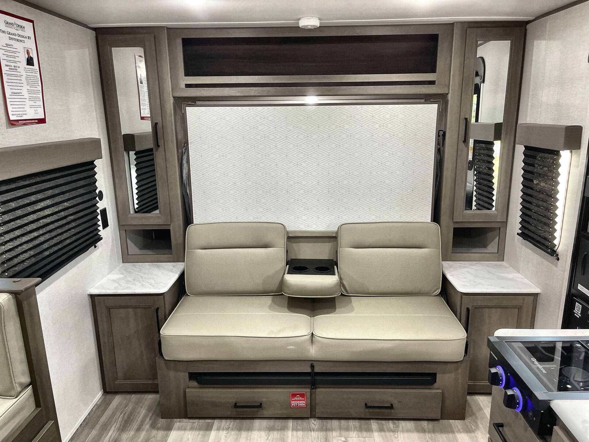 This Grand Design travel trailer blends value with dependable build quality, making it an appealing choice for both new RVers and seasoned campers. Its single-slide layout expands the living area without adding excess length, while the 37/37/74-gallon water system supports comfortable camping experiences. The 13,500 BTU air conditioner keeps interiors cool during hot weekends, and the robust hitch setup ensures confident towing behind a wide range of vehicles. With features like a backup camera, power awning, and enclosed underbelly, the Transcend One delivers convenience, reliability, and long-term value in a compact, family-friendly package.