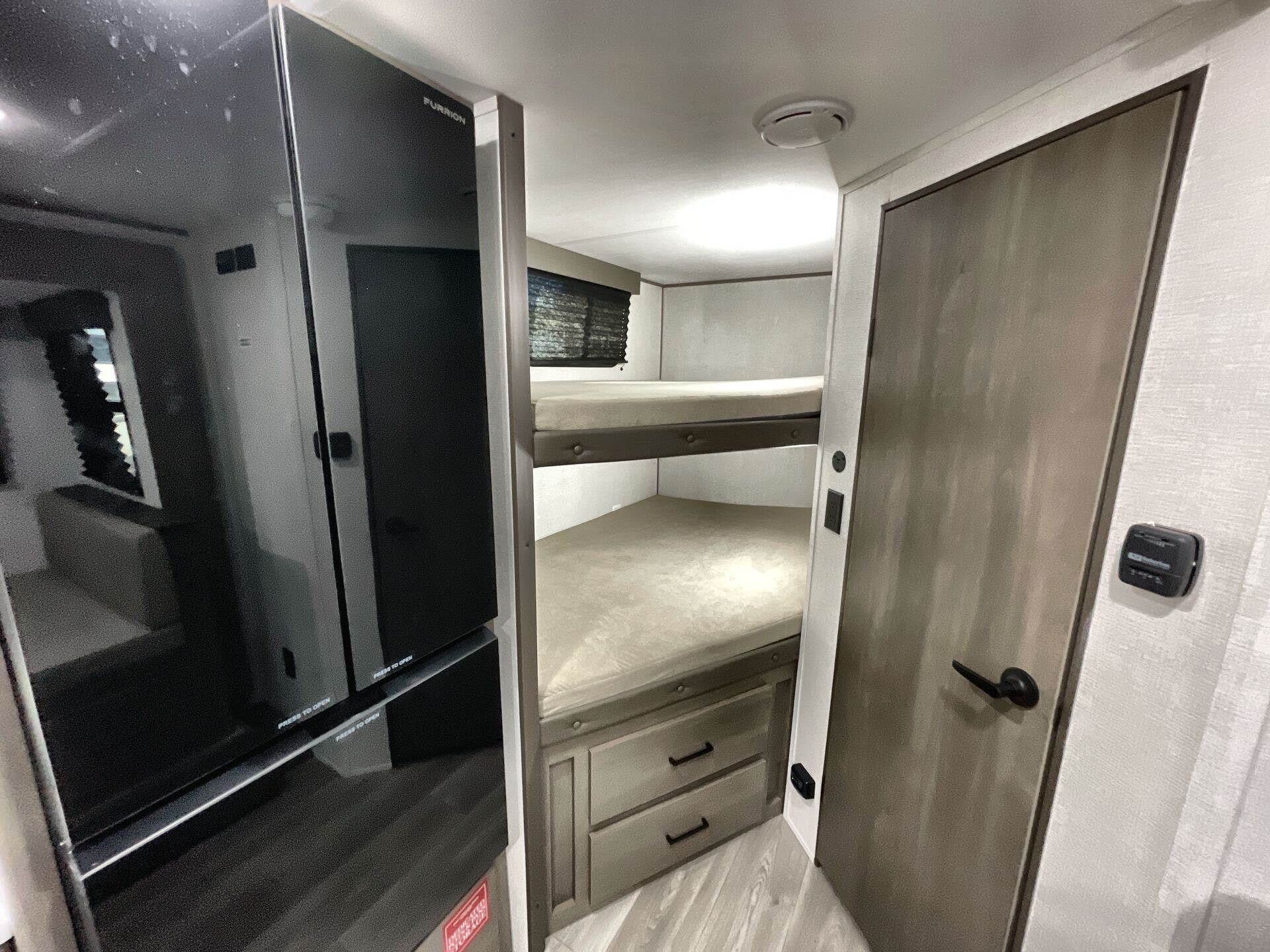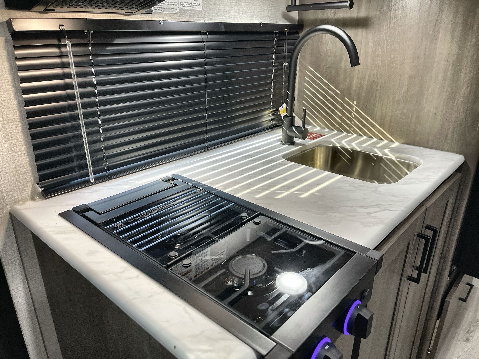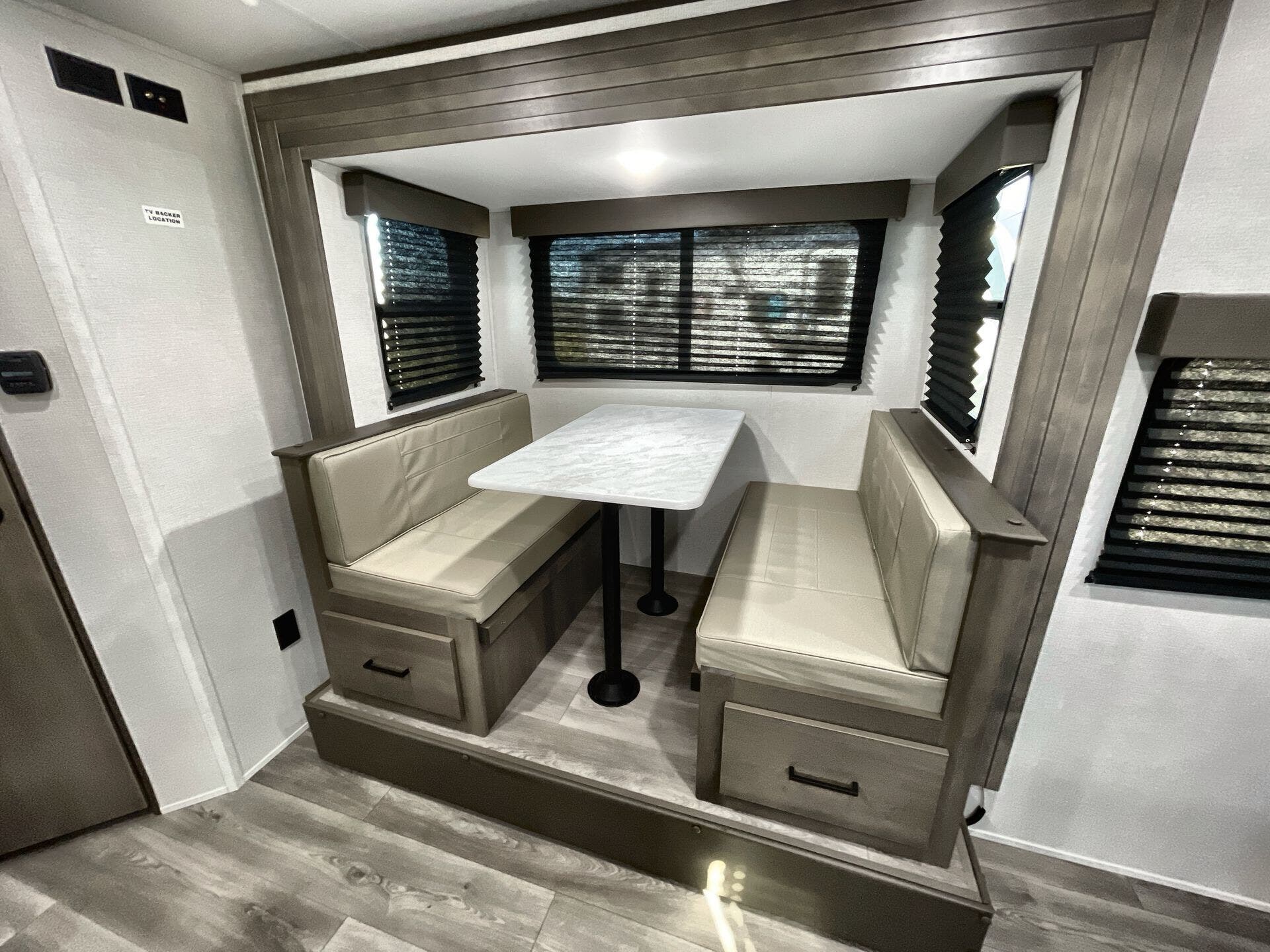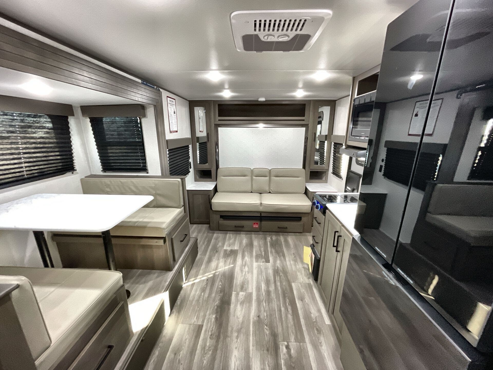 This Grand Design travel trailer blends value with dependable build quality, making it an appealing choice for both new RVers and seasoned campers. Its single-slide layout expands the living area without adding excess length, while the 37/37/74-gallon water system supports comfortable camping experiences. The 13,500 BTU air conditioner keeps interiors cool during hot weekends, and the robust hitch setup ensures confident towing behind a wide range of vehicles. With features like a backup camera, power awning, and enclosed underbelly, the Transcend One delivers convenience, reliability, and long-term value in a compact, family-friendly package.