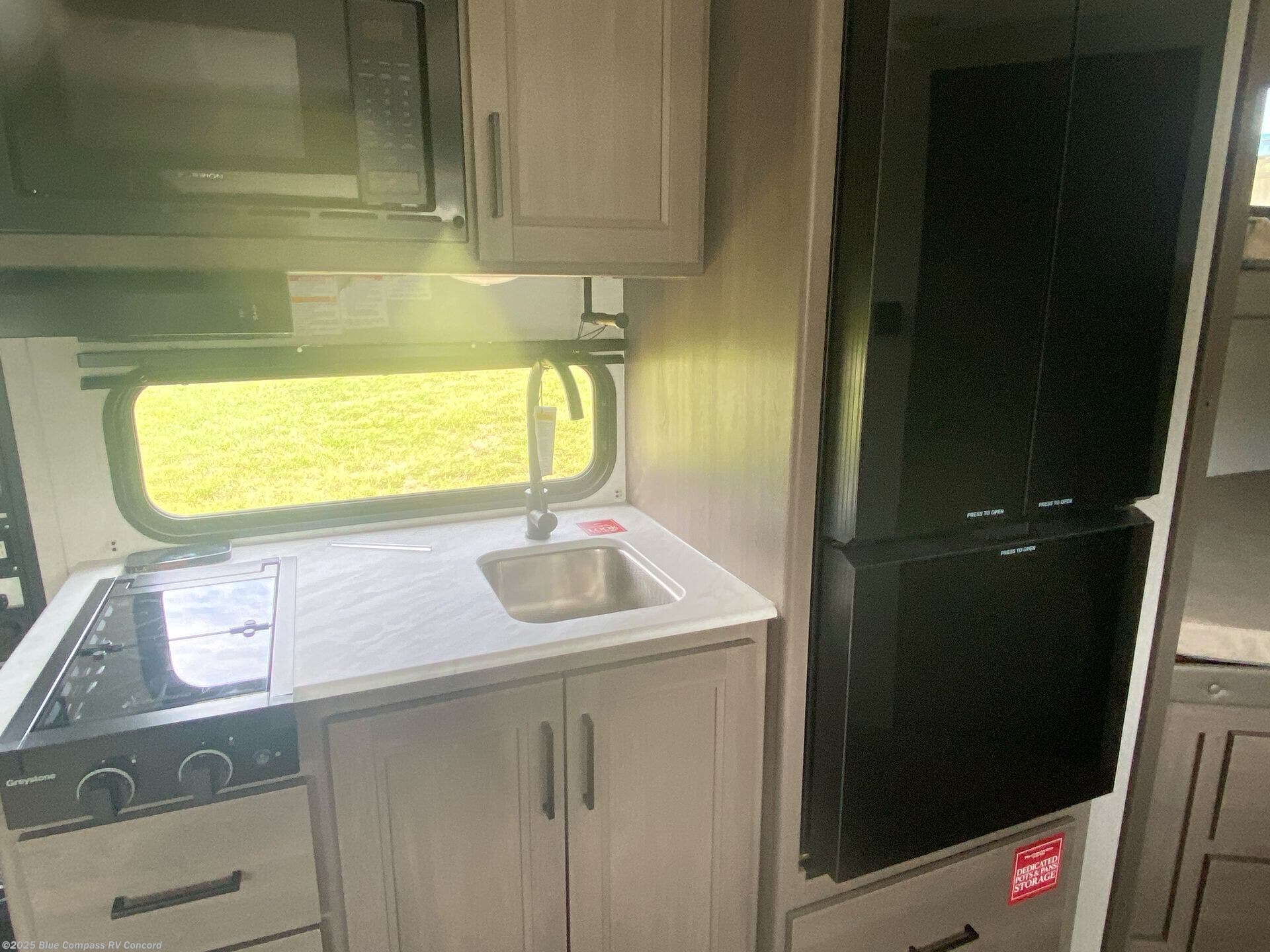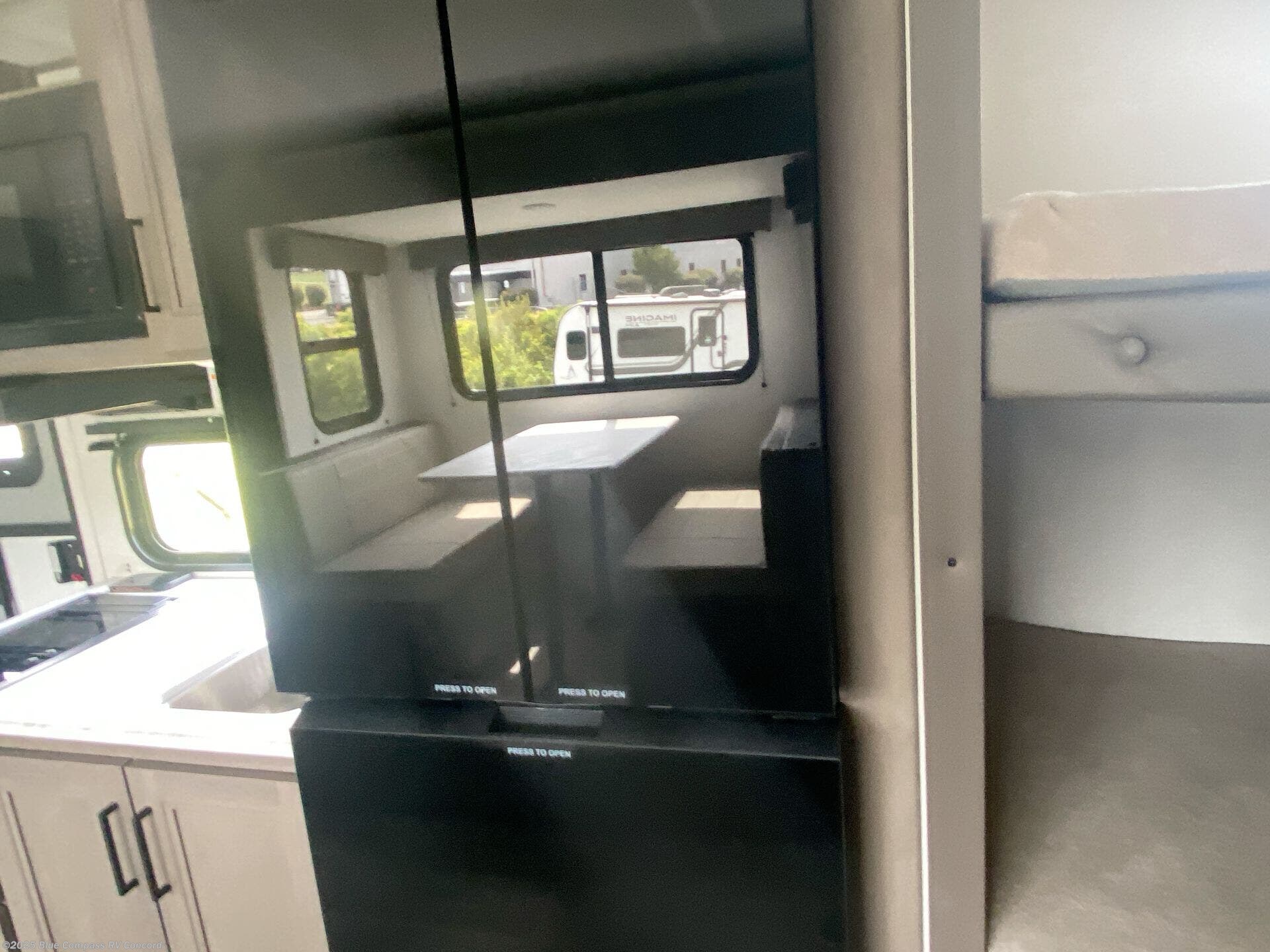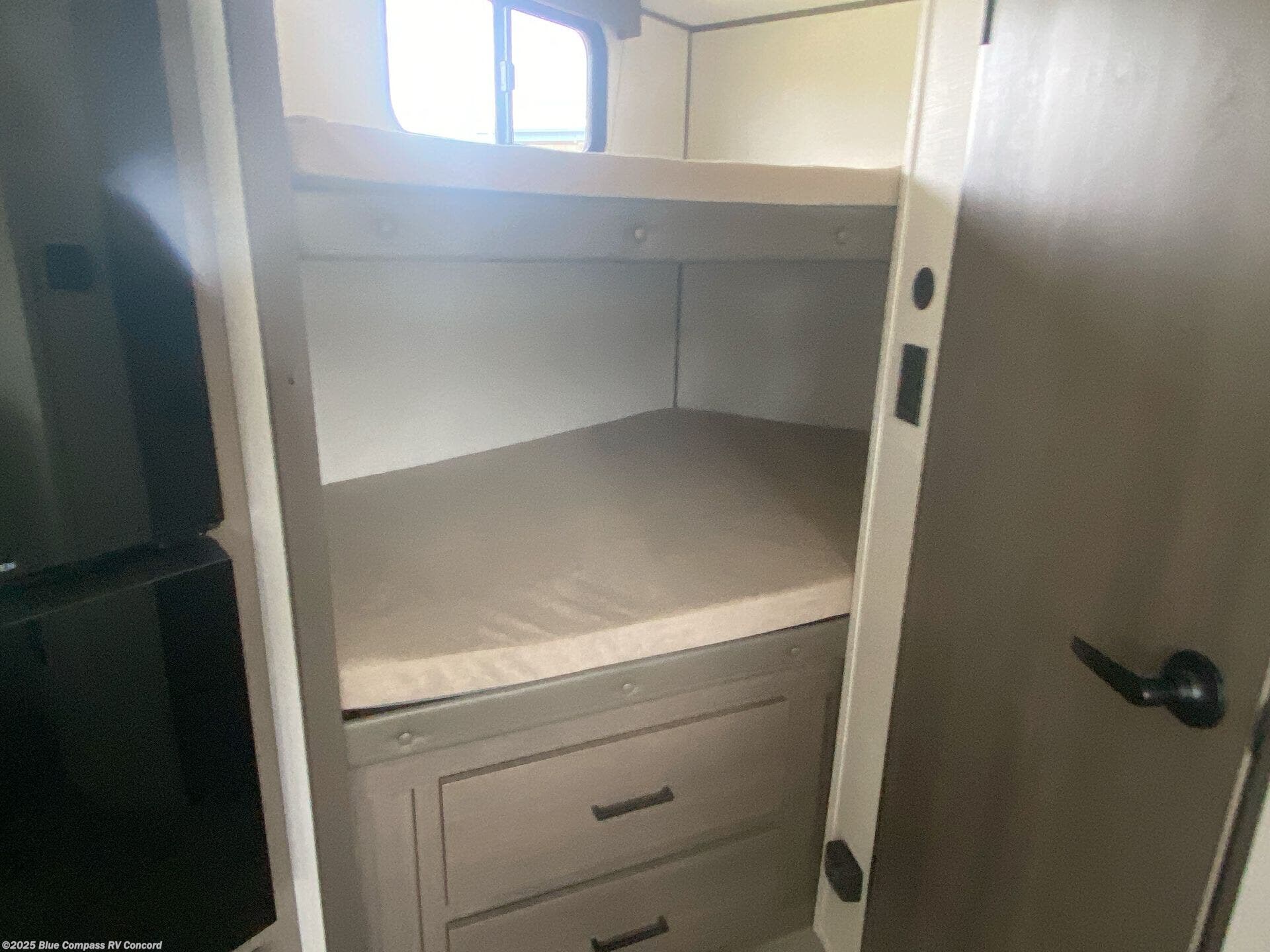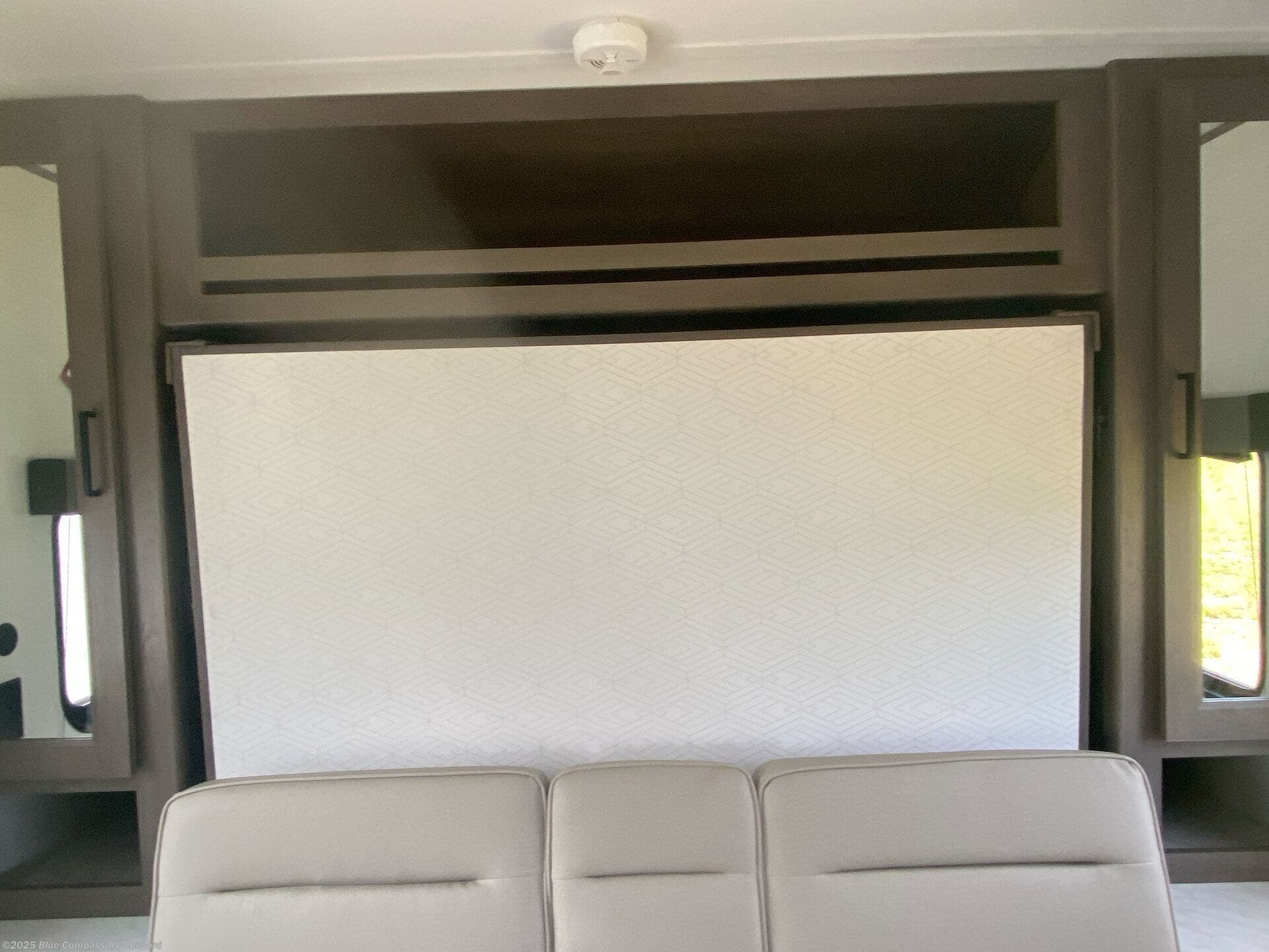 Spacious and versatile, this travel trailer is perfect for weekend trips to the campground or weeklong visits to the lake! There is a front Murphy bed with storage on both sides plus a pull-out pet drawer to keep your furry friends happy. Your guests or little ones will love the double-size bunks with privacy curtains, and the full bath is right next to the bunks for easy nighttime use. Once you make breakfast on the two burner range, you can dine at the booth dinette slide. And this model also includes an outdoor griddle and refrigerator if you want to make breakfast outdoors. Additional exterior features include a 16' power awning, an interior/exterior table, and a pass-thru storage for larger camp gear.
