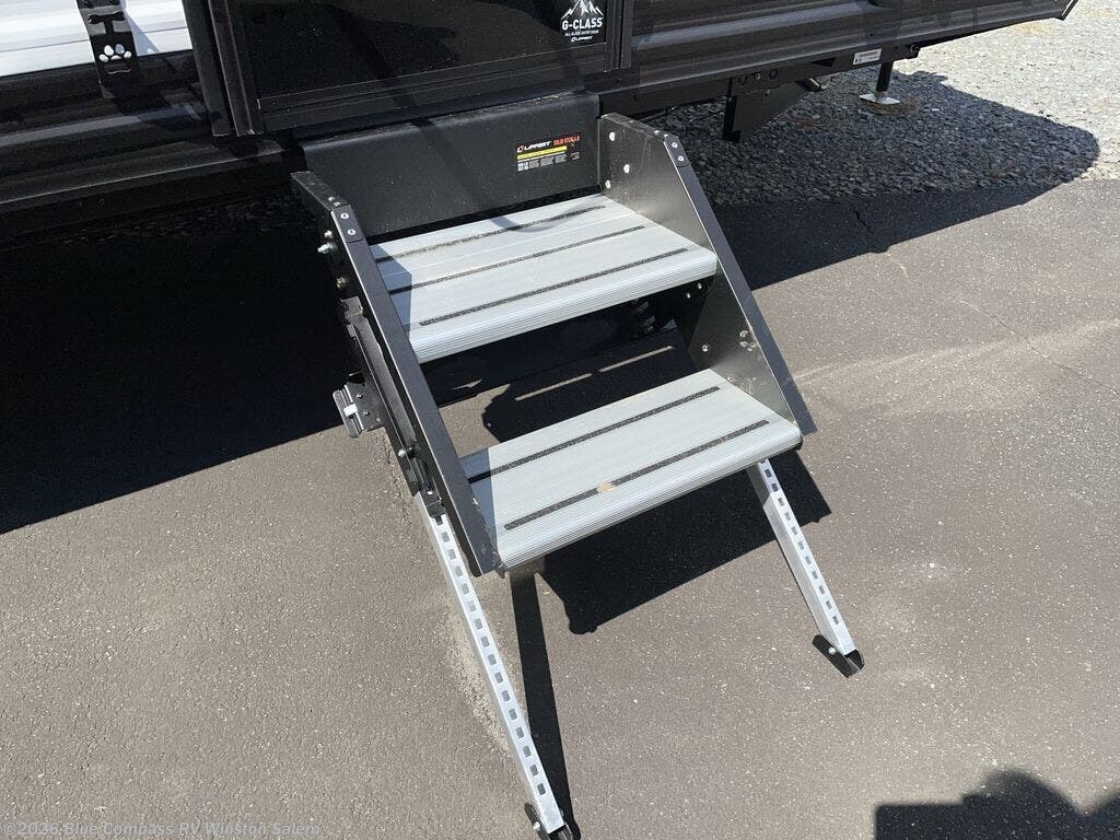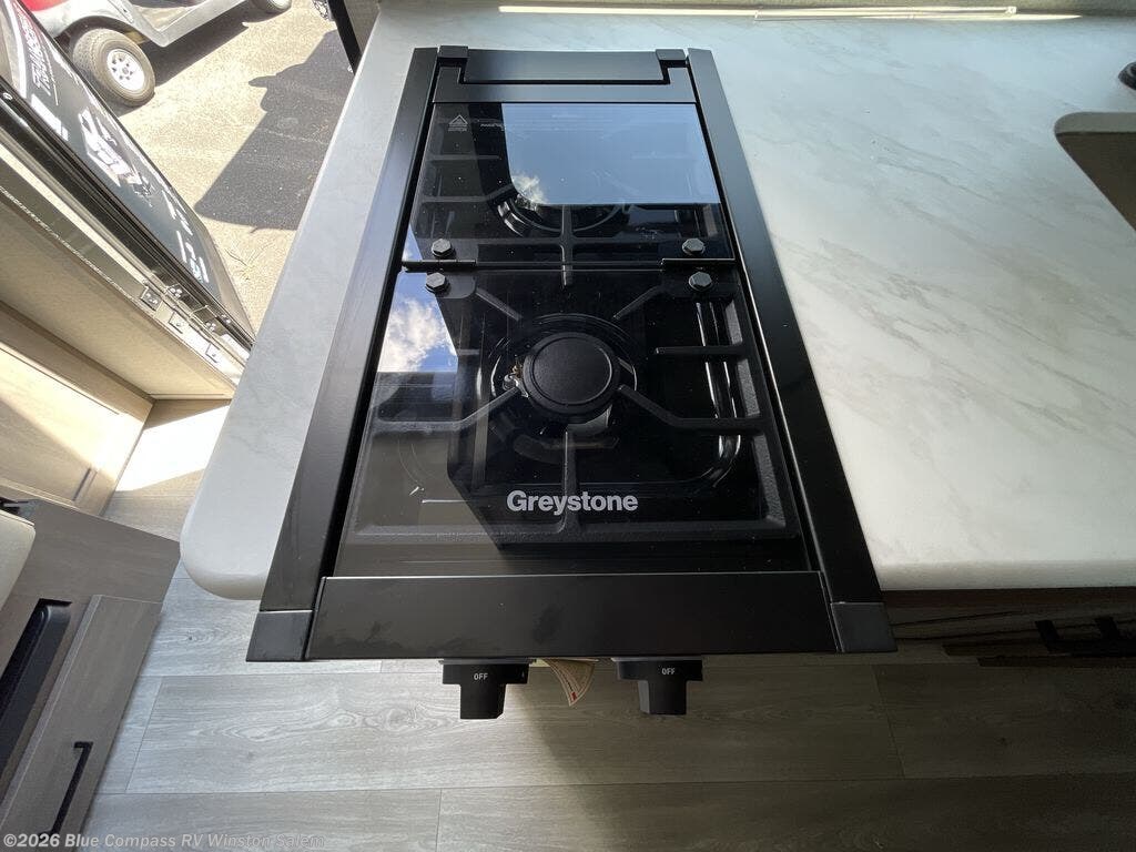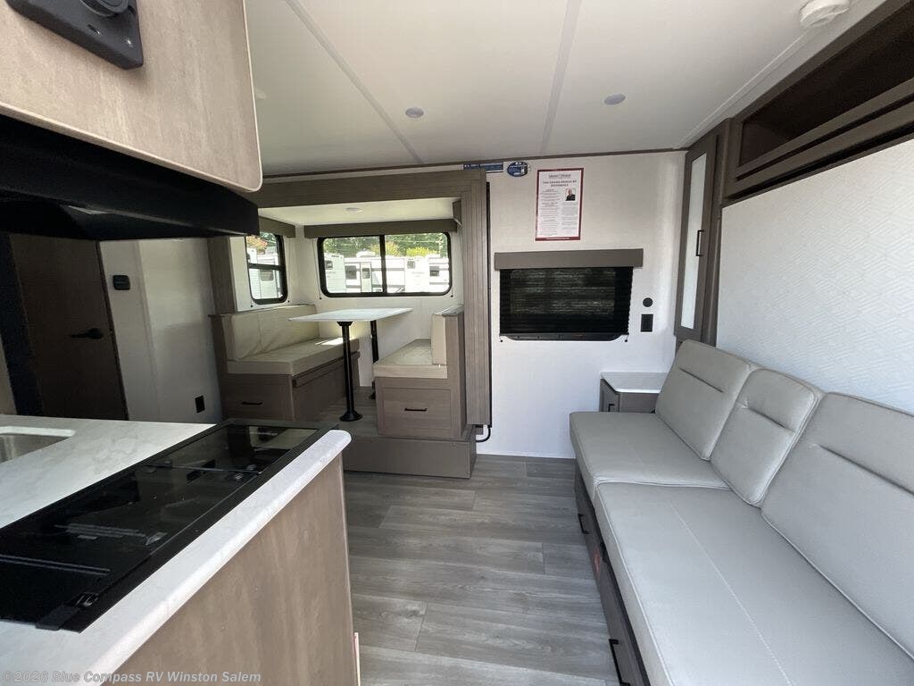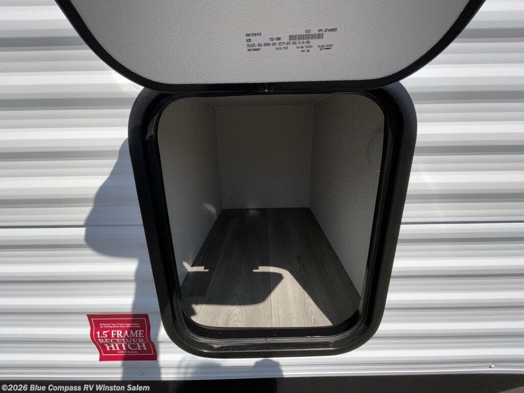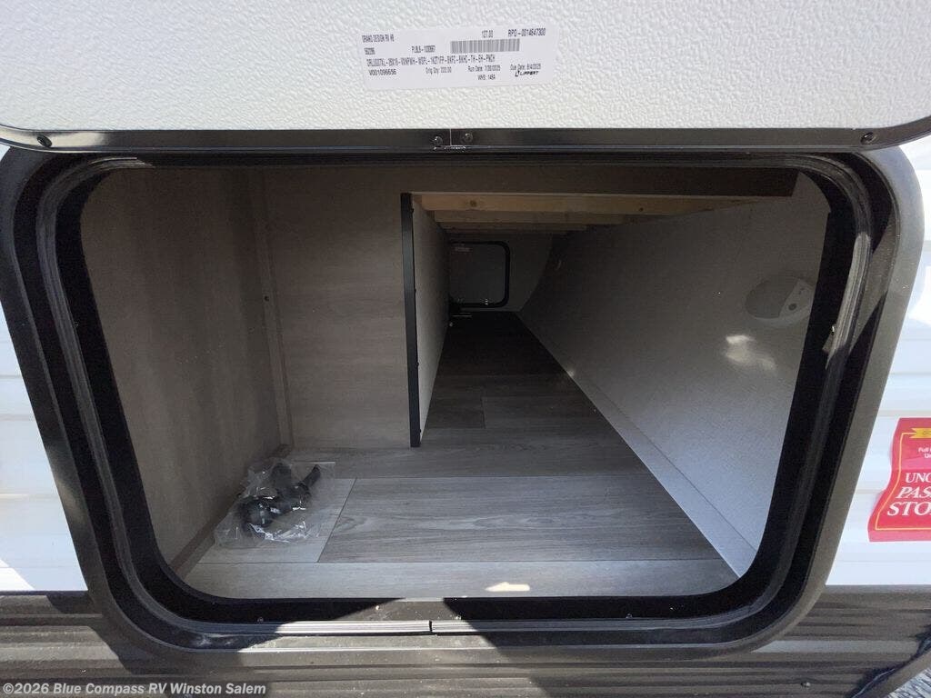 Spacious and versatile, this travel trailer is perfect for weekend trips to the campground or weeklong visits to the lake! There is a front Murphy bed with storage on both sides plus a pull-out pet drawer to keep your furry friends happy. Your guests or little ones will love the double-size bunks with privacy curtains, and the full bath is right next to the bunks for easy nighttime use. Once you make breakfast on the two burner range, you can dine at the booth dinette slide. And this model also includes an outdoor griddle and refrigerator if you want to make breakfast outdoors. Additional exterior features include a 16' power awning, an interior/exterior table, and a pass-thru storage for larger camp gear.