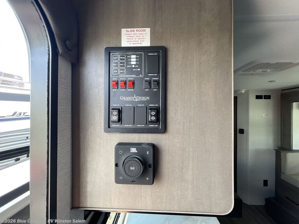 With any Transcend One travel trailer by Grand Design, you will enjoy lightweight towing thanks to their single-axle. There are many interior comforts to make camping easier than ever, such as recessed lighting, residential countertops, and a 6' 6" interior height. Each model is constructed with a heated and enclosed underbelly with suspended tanks, a moisture barrier floor enclosure, and Thermofoil over the roof and front cap for added protection. And a JBL sound system will let you listen to tunes as you visit under the power awning with a Fusion light!