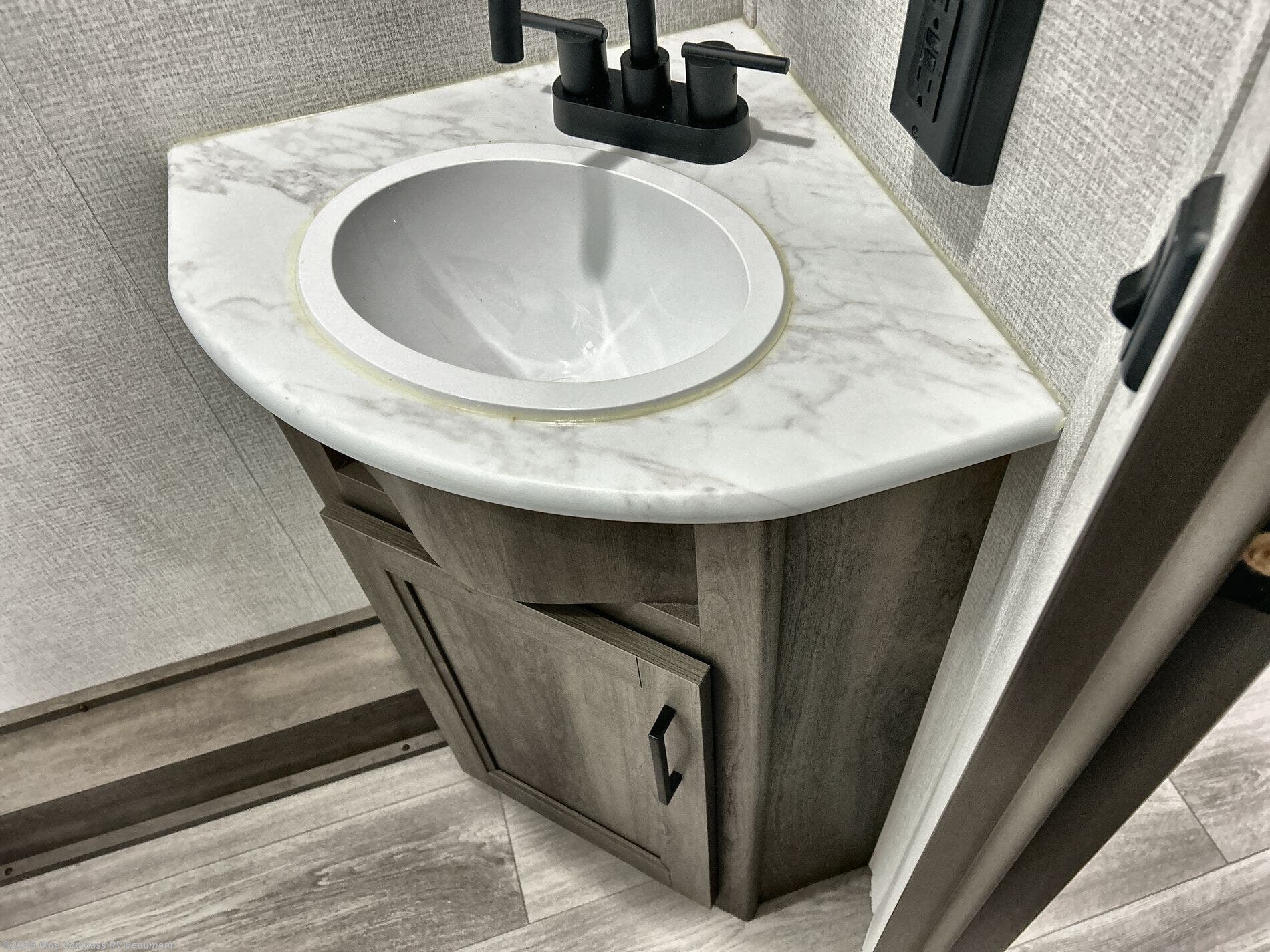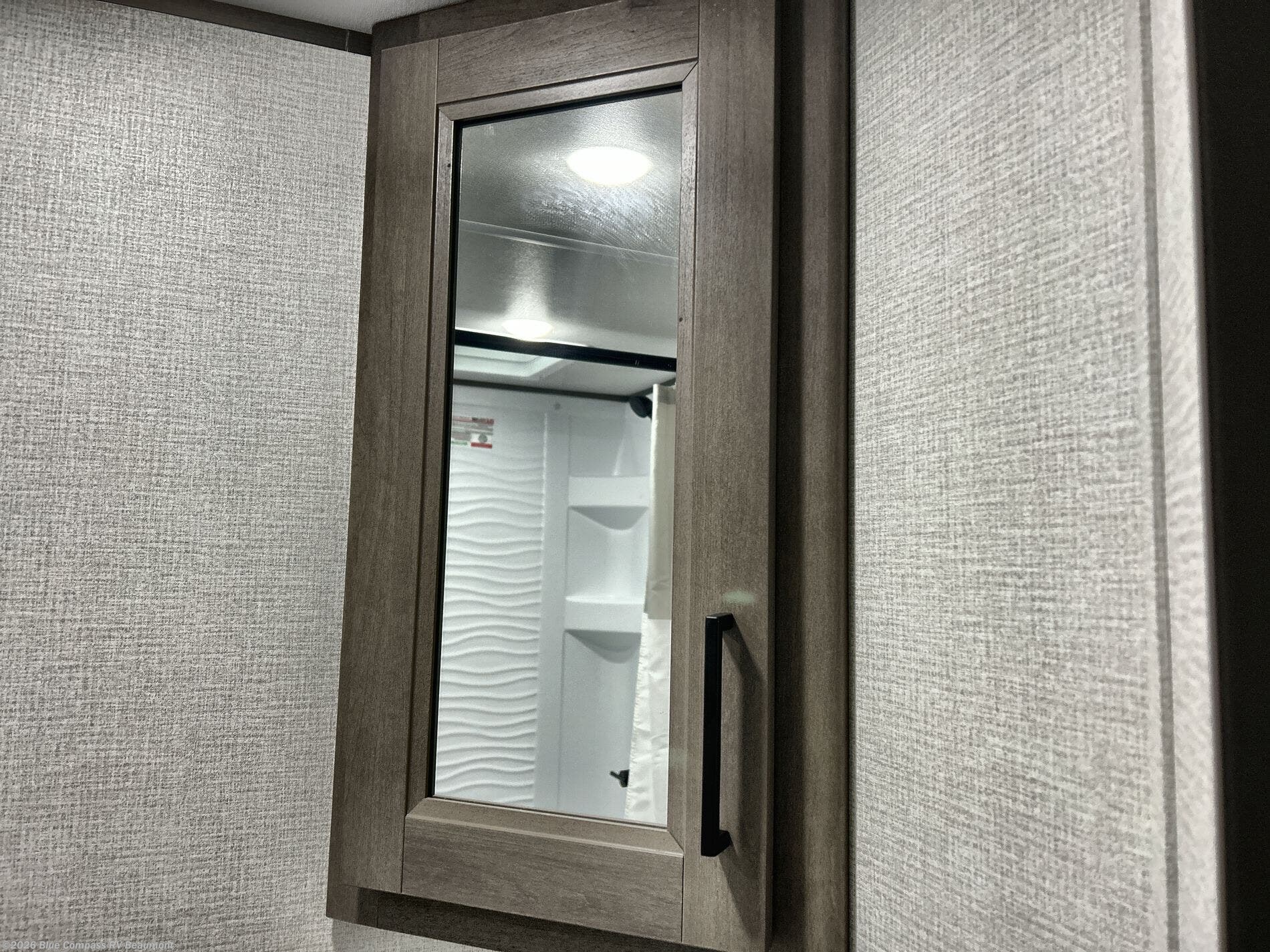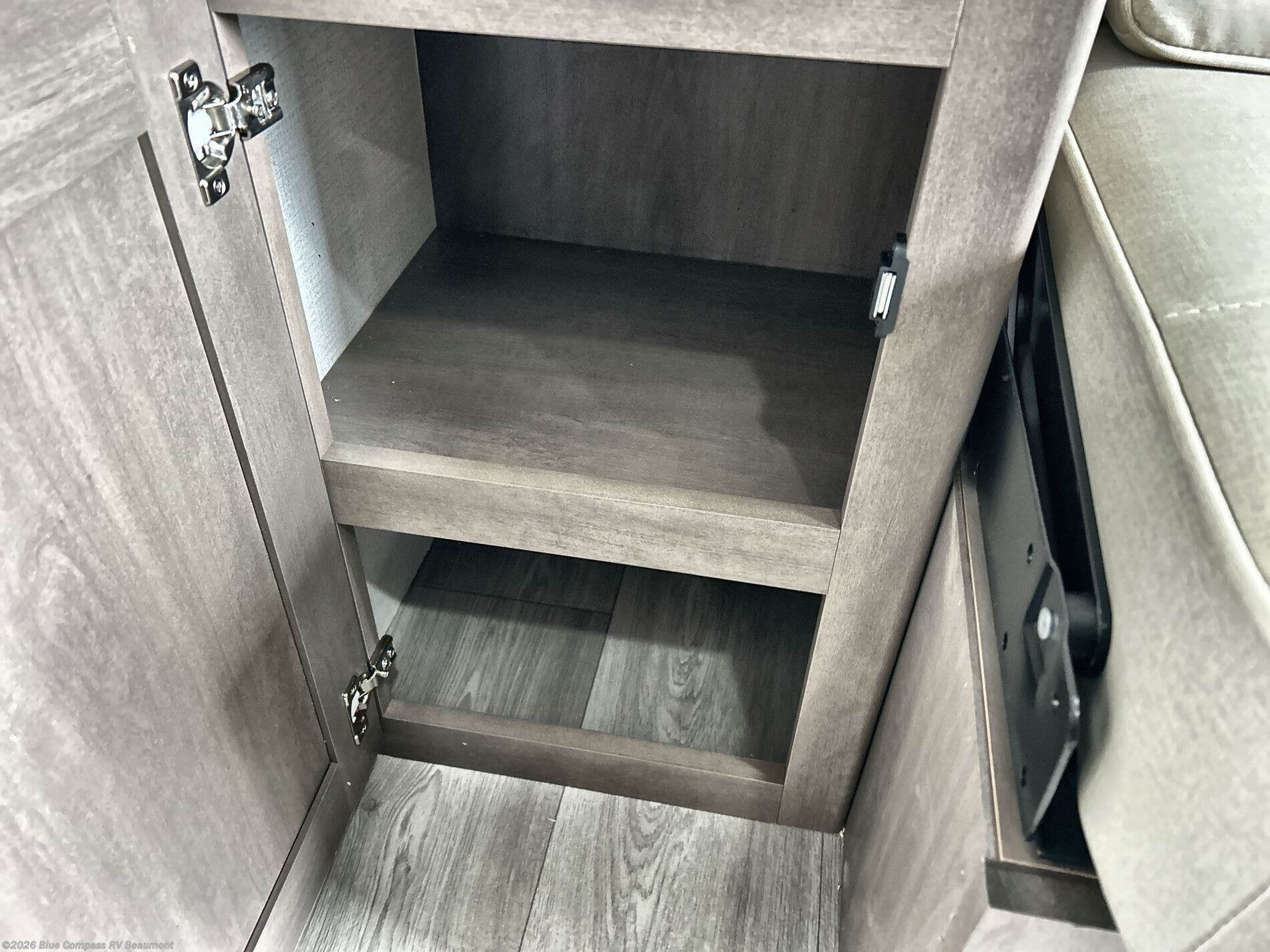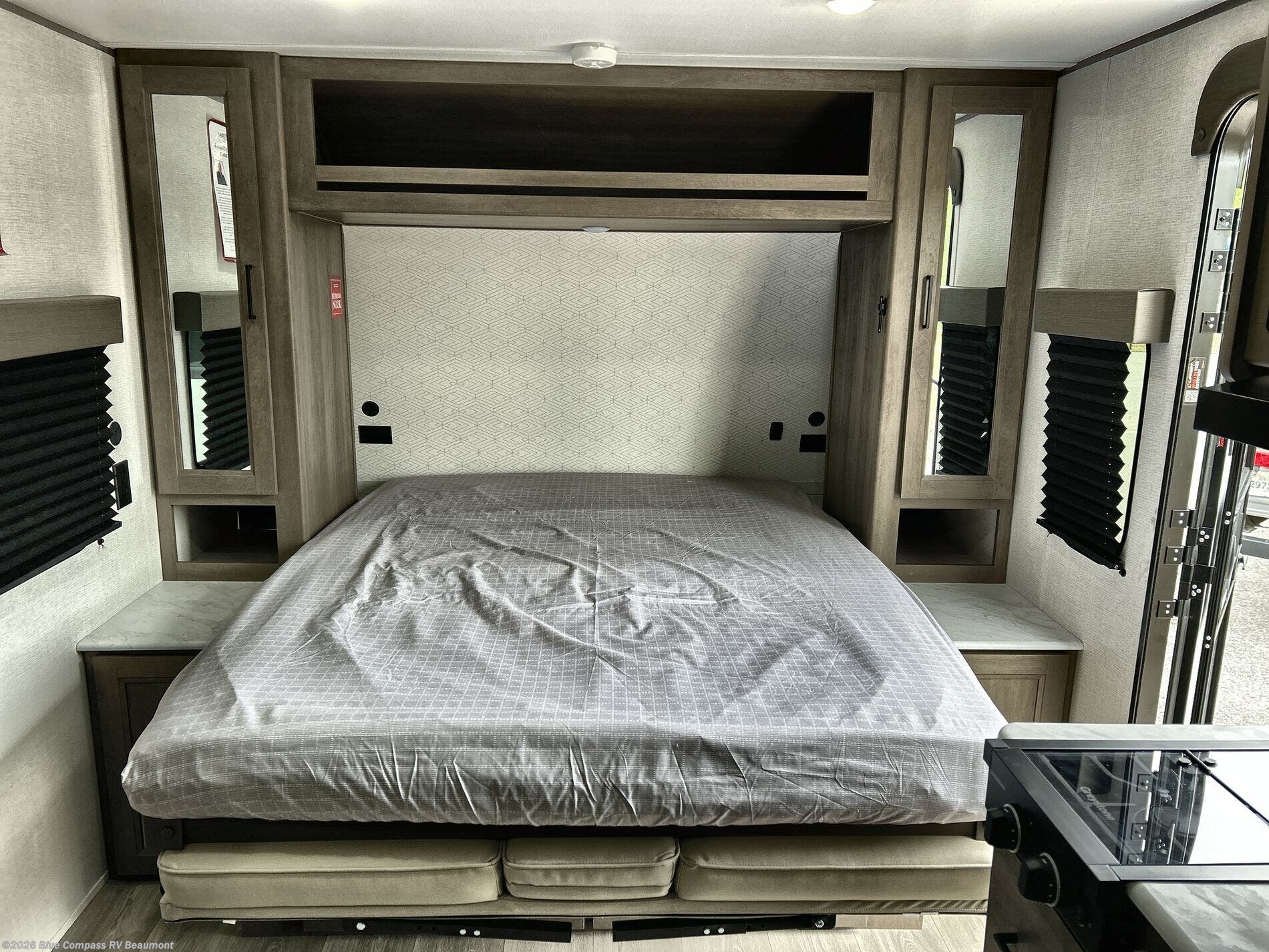 Spacious and versatile, this travel trailer is perfect for weekend trips to the campground or weeklong visits to the lake! There is a front Murphy bed with storage on both sides plus a pull-out pet drawer to keep your furry friends happy. Your guests or little ones will love the double-size bunks with privacy curtains, and the full bath is right next to the bunks for easy nighttime use. Once you make breakfast on the two burner range, you can dine at the booth dinette slide. And this model also includes an outdoor griddle and refrigerator if you want to make breakfast outdoors. Additional exterior features include a 16' power awning, an interior/exterior table, and a pass-thru storage for larger camp gear.